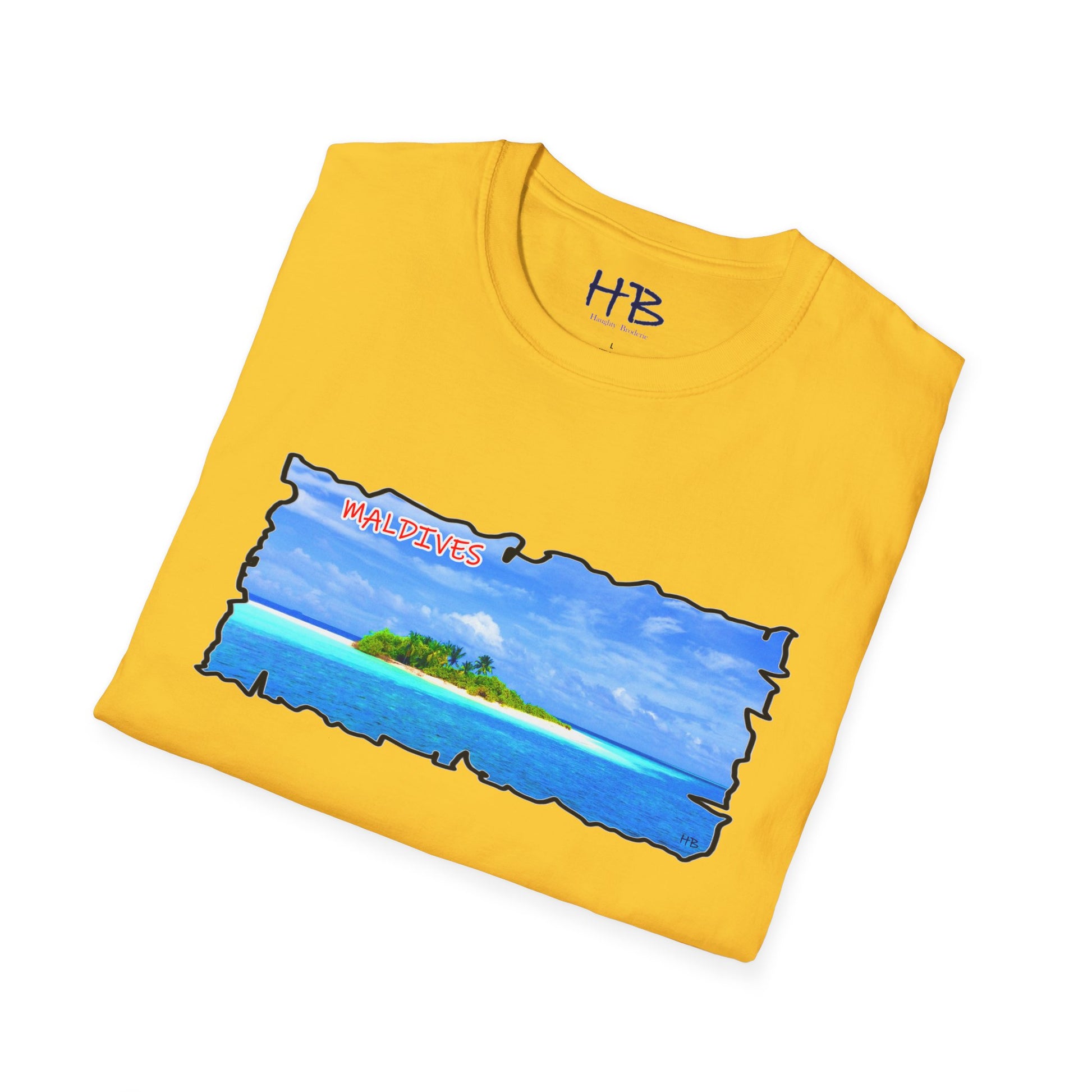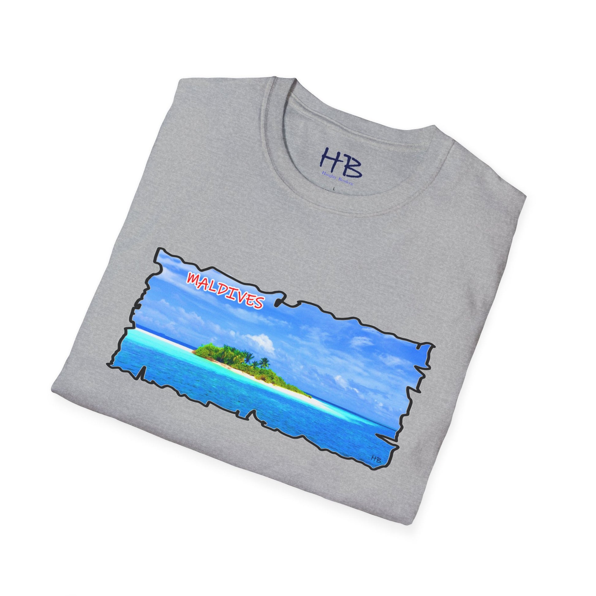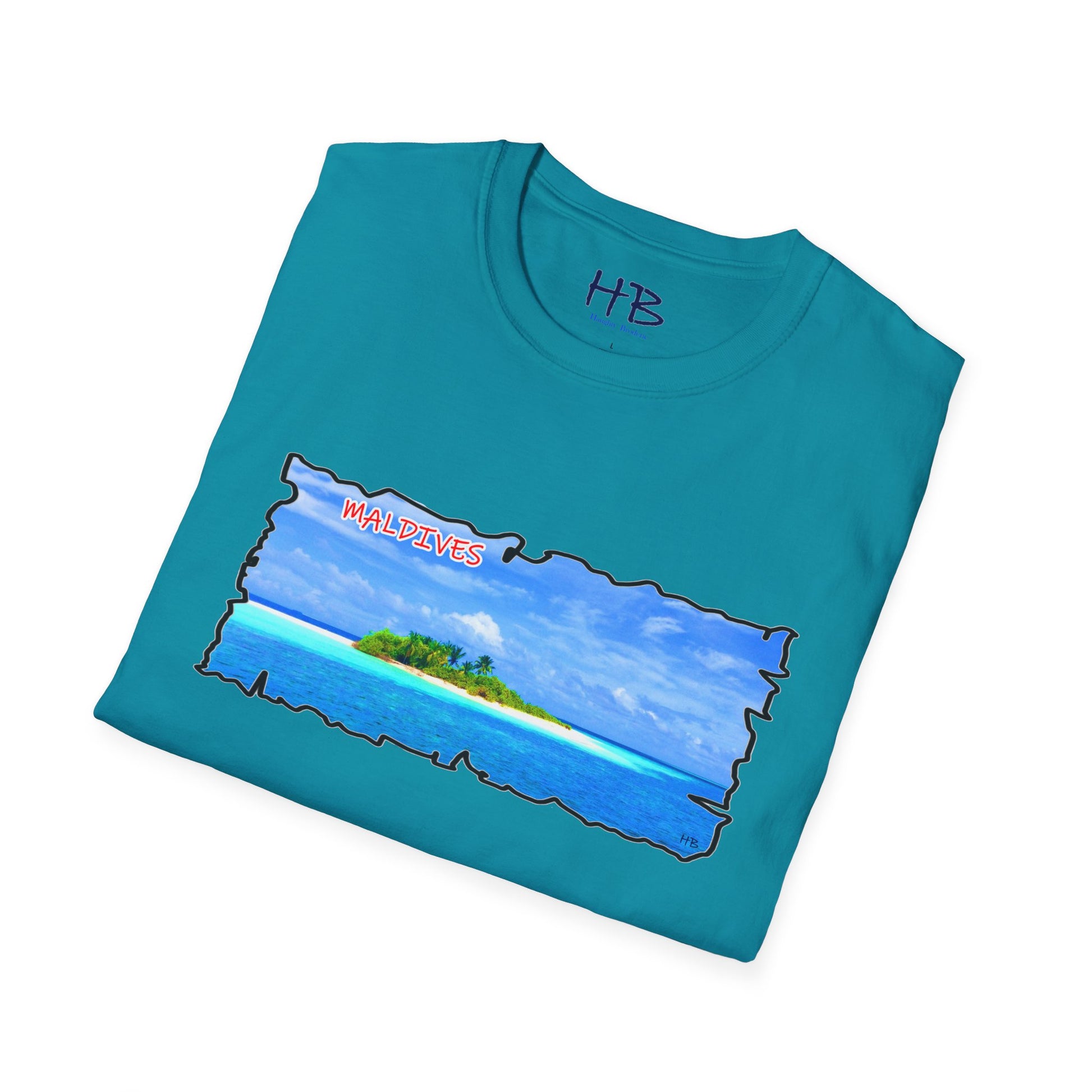 Introducing our captivating and meaningful creation, the 'Serene Haven' T-Shirt! Immerse yourself in the breathtaking beauty of a picturesque paradise captured on this remarkable tee. Behold the resplendent image of a magnificent, tiny paradisiacal island nestled in the Maldives. Gaze at the enchanting baby blue waters that gracefully encircle the slender landmass, adorned with three majestic palm trees.