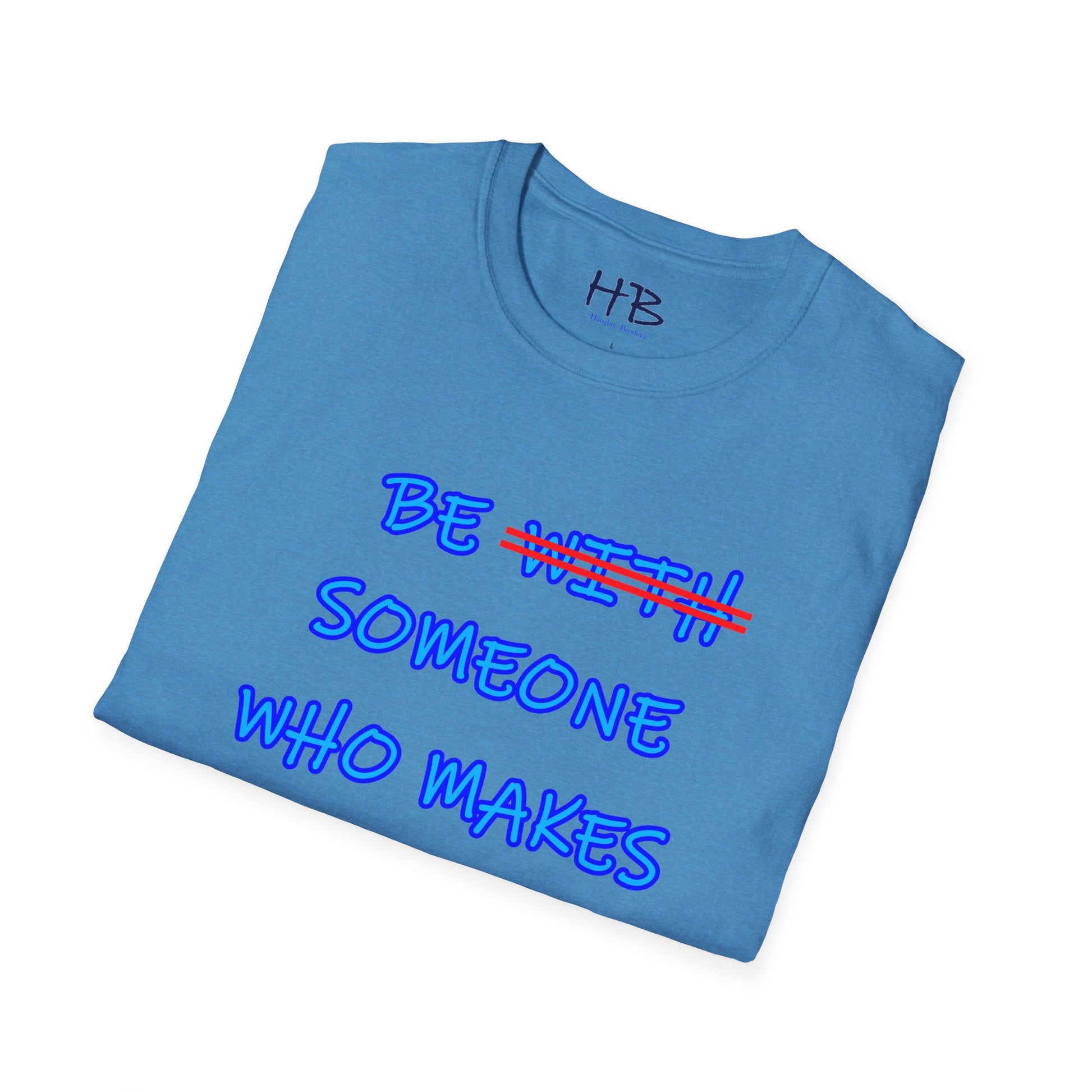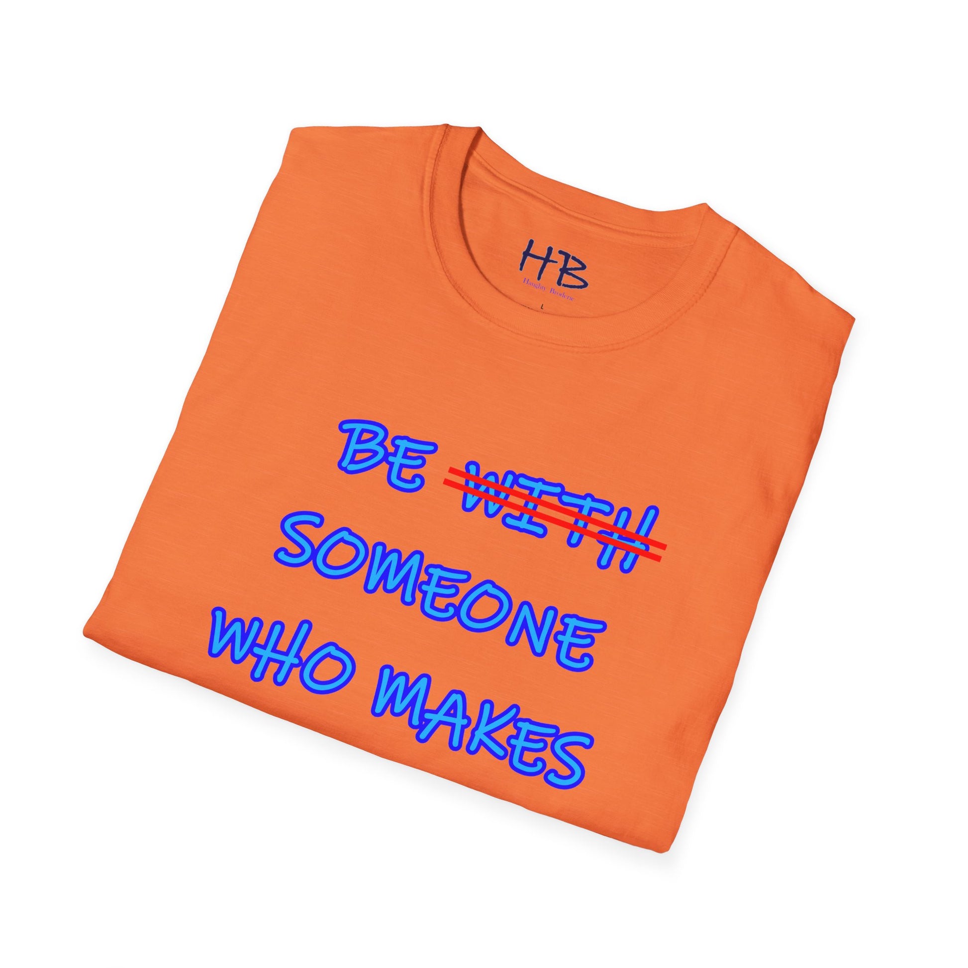 Introducing our exclusive Happiness Advocate Tee - a profound statement in the form of wearable art. This exceptional garment boasts a striking design that conveys a powerful message for the modern world. The tee features the text, "Be with someone who makes you happy," with the word "With" boldly crossed out by two vibrant red bars. This design serves as a thought-provoking reminder of the prevailing notion that happiness hinges on finding the right person. We're here to shatter that misconception and affirm that true happiness begins within.