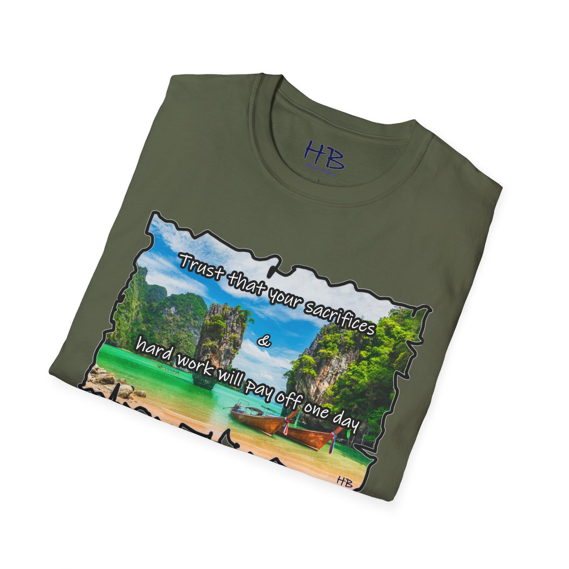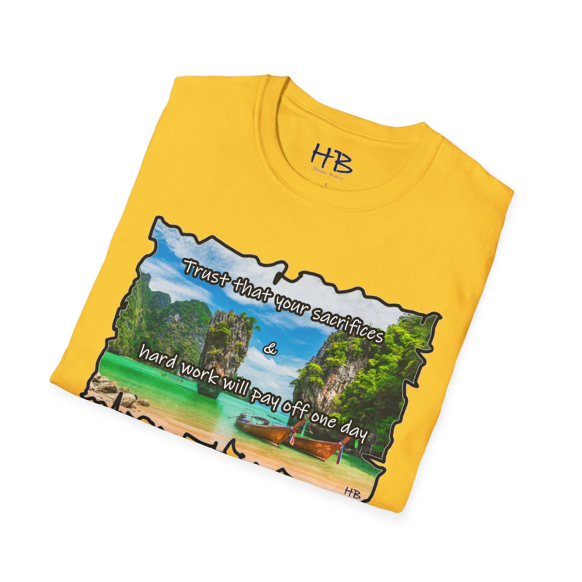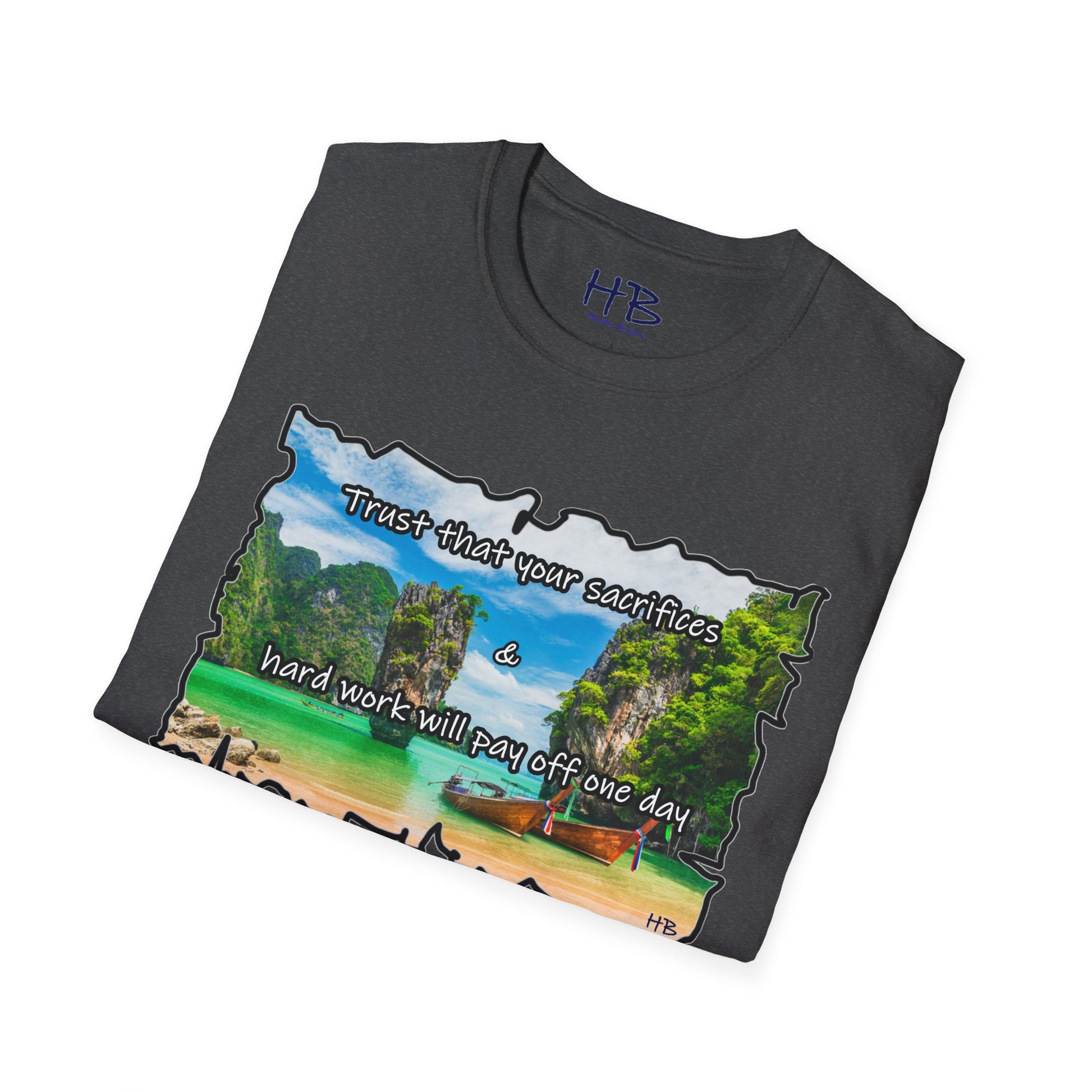 Introducing the Elysian Aspiration Enigma Tee, a wearable masterpiece that encapsulates a utopian dreamscape, a destination coveted by many – an unattainable paradise where azure waters meld seamlessly with the pristine white sands, accompanied by the quaint charm of wooden fishing boats. This exclusive design captures the essence of a luxury retreat, a sanctuary of serenity where the weary find solace and where dreams manifest into reality.