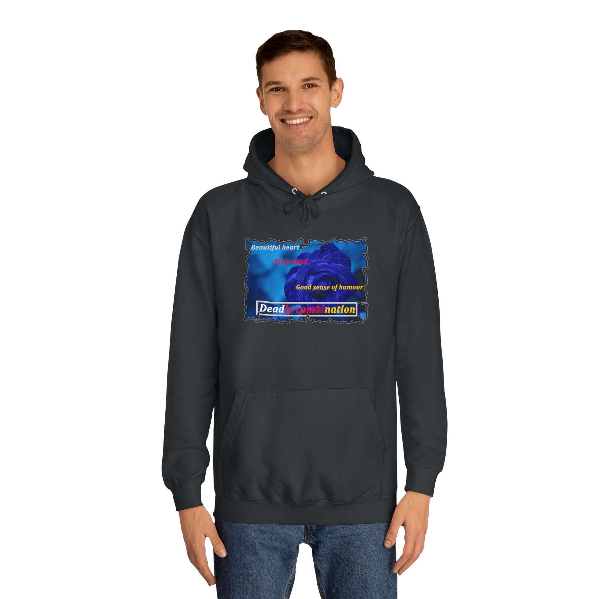 Sophisticated Edge Deadly Combo Elegance meets Attitude using Dark Blue Rose (Hoodie - Cozy and Durable)