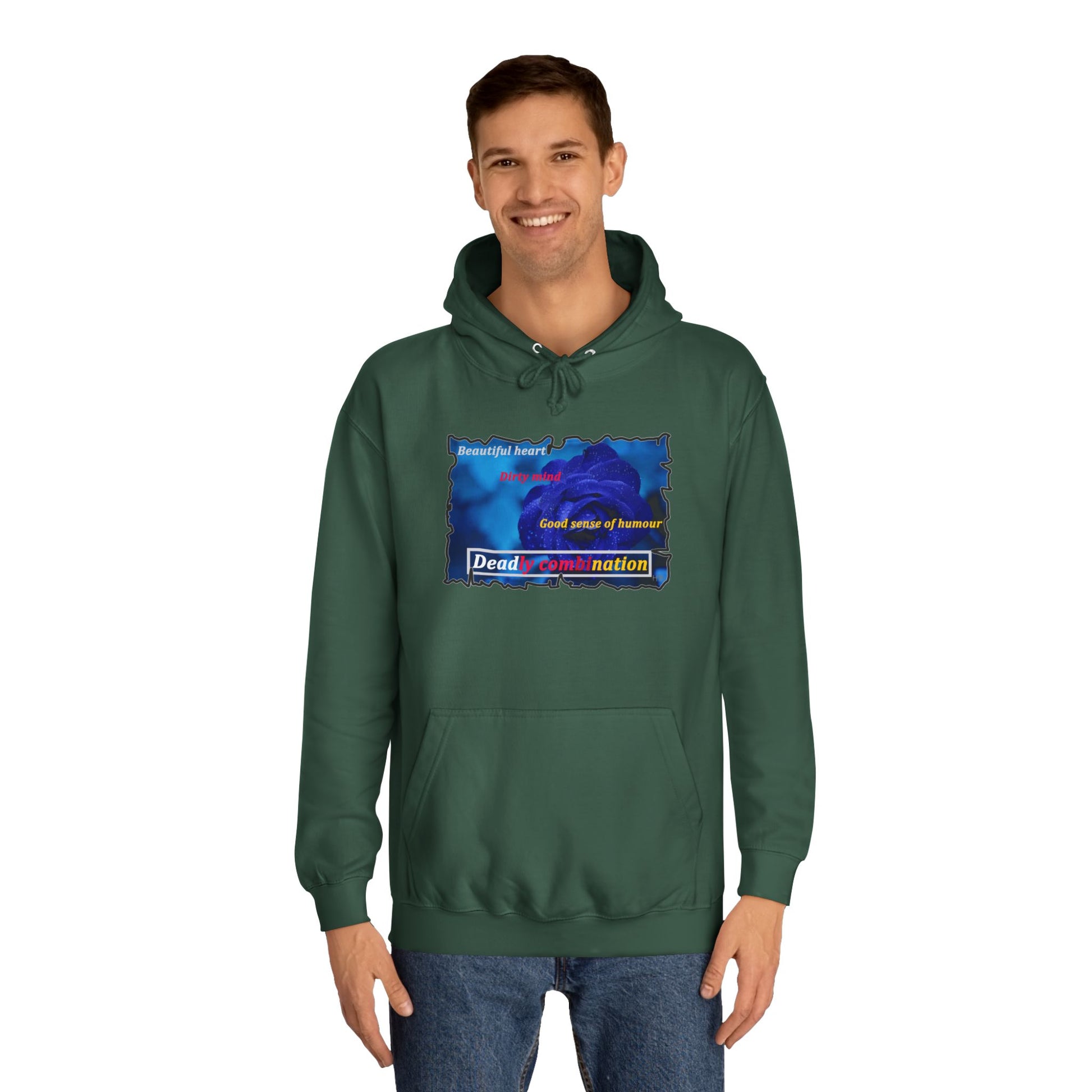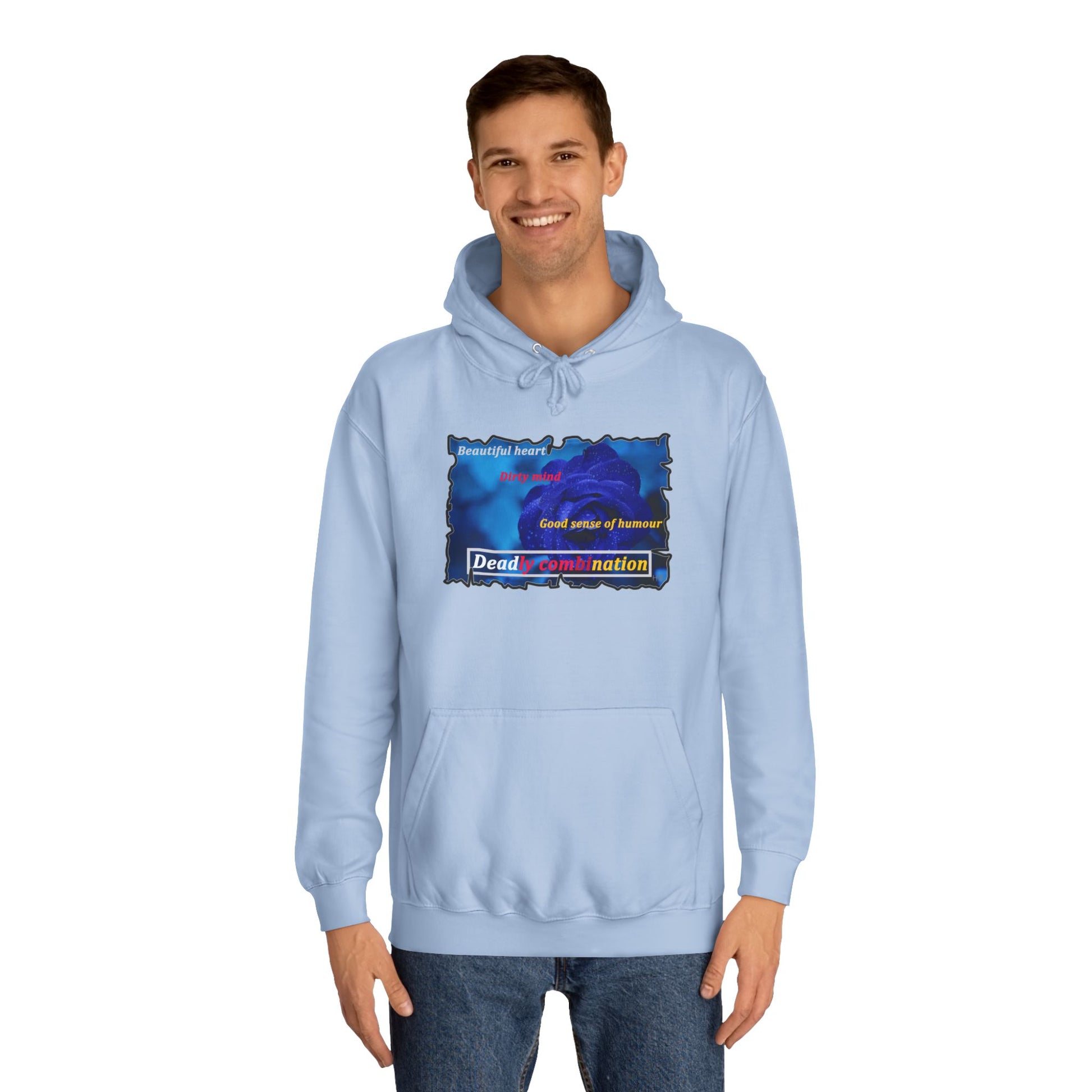 Introducing our latest tee shirt design, featuring a stunning image of a dark blue rose set against the statement: "Beautiful heart, dirty mind, good sense of humor is a deadly combination." This tee shirt is the perfect addition to any wardrobe, combining style, attitude and personality.