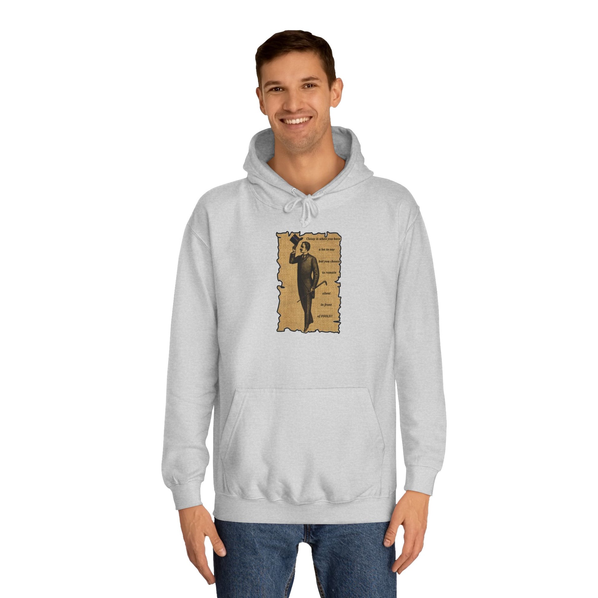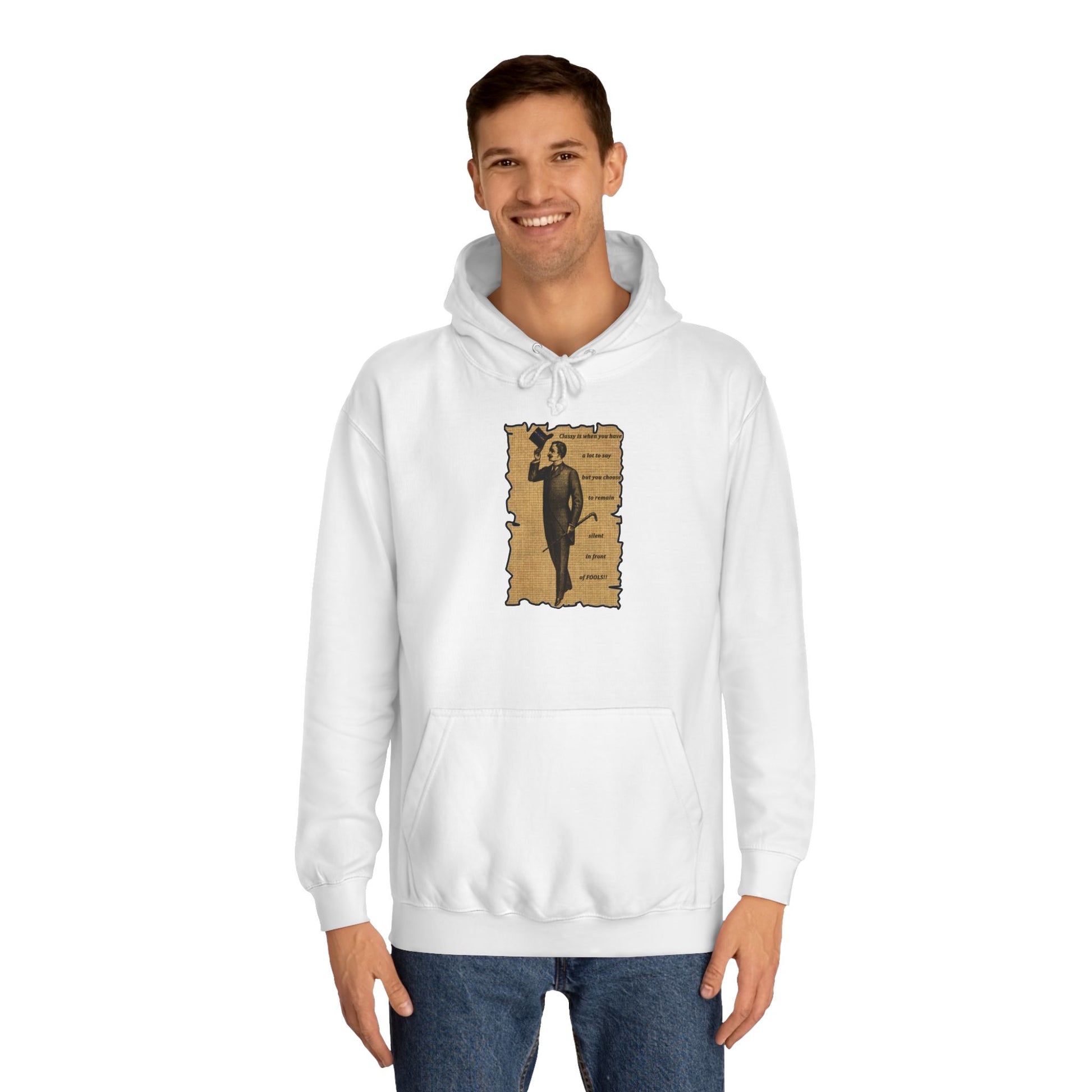 Introducing our latest addition to our collection of tees - a garment featuring a classic depiction of a sophisticated gentleman donning a top hat with an accompanying message that is both wise and witty. This tee shirt is designed for individuals who appreciate vintage art and are keen on making a statement through their clothing choices.