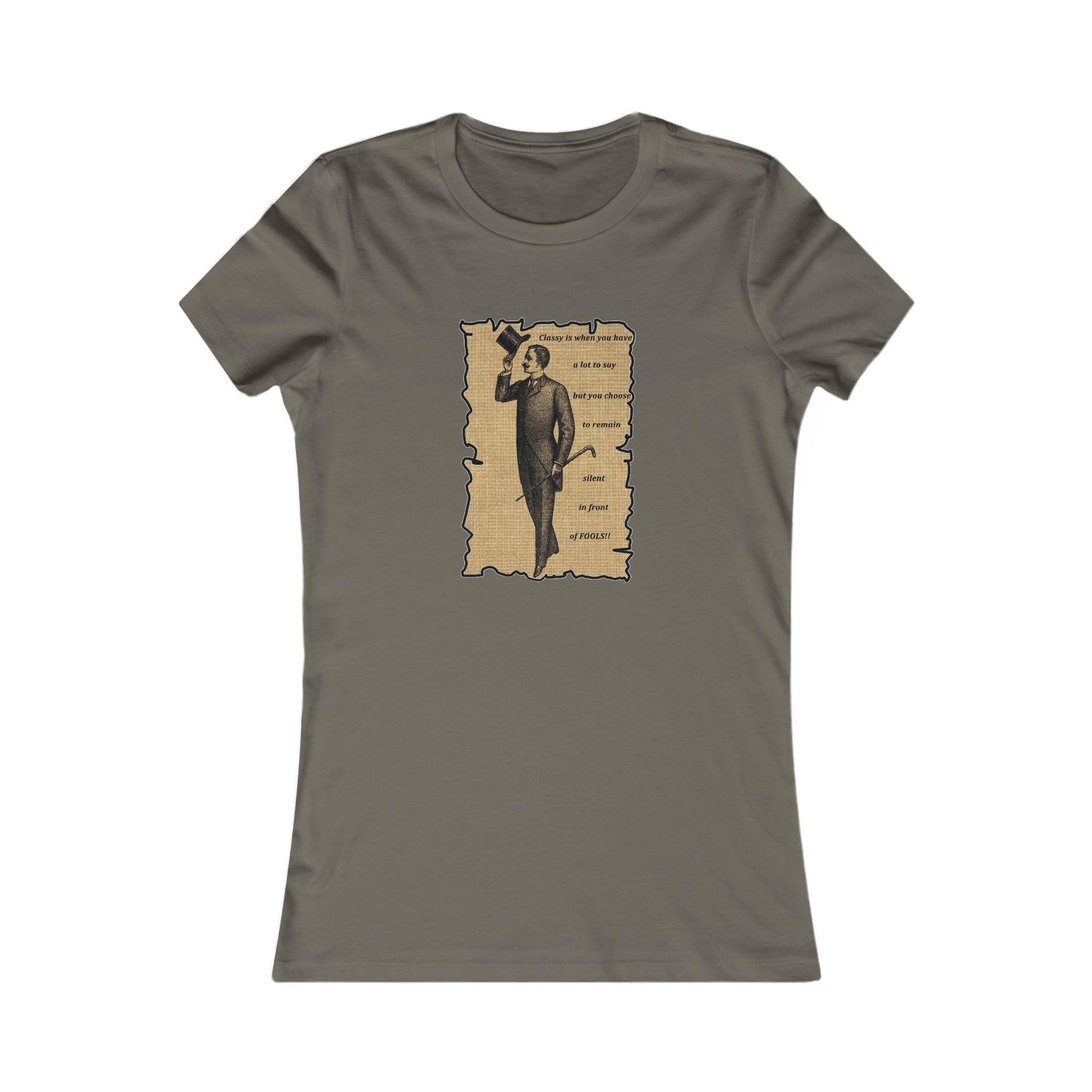 The artwork on this tee shirt showcases a refined gentleman in a top hat, exuding an air of elegance and sophistication. The design is complemented by a thought-provoking quote that speaks volumes about the power of restraint and the art of discretion. The quote reads, "Classy is when you have a lot to say, but you choose to remain silent in front of FOOLS!!"