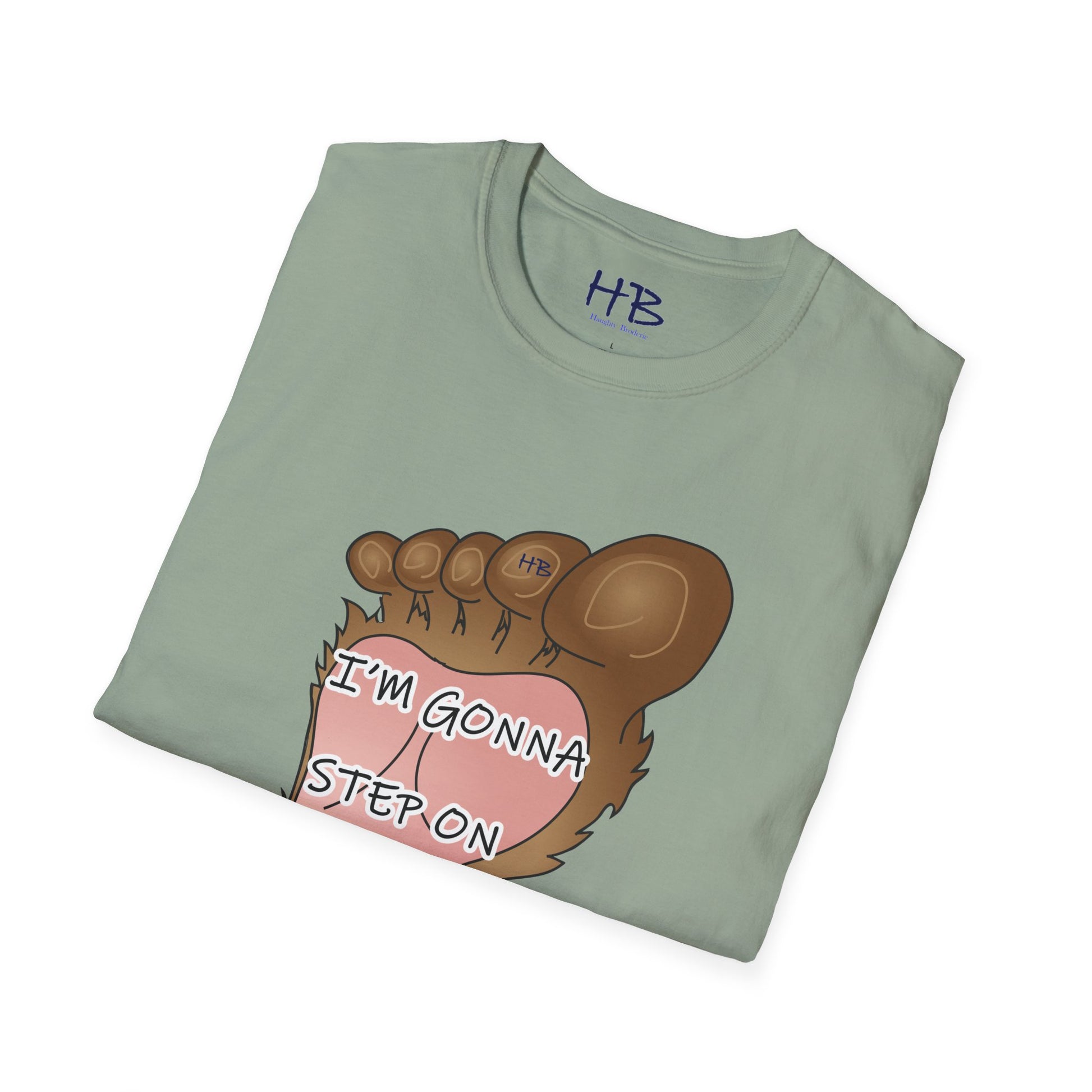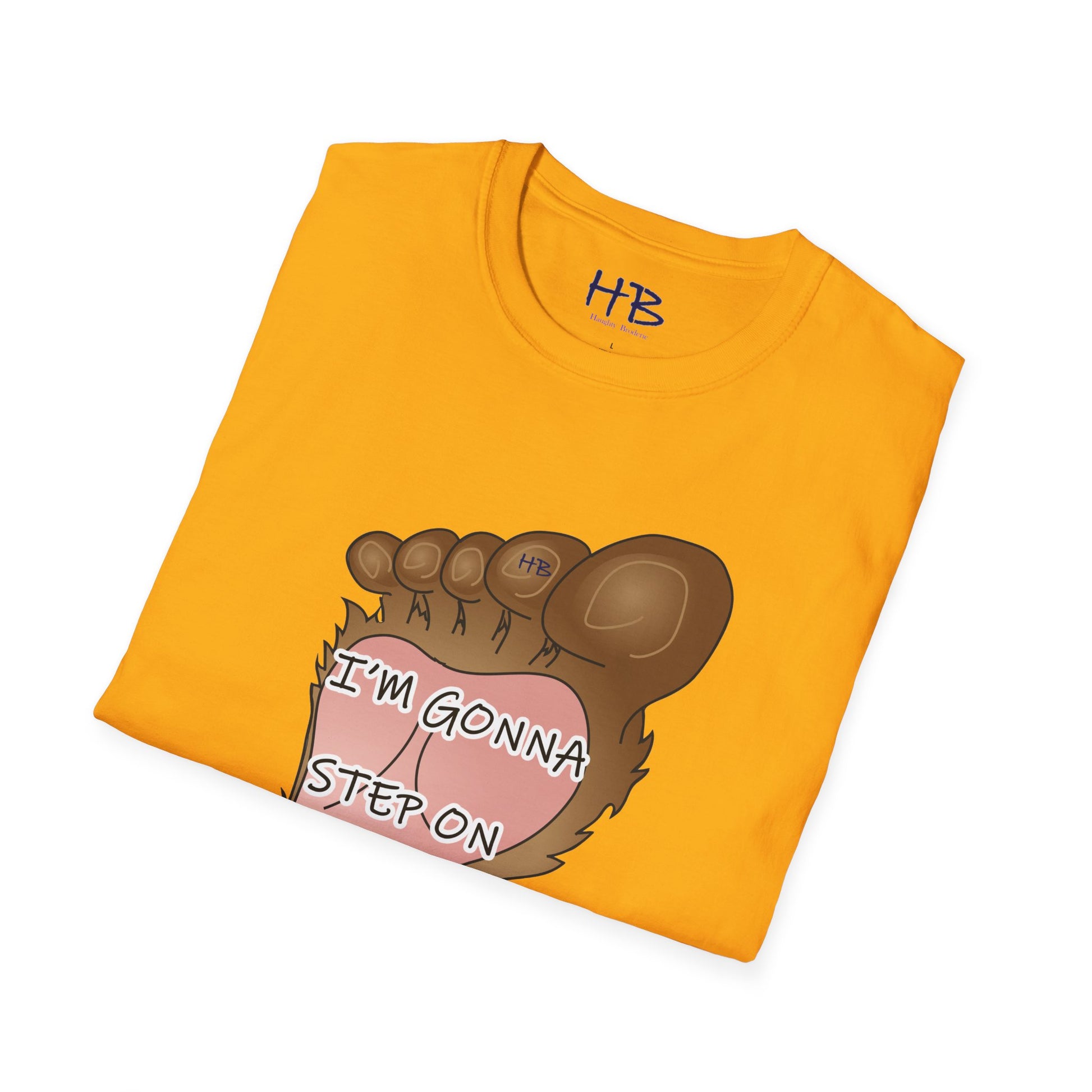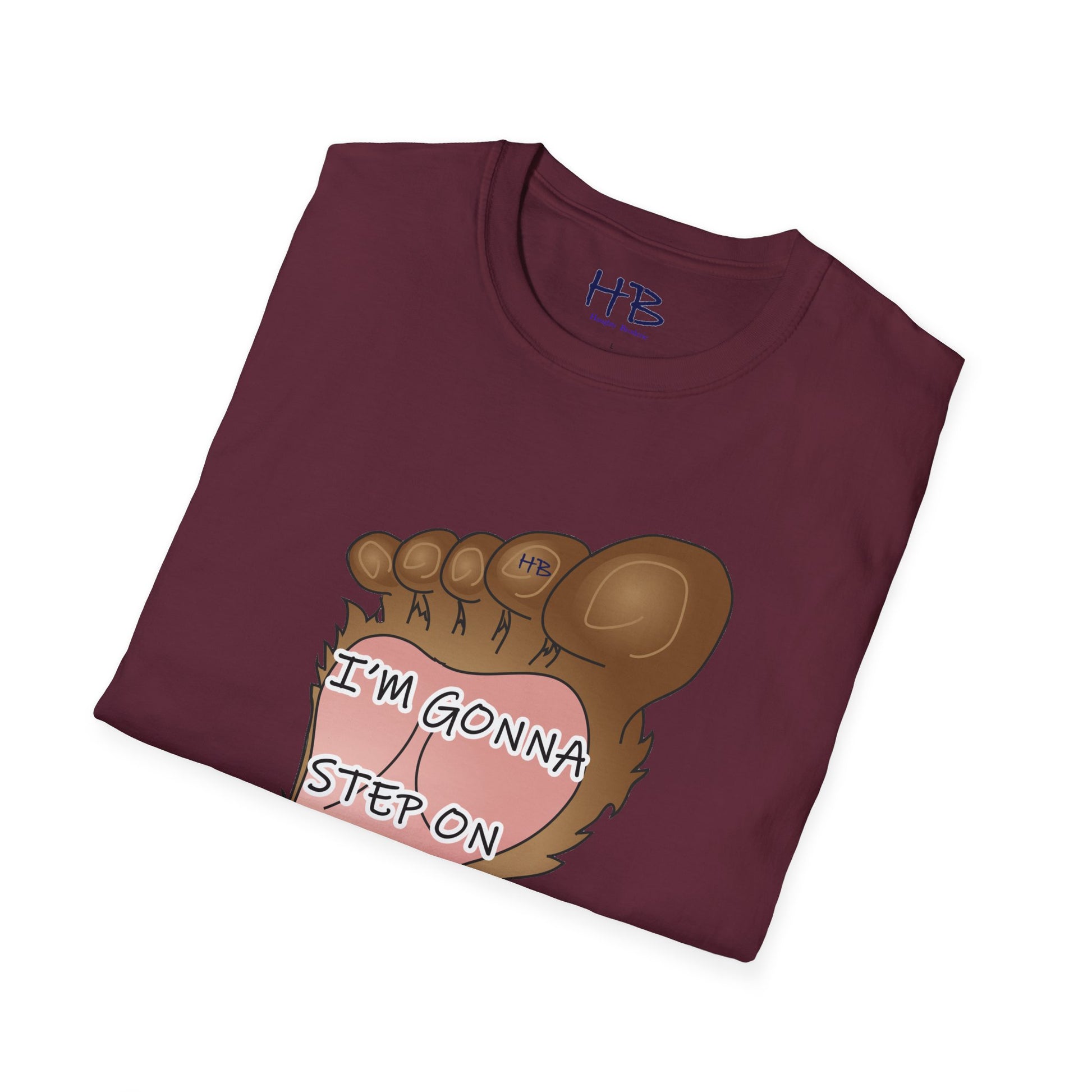 Introducing our extraordinary and unique apparel featuring an image of the sole of an animal's foot, accompanied by the bold proclamation, "I'M GONNA STEP ON Y'OU FACE." This one-of-a-kind t-shirt is not just an ordinary piece of clothing; it's a statement of confidence, a declaration of strength, and a symbol of individuality that's sure to capture attention.