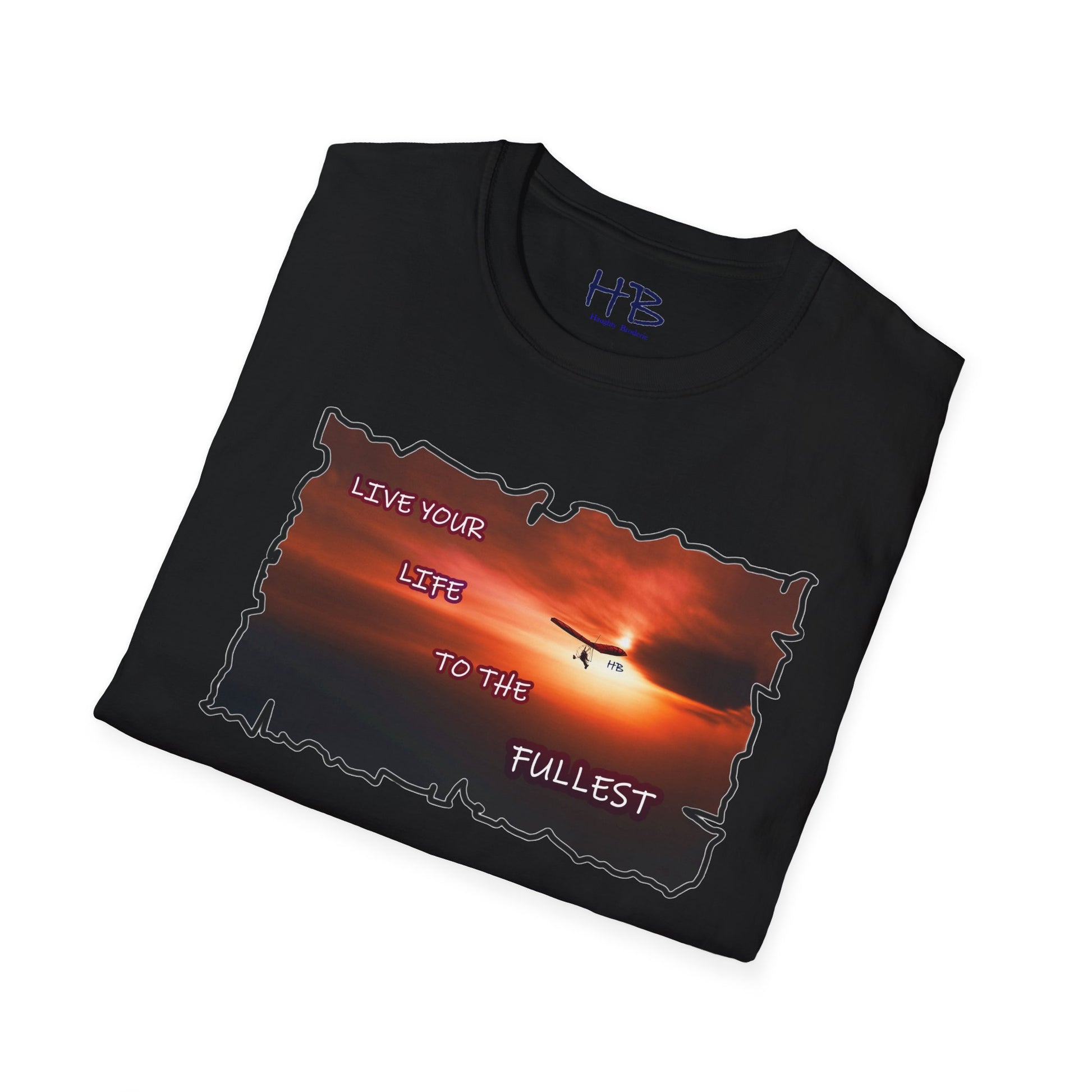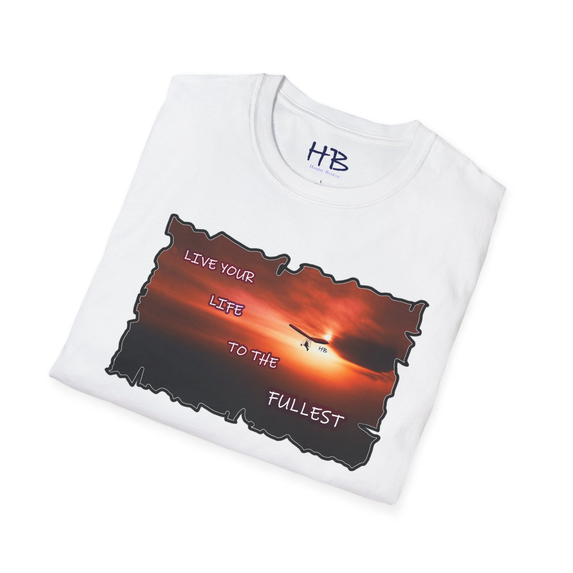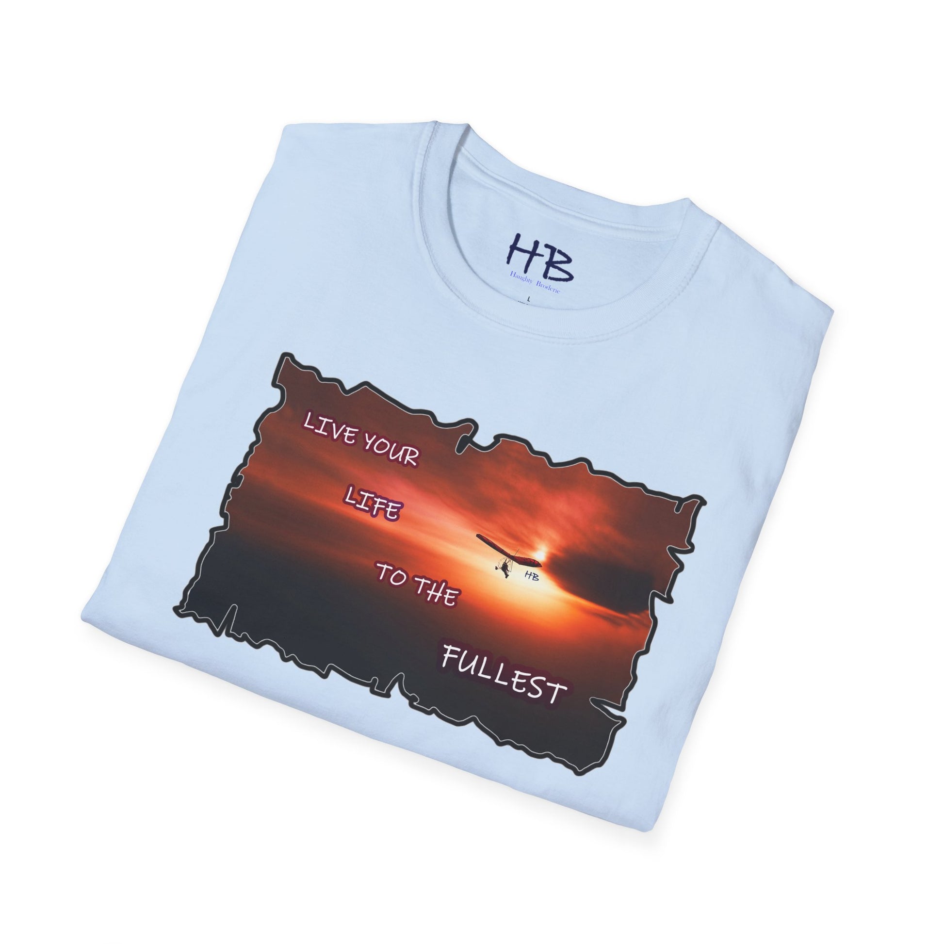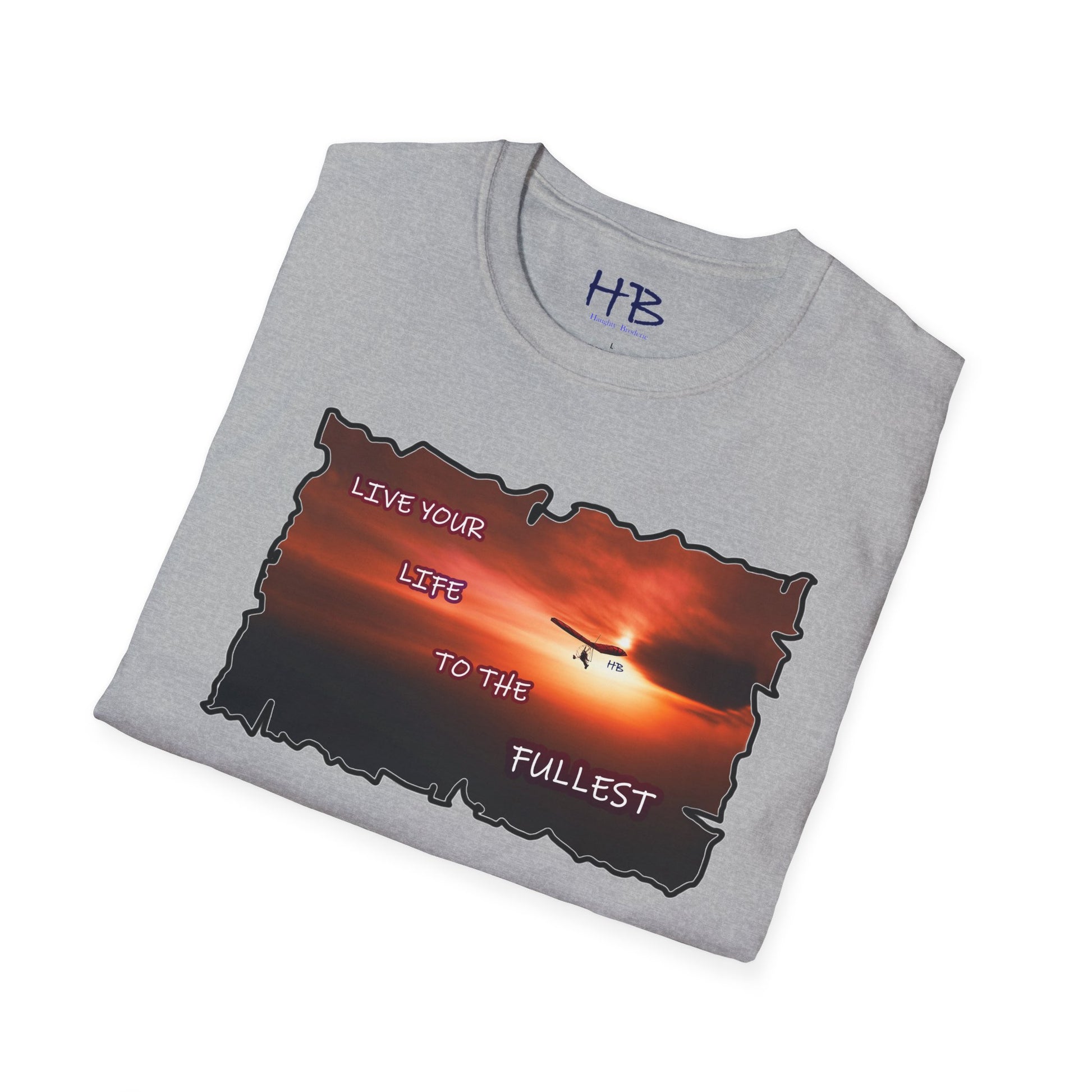 The paraglider serves as a symbol of unbridled freedom and the courage to explore the unknown. It beckons you to embrace life's opportunities, reminding you to "Live your Life to the Fullest." In today's fast-paced world, where we often find ourselves caught in the whirlwind of responsibilities, this tee shirt is a gentle reminder of the importance of seizing the day.