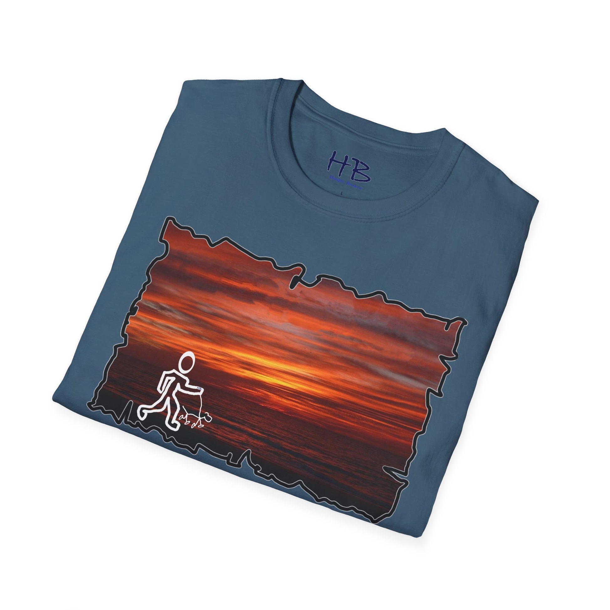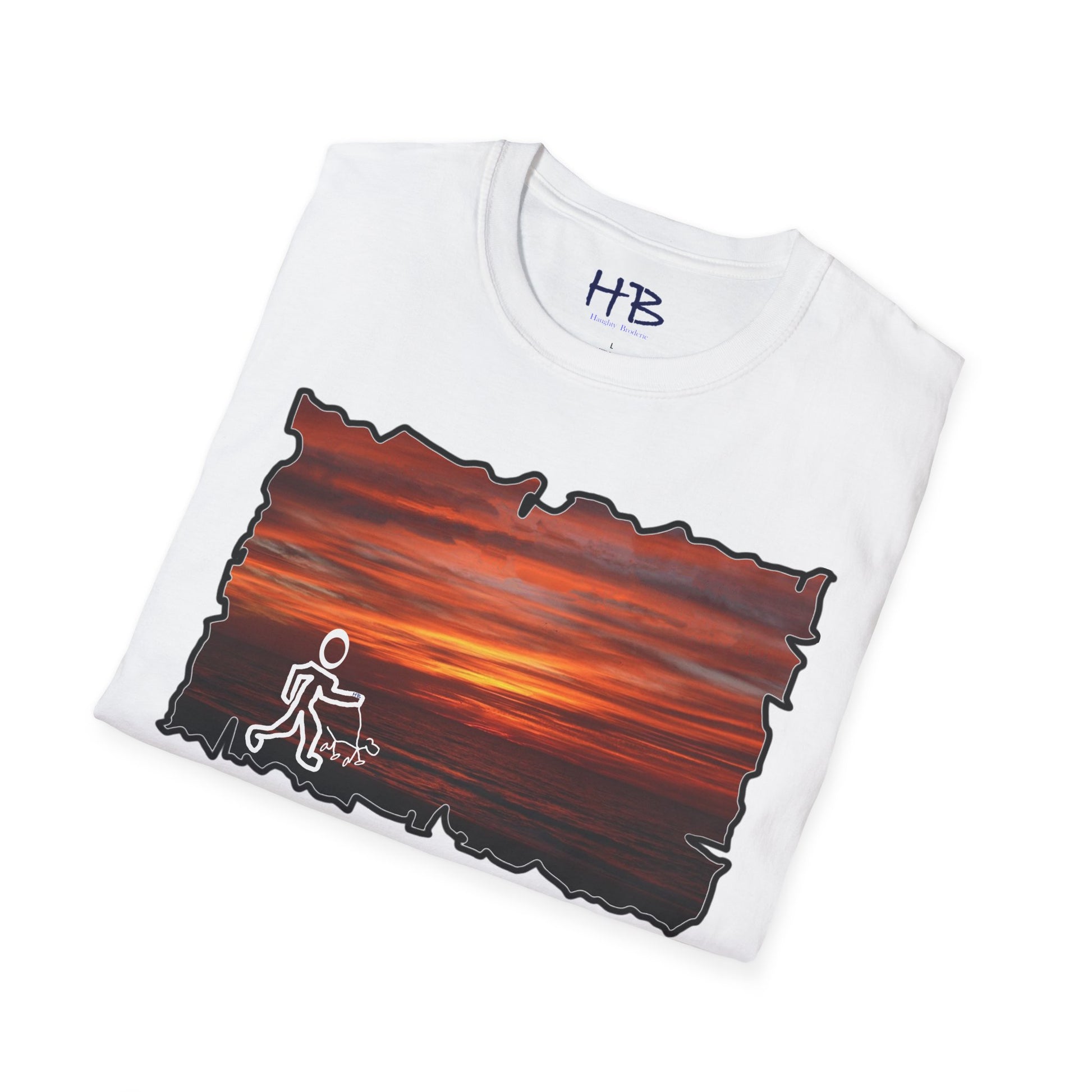 Imagine adorning yourself with the Seaside Sunset Stroll Attire, a true embodiment of coastal charm. This remarkable garment beautifully encapsulates the enchanting vista of a serene beach at sunset, where the sun gracefully paints the sky with hues of golden oranges, soft pinks, and tranquil purples. In the midst of this idyllic scene, a stickman and his trusty stickman dog embark on a leisurely, heartwarming walk along the shoreline.