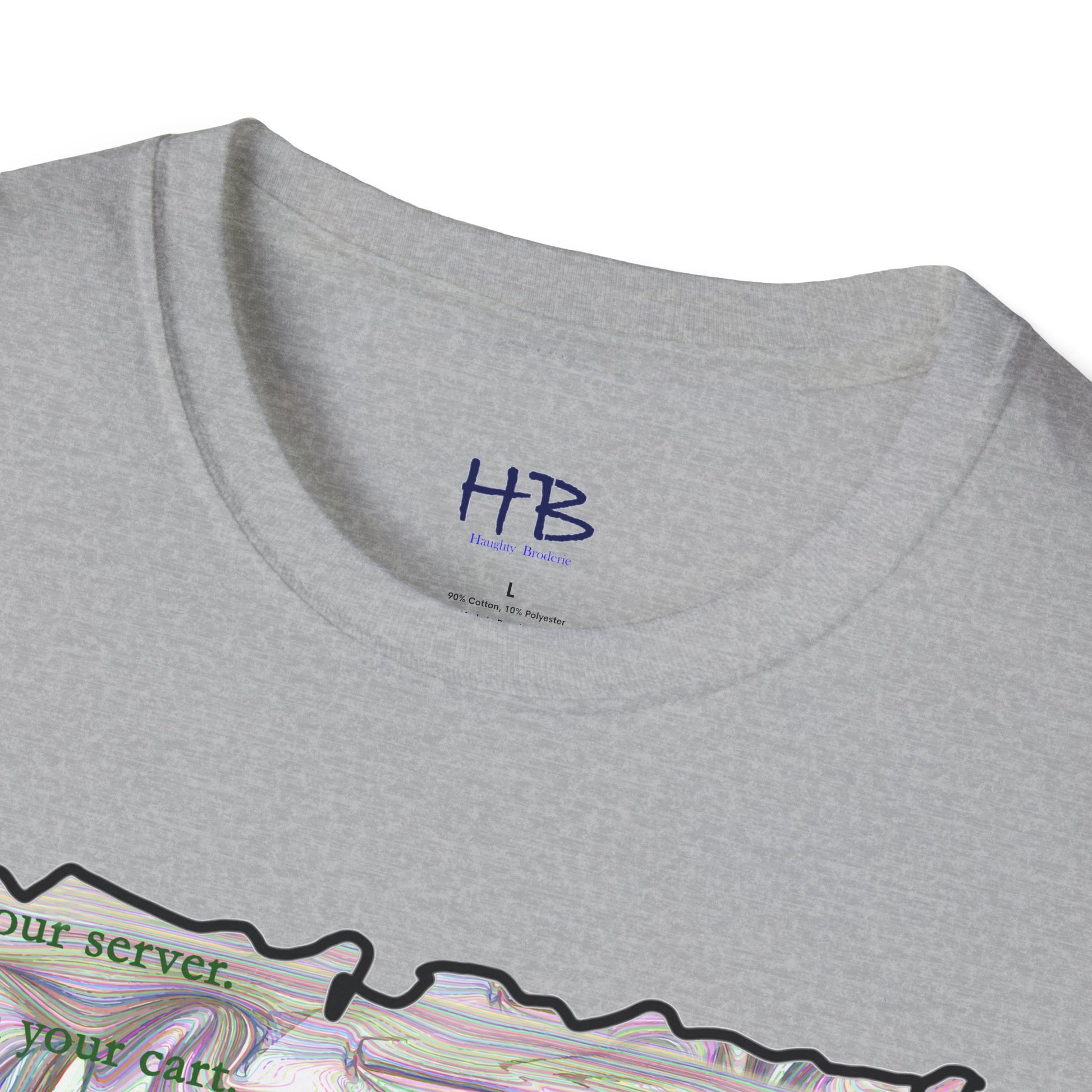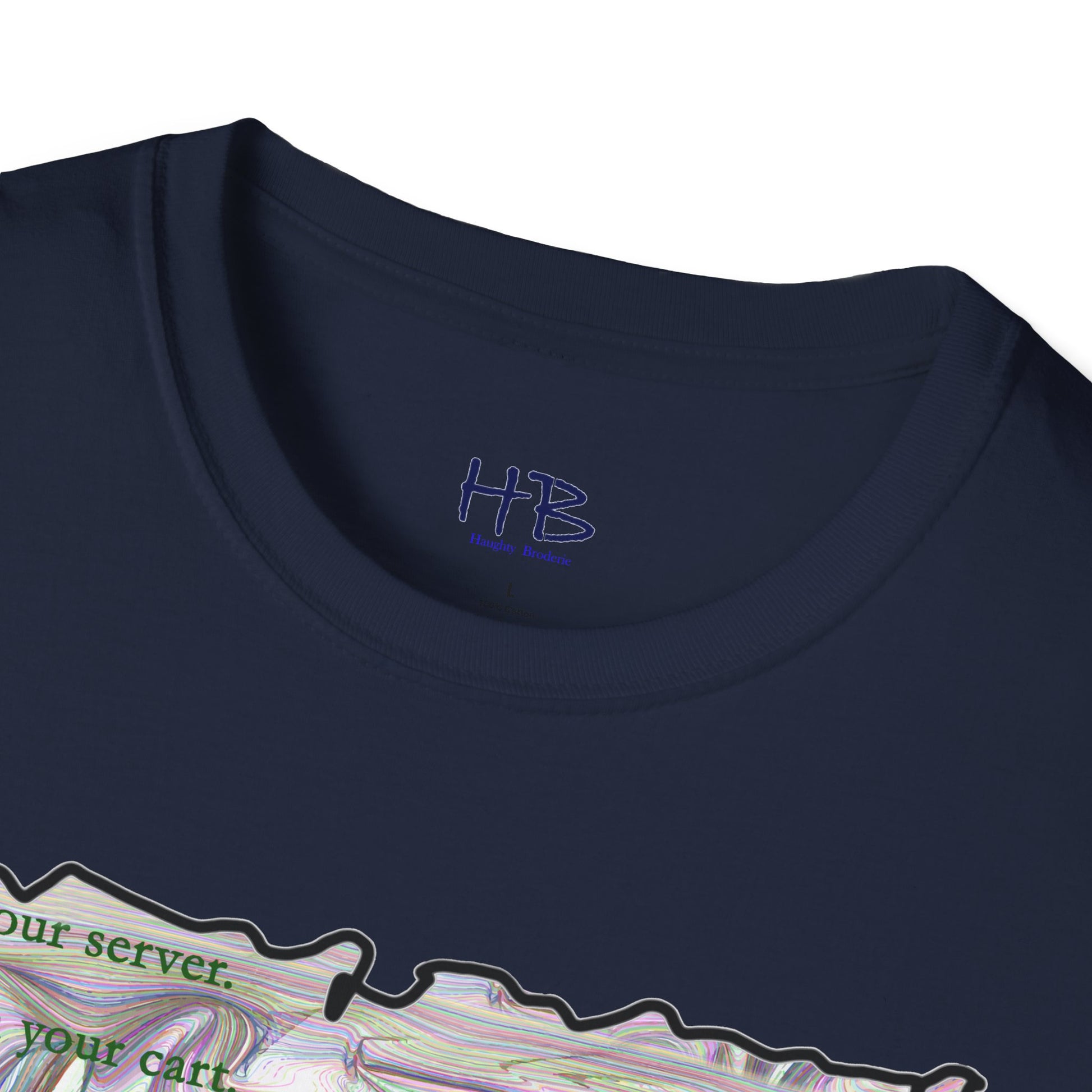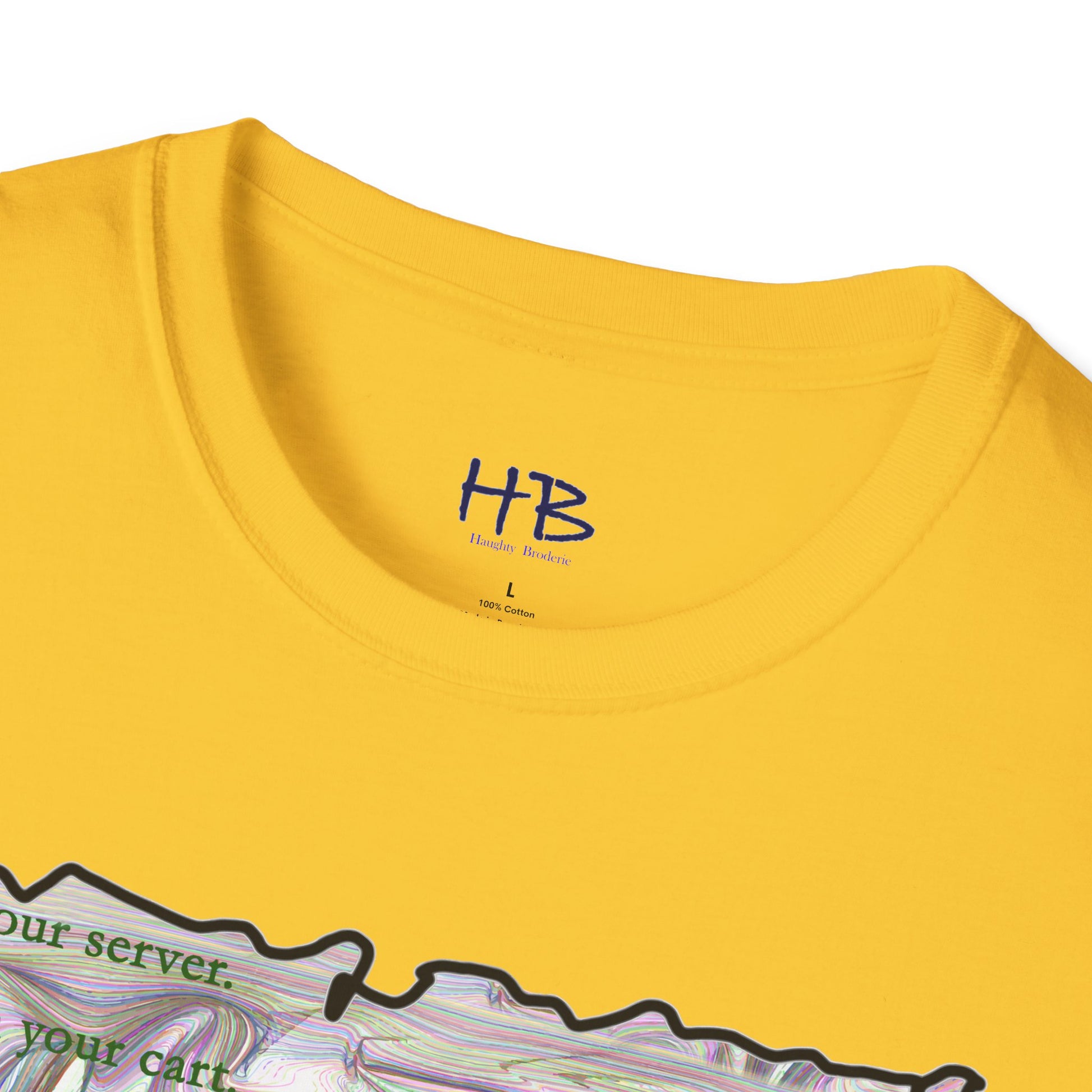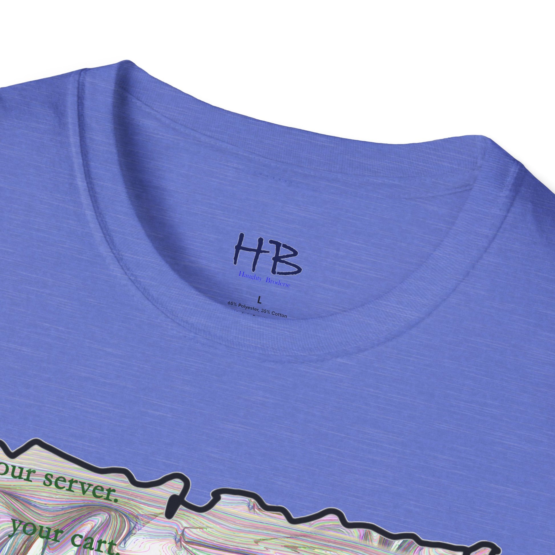 Introducing our stunning t-shirt featuring a breathtaking and vibrant wavy backdrop adorned with the gorgeous planet earth situated gracefully on its side. The design is accentuated by a powerful message presented in bold letters that reads, "Tip your server, Return your cart, Hold the door for the person behind you, Pick up a piece of trash, let someone into your lane, Small acts have a ripple effect, That's how we CHANGE THE WORLD."