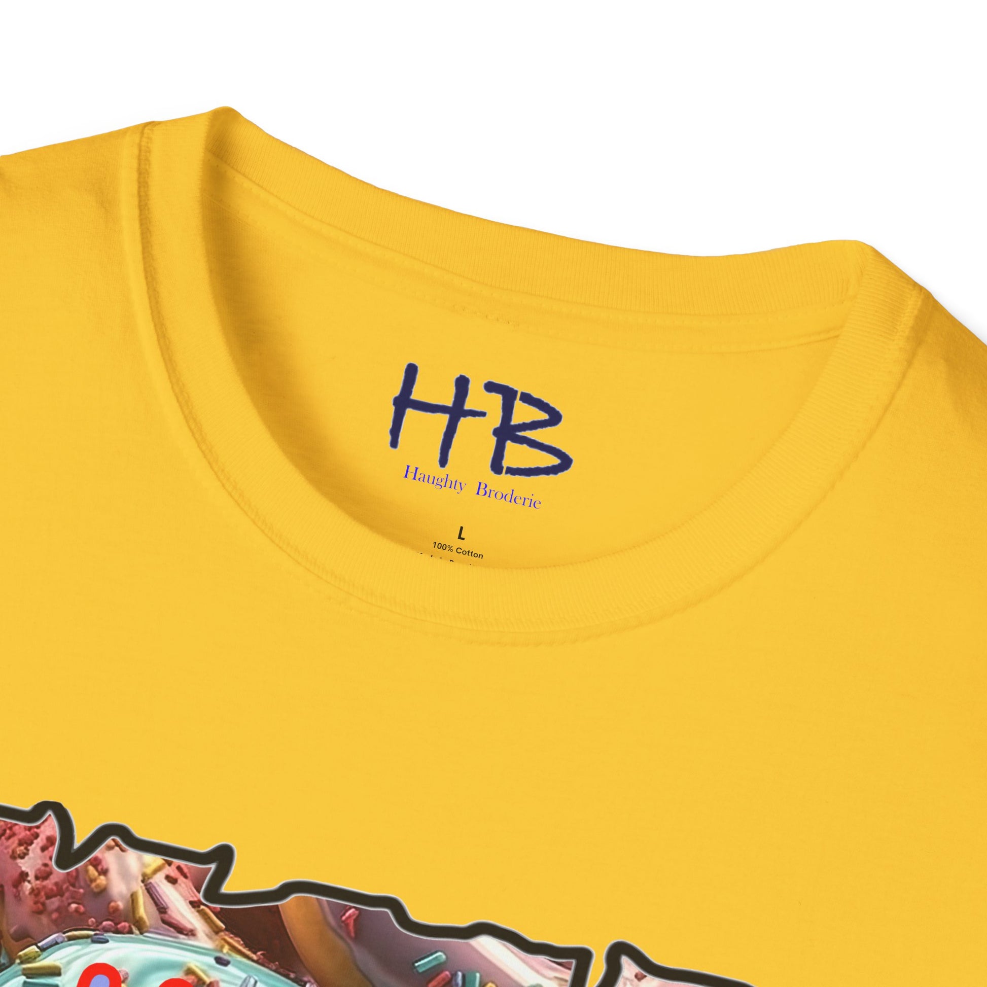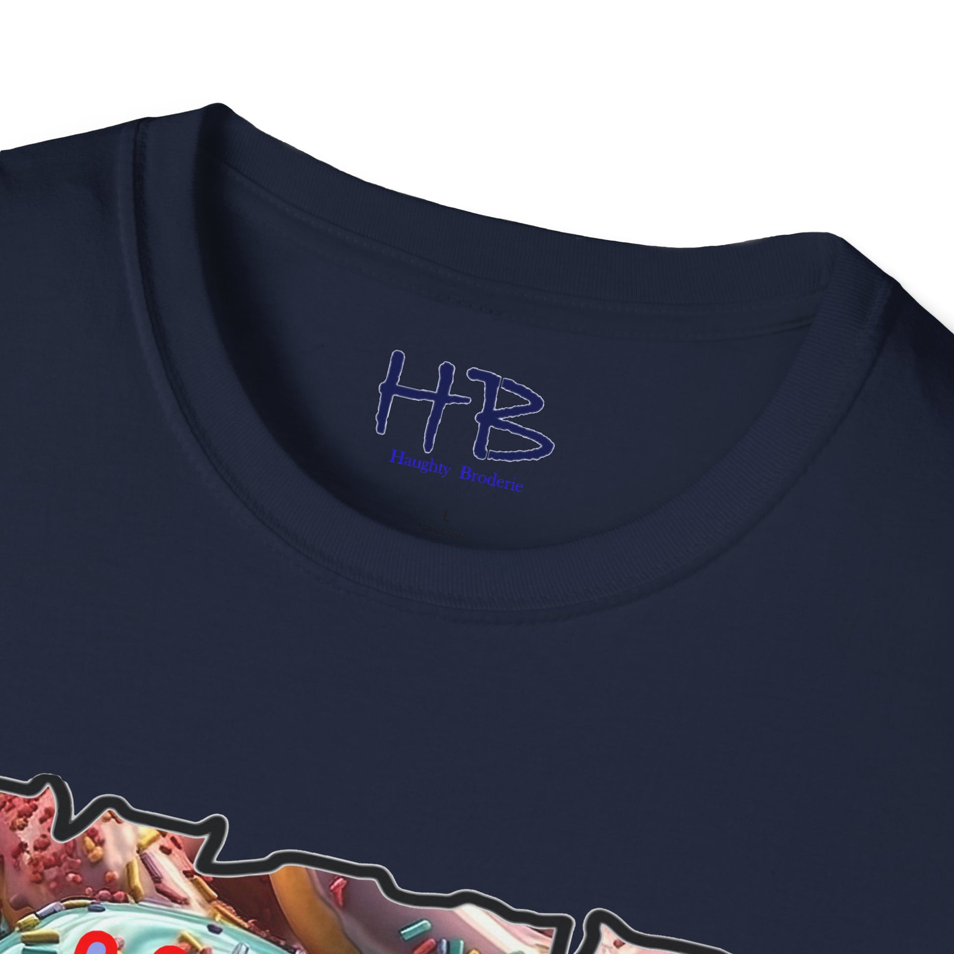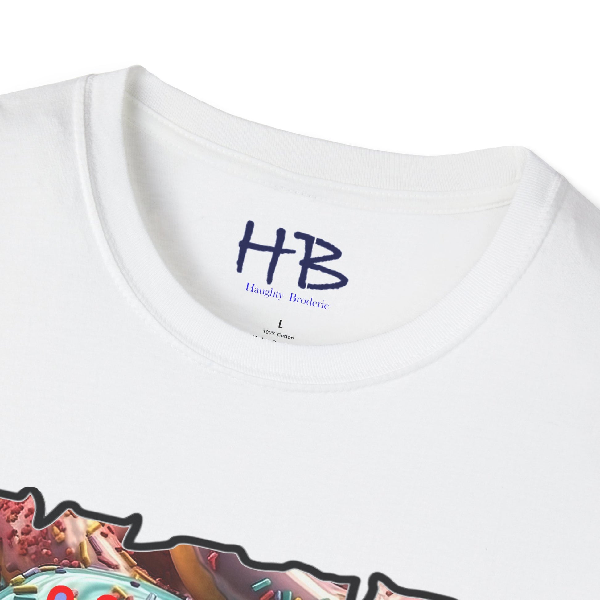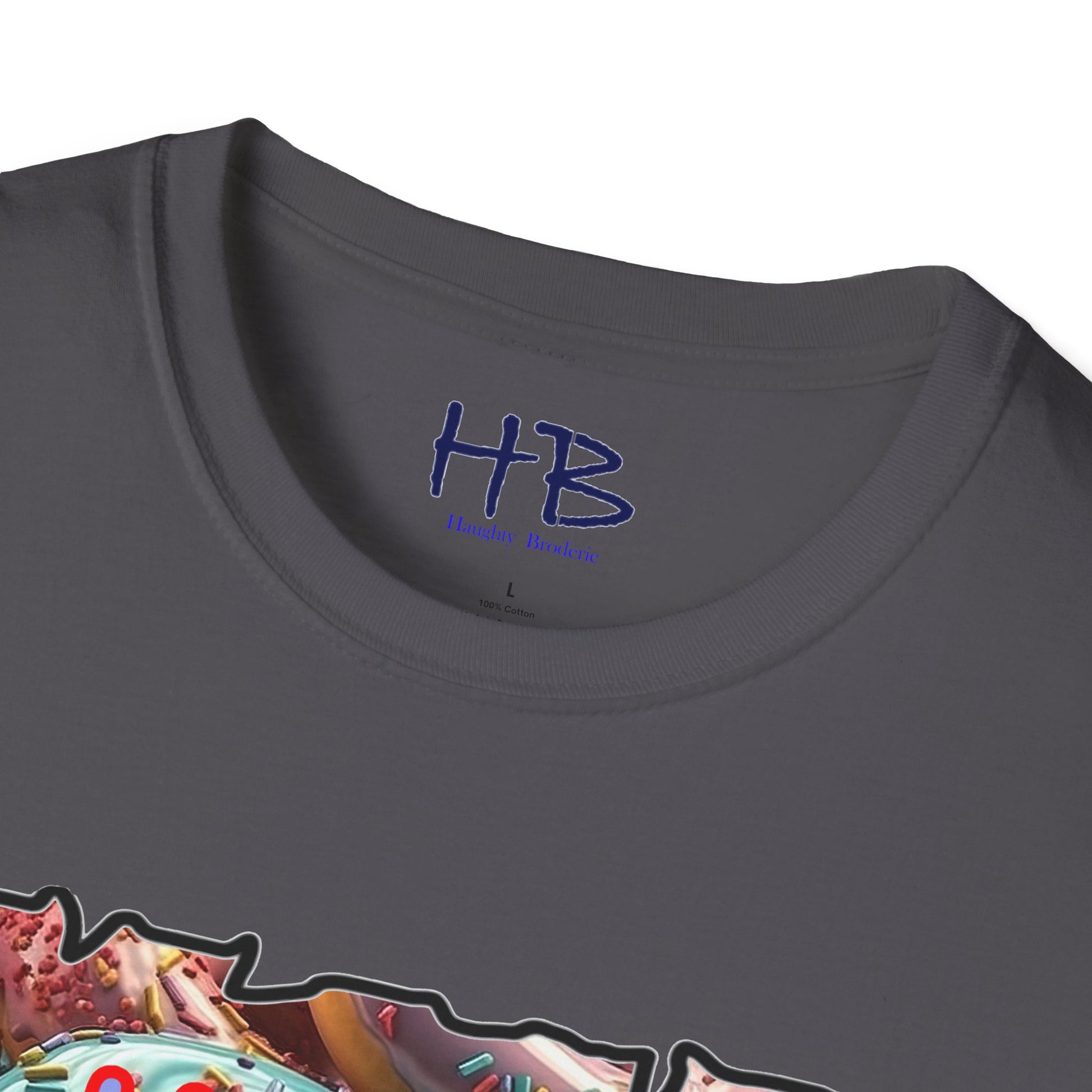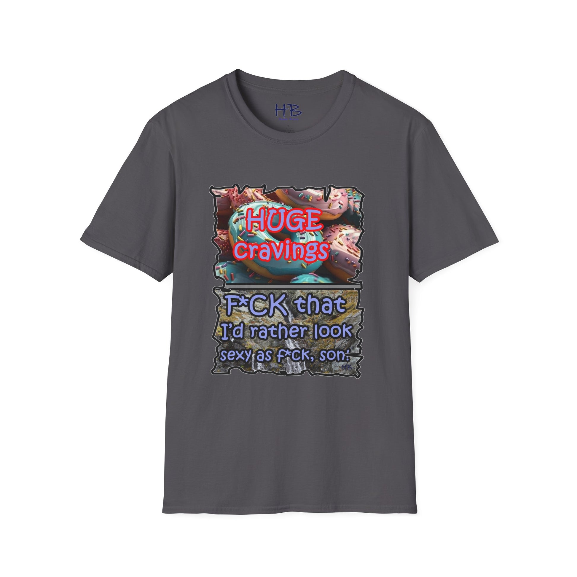 Introducing our remarkable tee shirt that combines delectable imagery and powerful messaging to make a statement in today's world. Feast your eyes on the top image, adorned with luscious glazed donuts boasting irresistible toppings. As you admire the tantalizing treats, the text boldly declares "HUGE CRAVINGS," capturing the essence of indulgence and temptation.