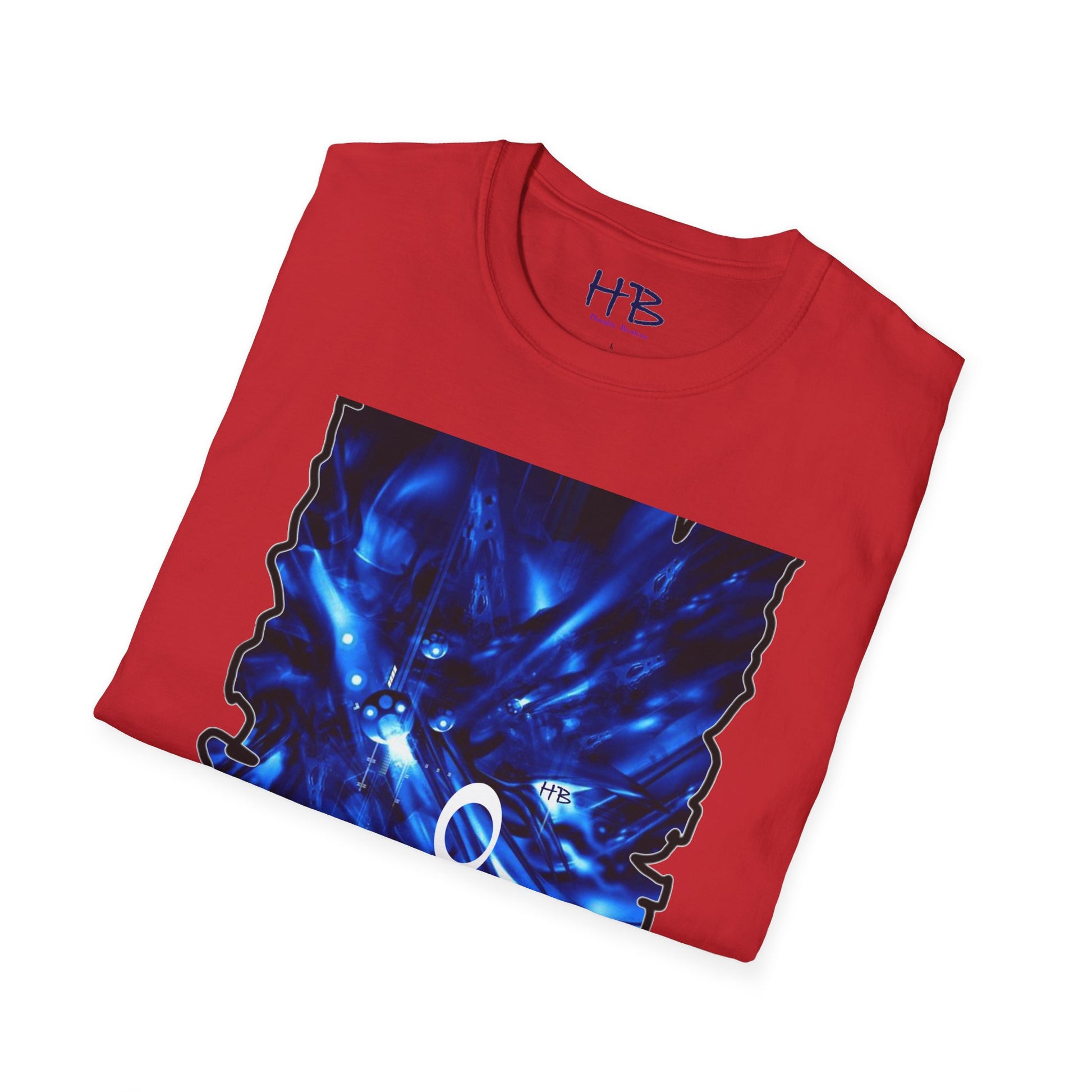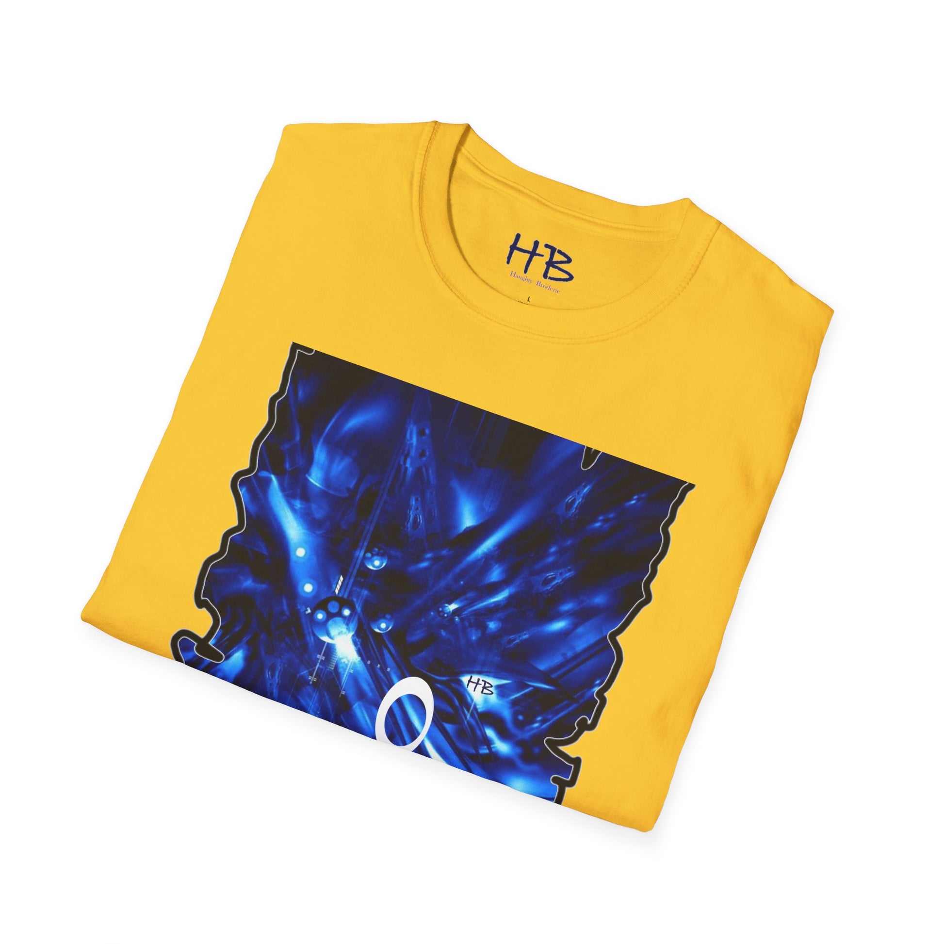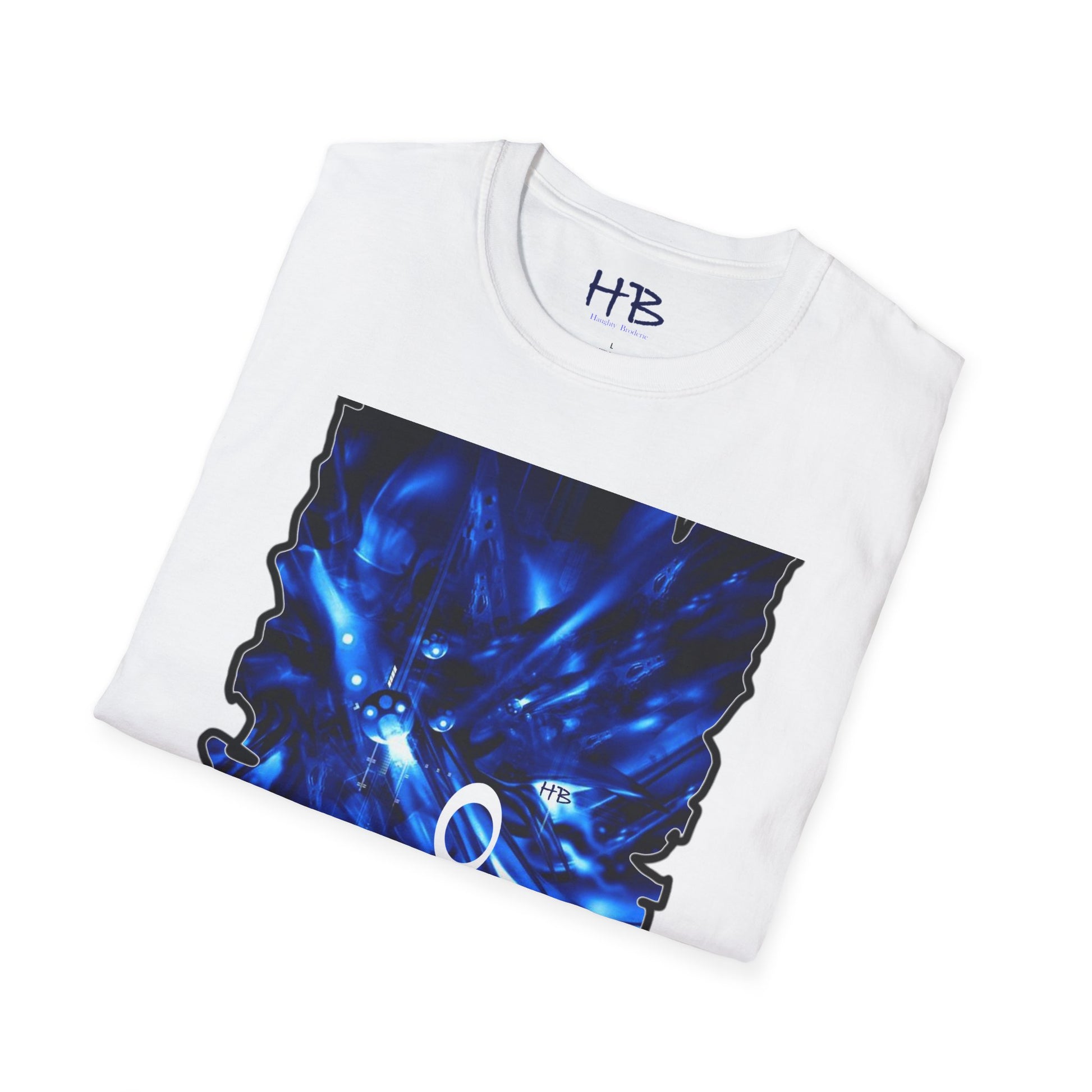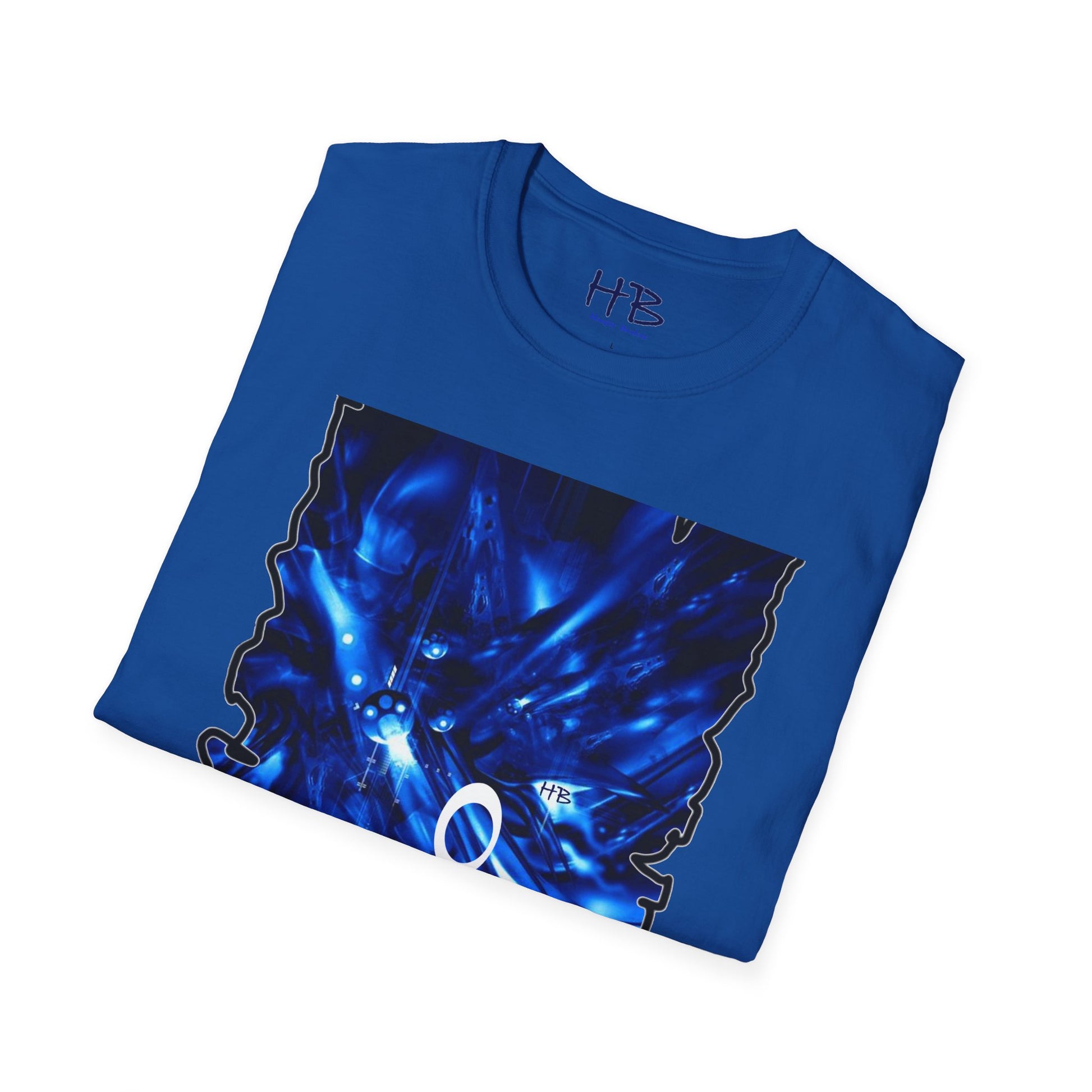 Introducing our extraordinary apparel: a dark blue canvas meticulously adorned with an array of intricate artistic patterns. This masterpiece is a visual marvel, featuring numerous slender and winding white lines, weaving in and out of each other, creating a mesmerizing dance that runs the gamut of emotions.