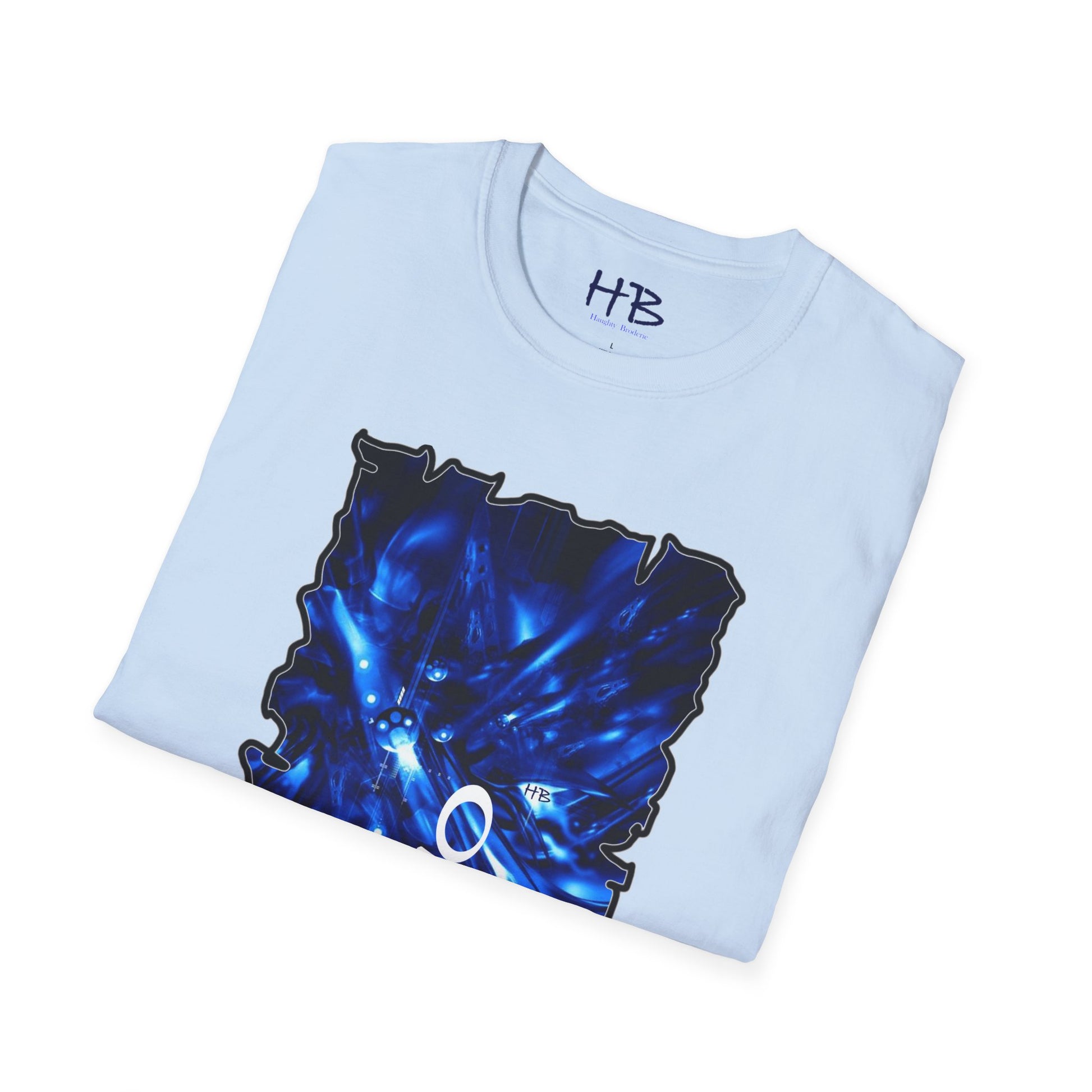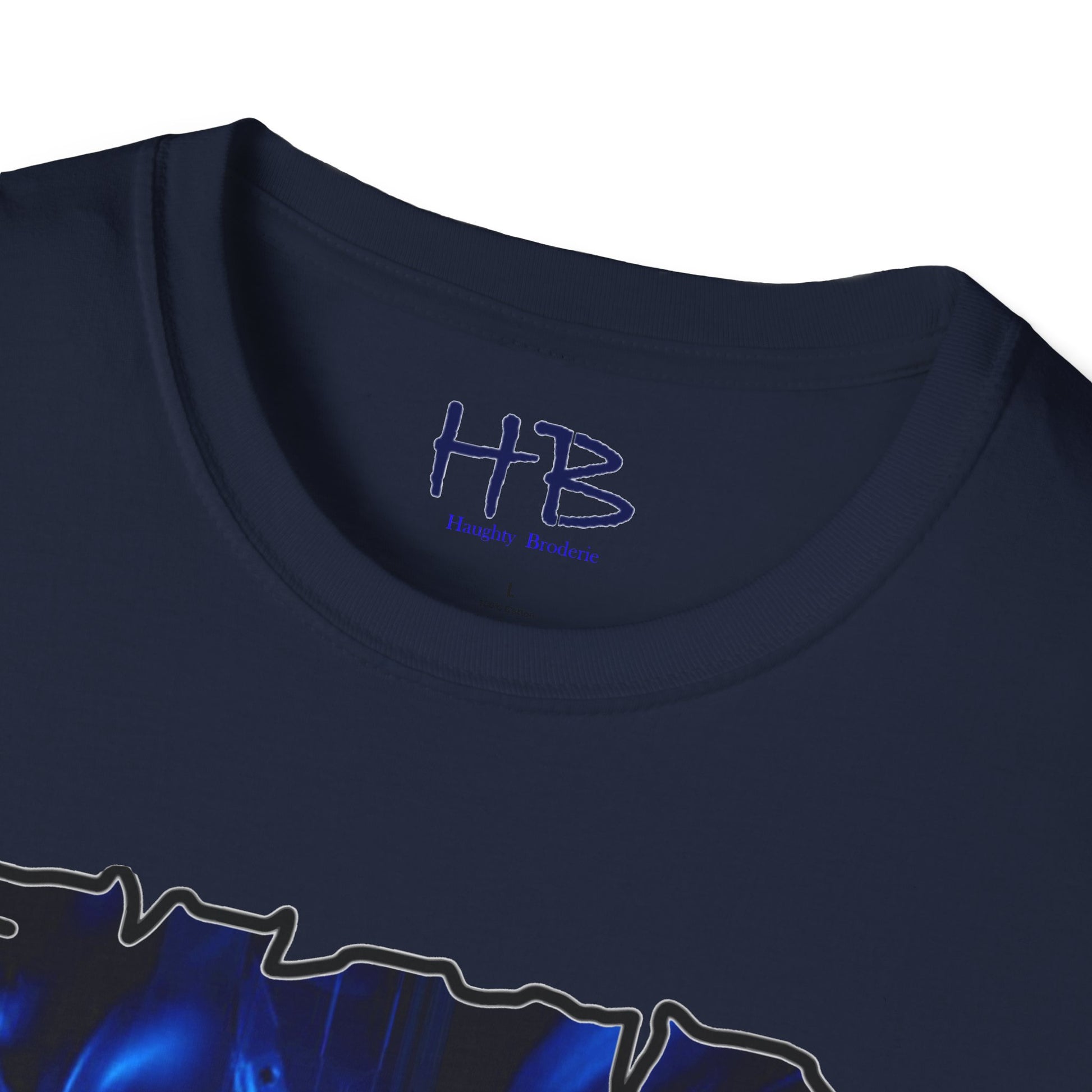 Introducing our extraordinary apparel: a dark blue canvas meticulously adorned with an array of intricate artistic patterns. This masterpiece is a visual marvel, featuring numerous slender and winding white lines, weaving in and out of each other, creating a mesmerizing dance that runs the gamut of emotions.