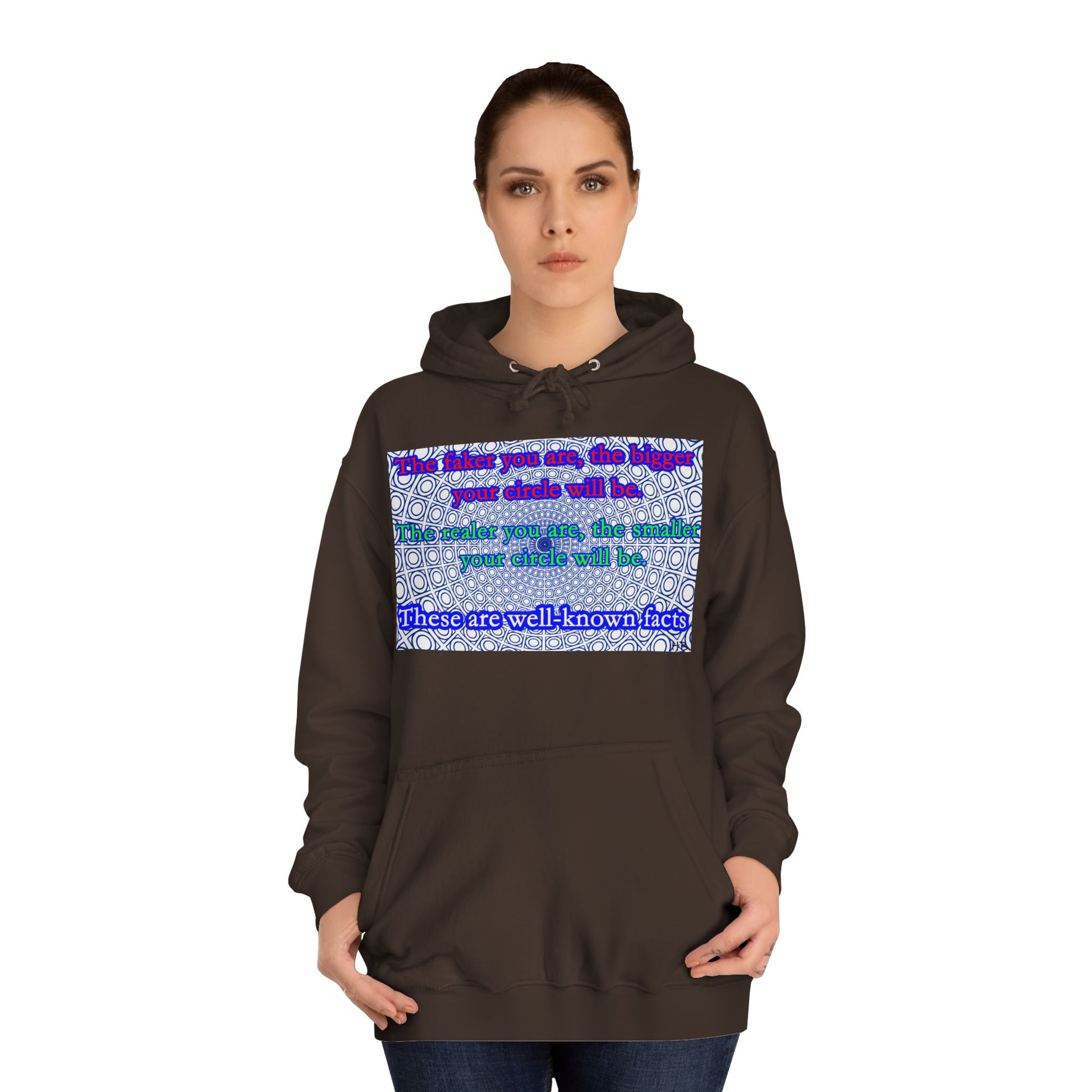 The faker you are, the bigger your circle will be. The realer you are the smaller your circle will be. These are well known facts!! (Hoodie - Cozy and Durable)