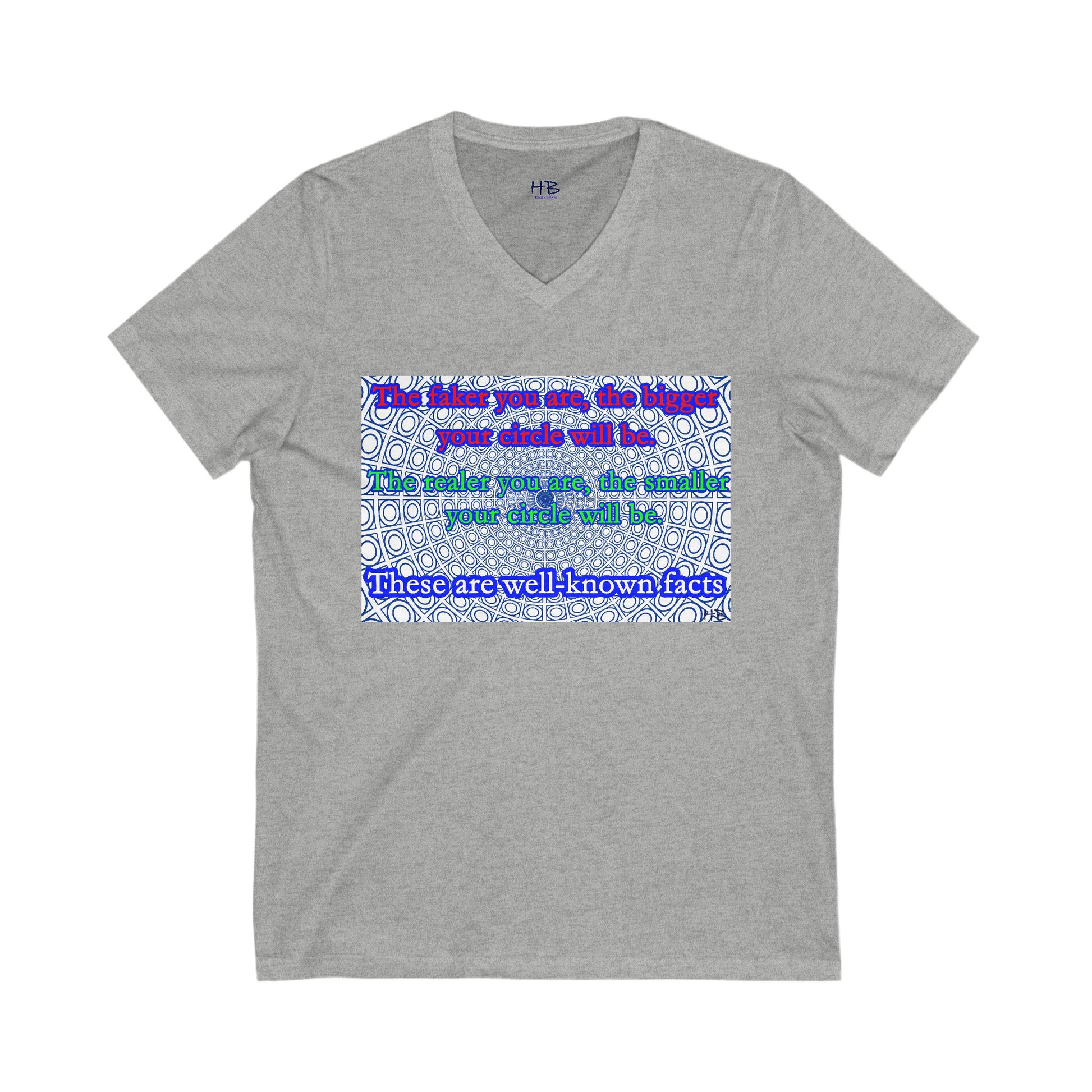 The faker you are, the bigger your circle will be. The realer you are the smaller your circle will be. These are well known facts!! (Unisex Jersey Short Sleeve V-neck - Comfortable Everyday Wear)