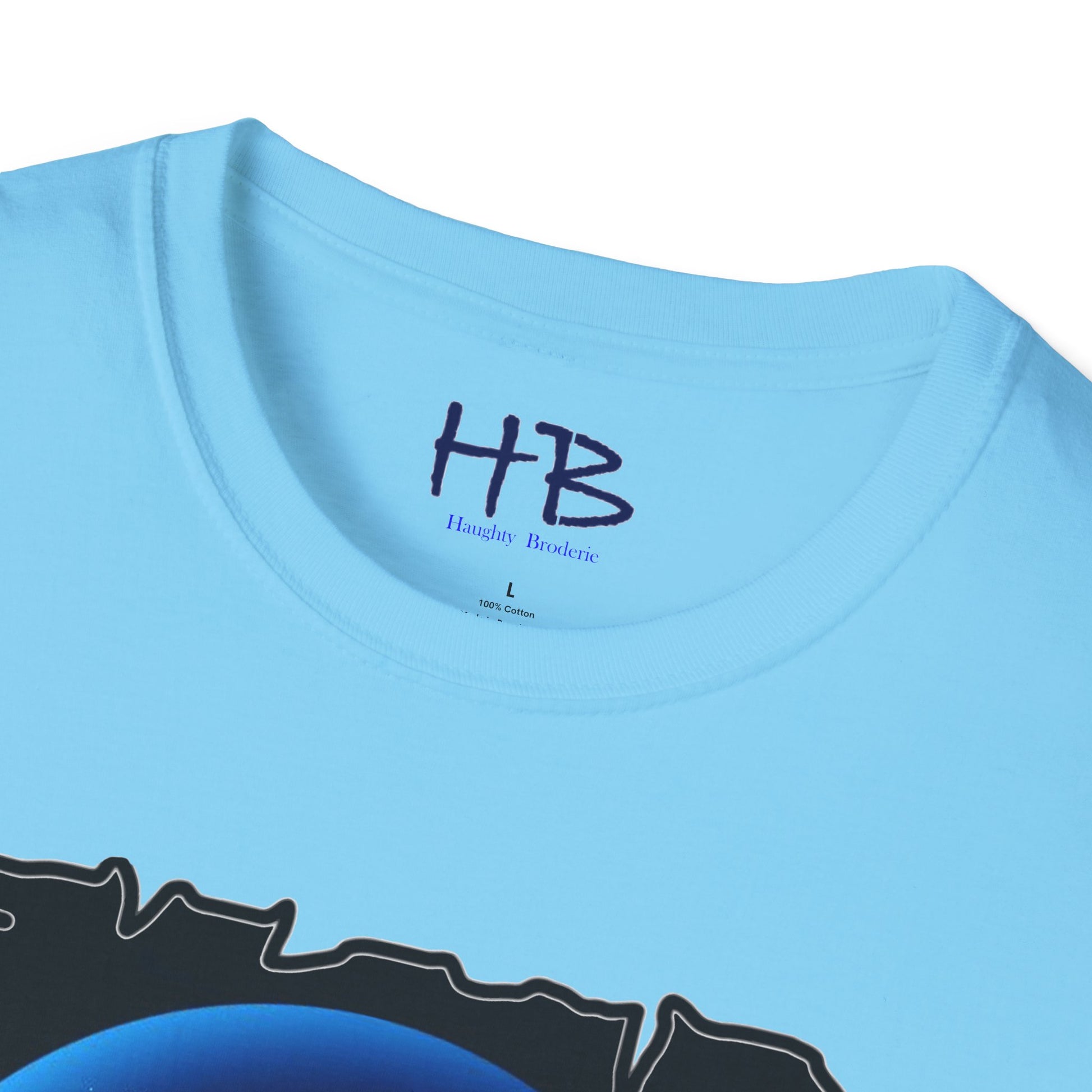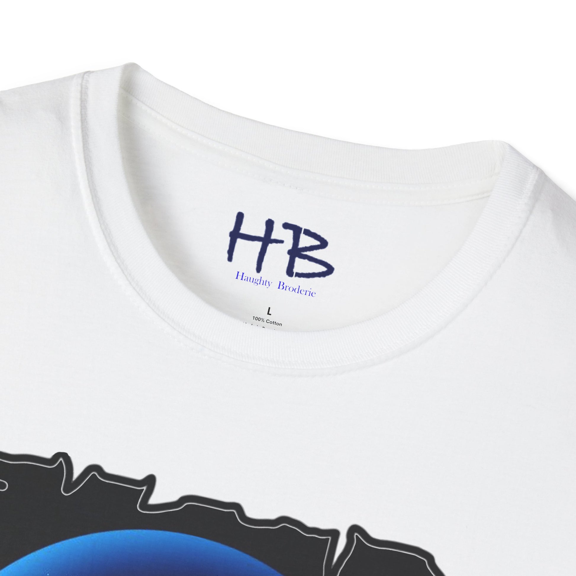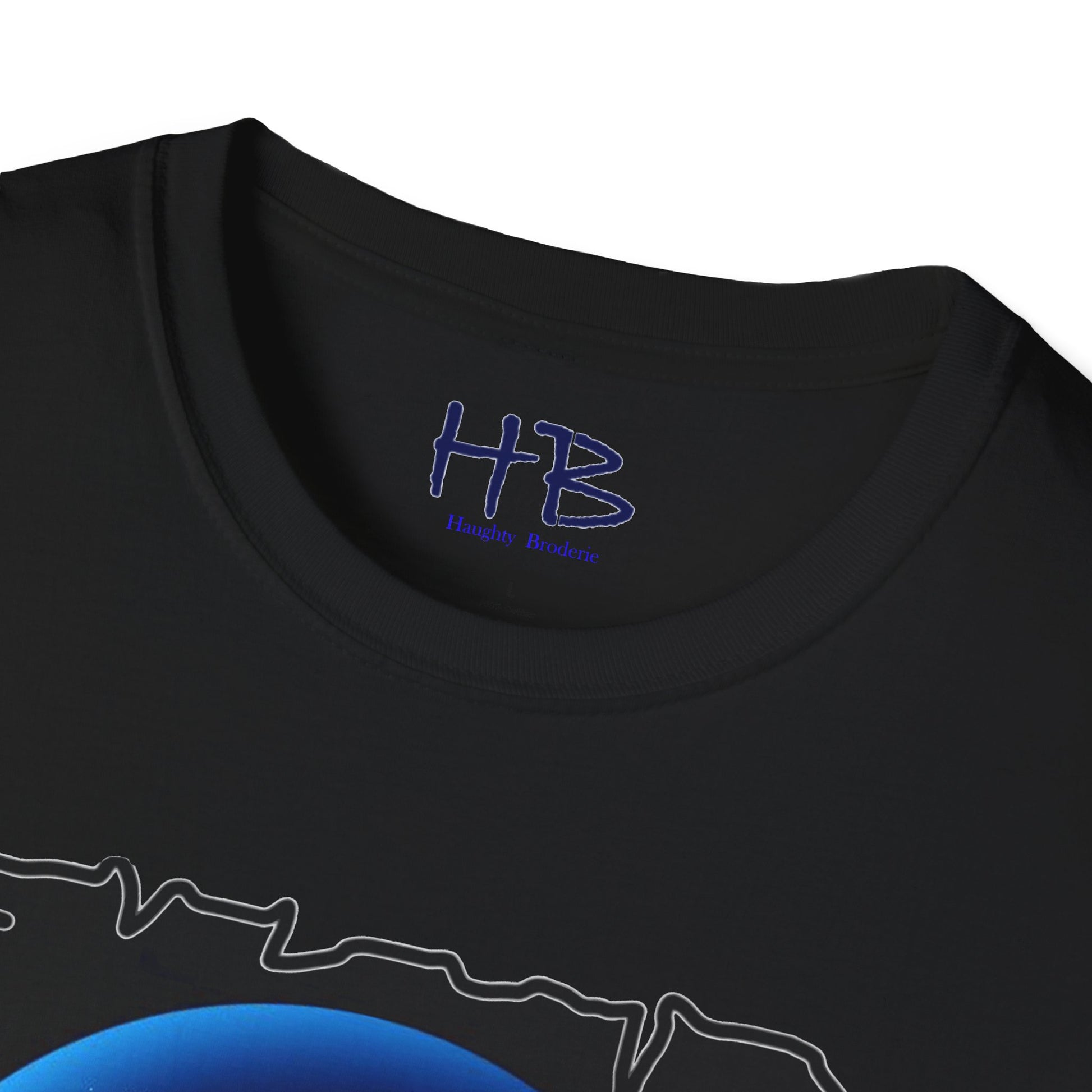 Introducing our exquisitely designed garment, a striking piece of wearable art that transcends the conventional boundaries of fashion. This shirt showcases a masterful composition, set against a rich, obsidian backdrop, adorned with an intricate interplay of lines and circles that rhythmically ascend and descend. The colors that dance upon this canvas are a harmonious blend of white, baby blue, and deep, mysterious dark blue, creating a symphony of visual delight.