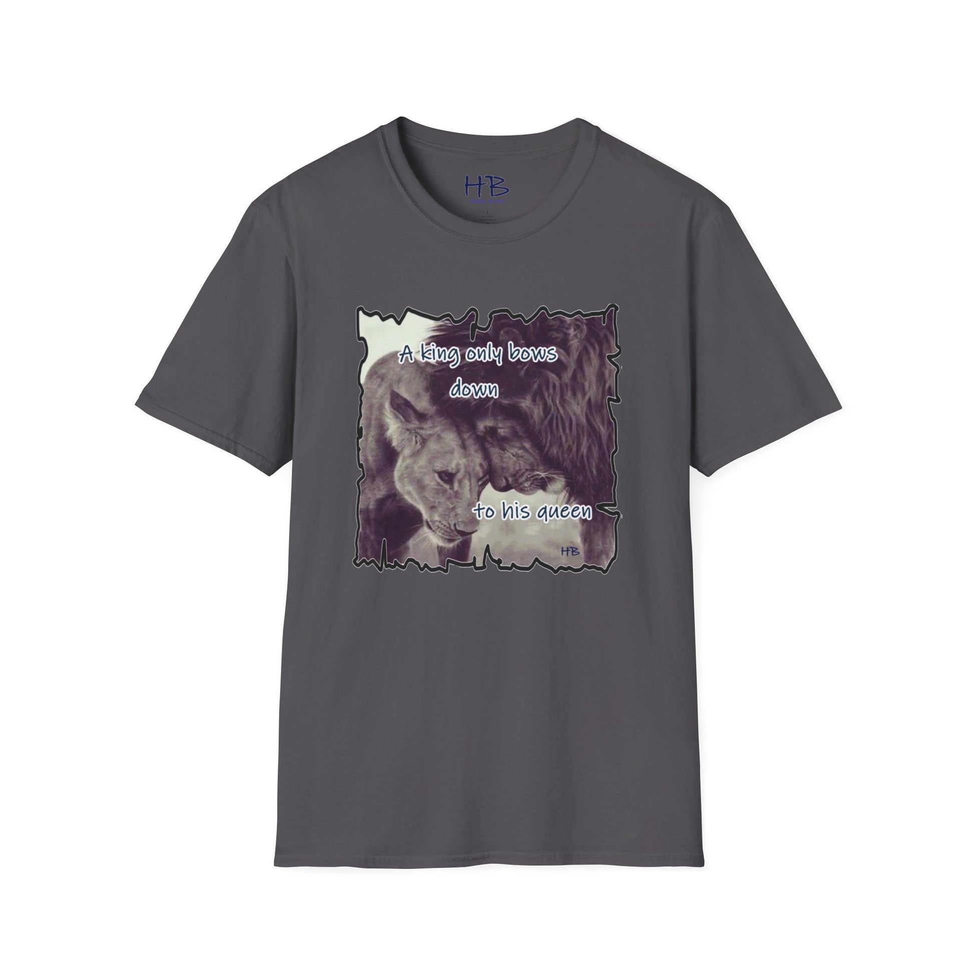 The sight of a lion, a symbol of strength and leadership, bowing before his queen portrays a profound sense of unity and partnership. Wearing this tee shirt, you become an ambassador for respect, equality, and the acknowledgment of women's empowerment.