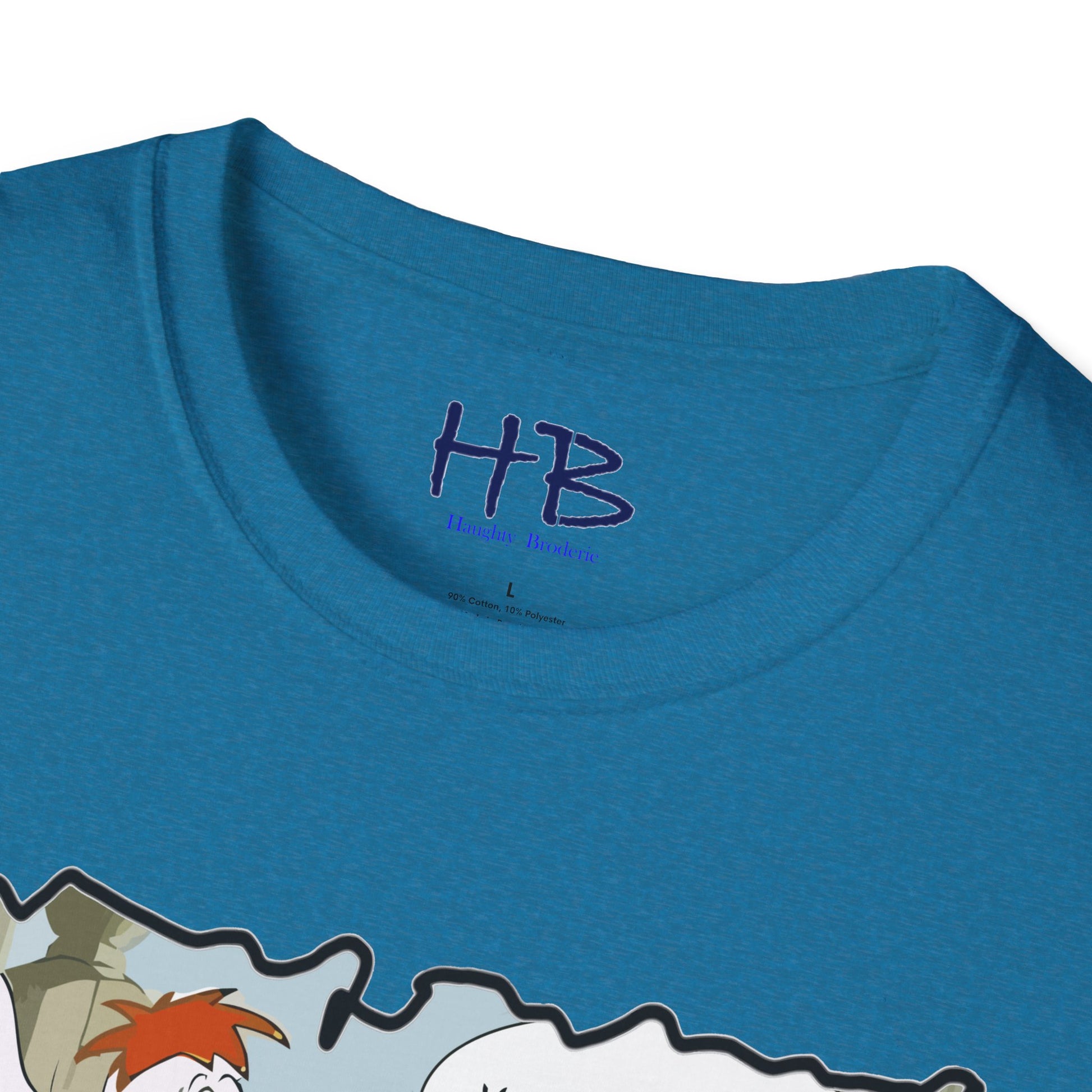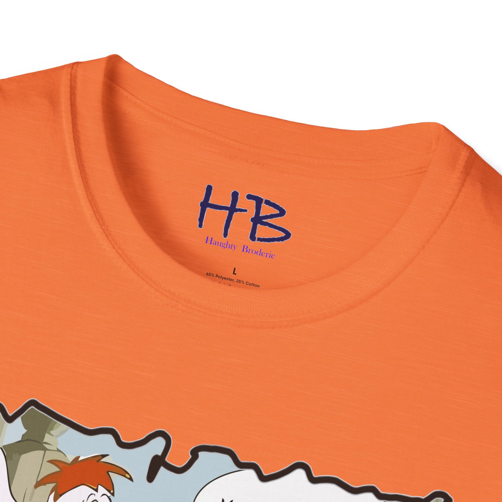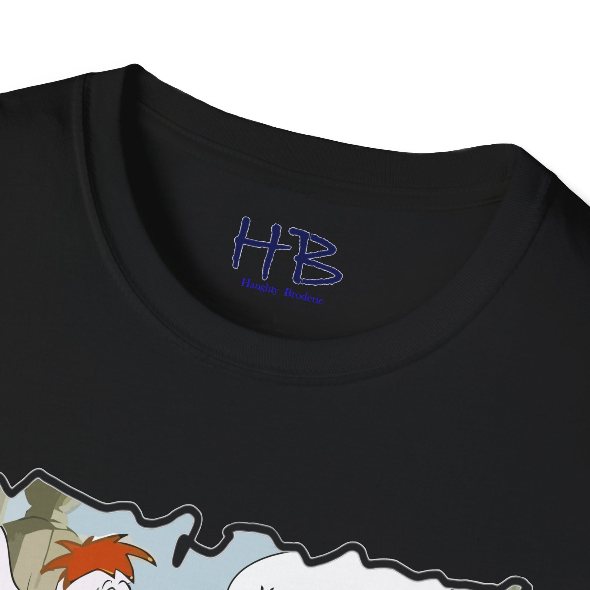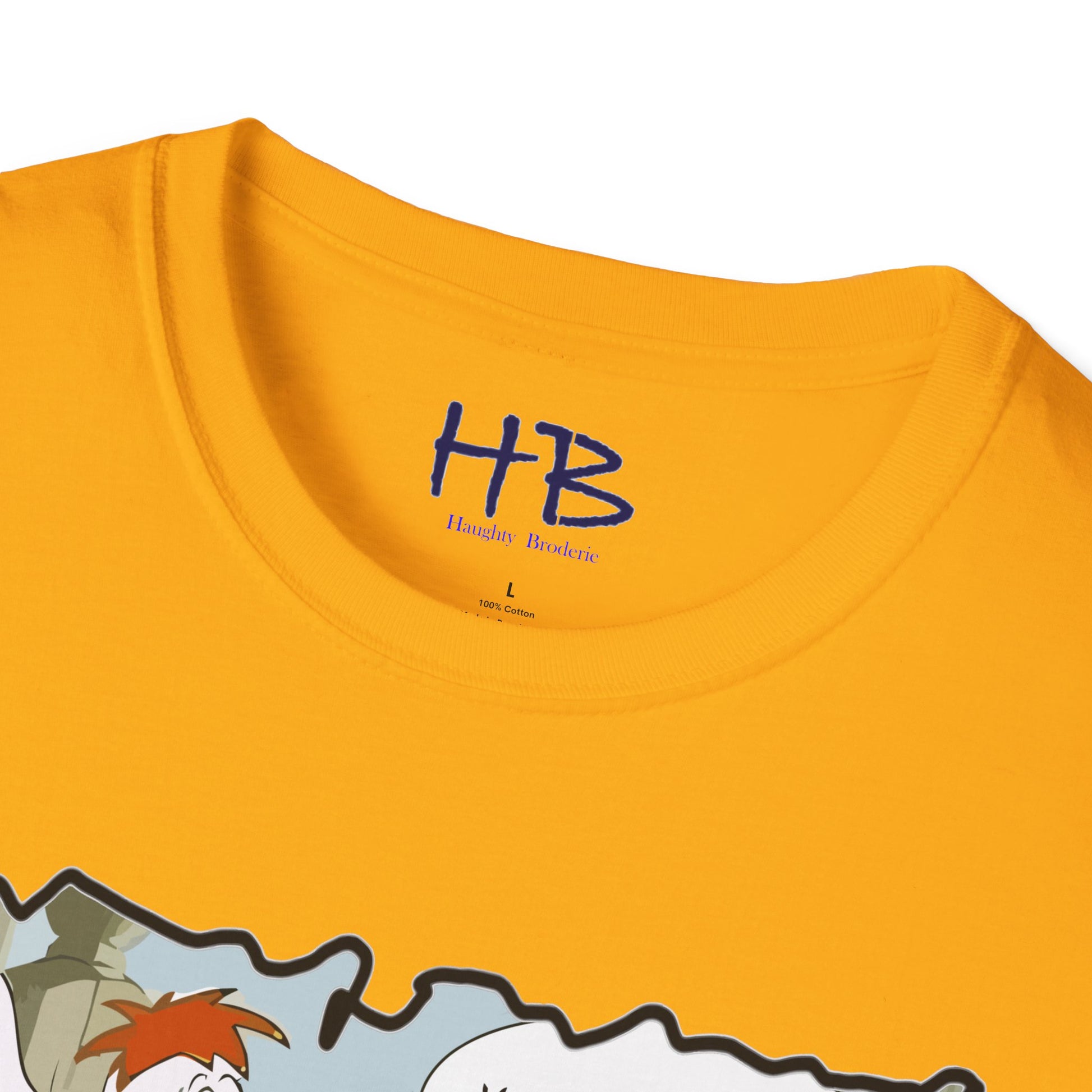 But this tee shirt design is not just about our lovable cartoon companion's amusing antics. It also represents a profound message about happiness. Our four-legged friend doesn't outwardly express empathy or happiness, but we know it's there just by the words it speaks. It reminds us that we don't have to show our happiness to be happy inside.