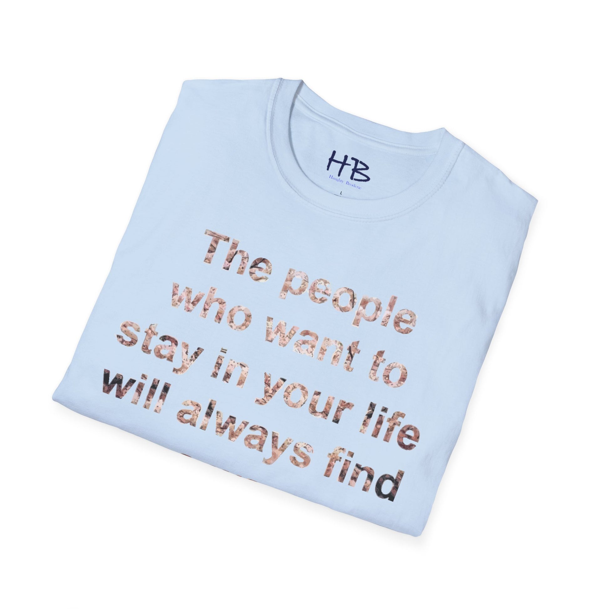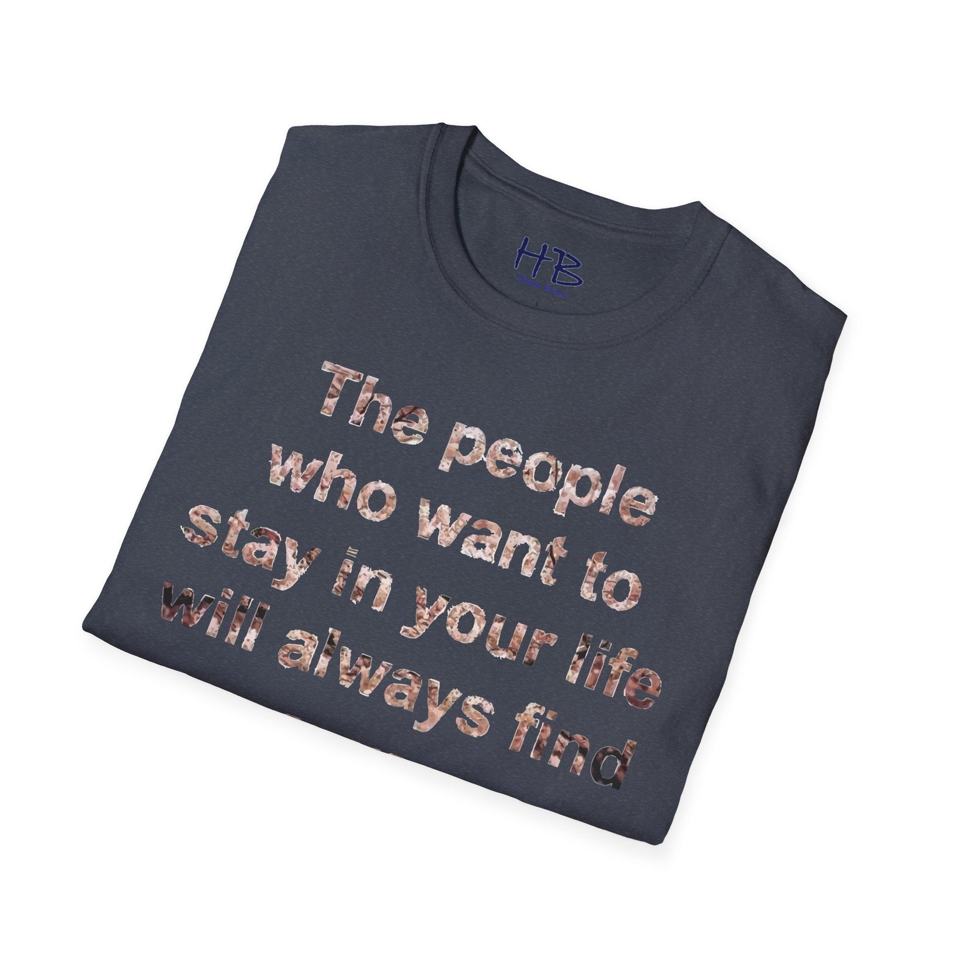 Introducing our remarkable tee shirt, adorned with a profound statement: "The individuals who desire to remain intertwined in your existence will inevitably discover a pathway." This captivating design not only boasts a visually striking appearance but also carries a powerful message that resonates with the essence of human connections in our modern world.