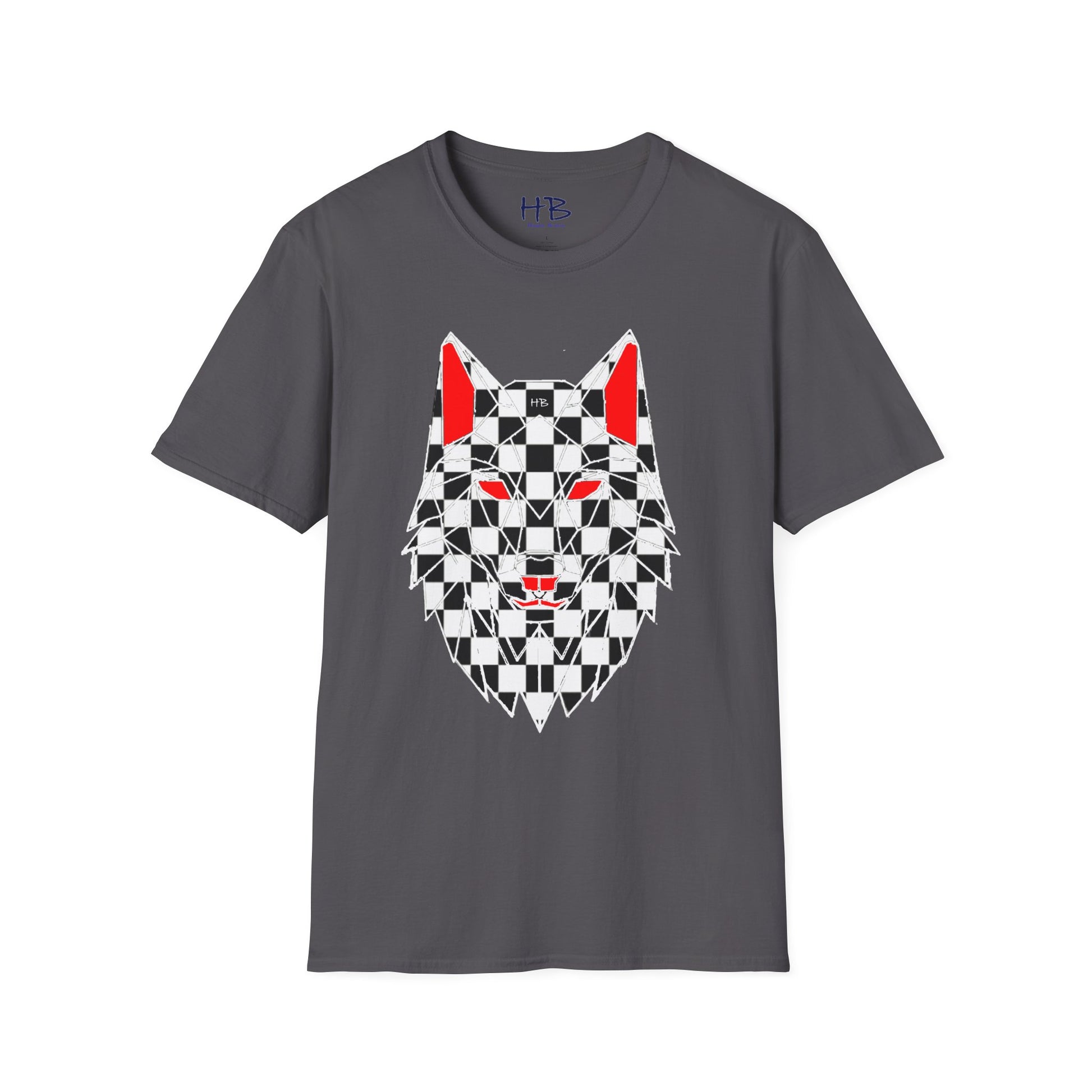 "Unleash Your Inner Alpha: Bold Wolf Face in Checkered Detail"
