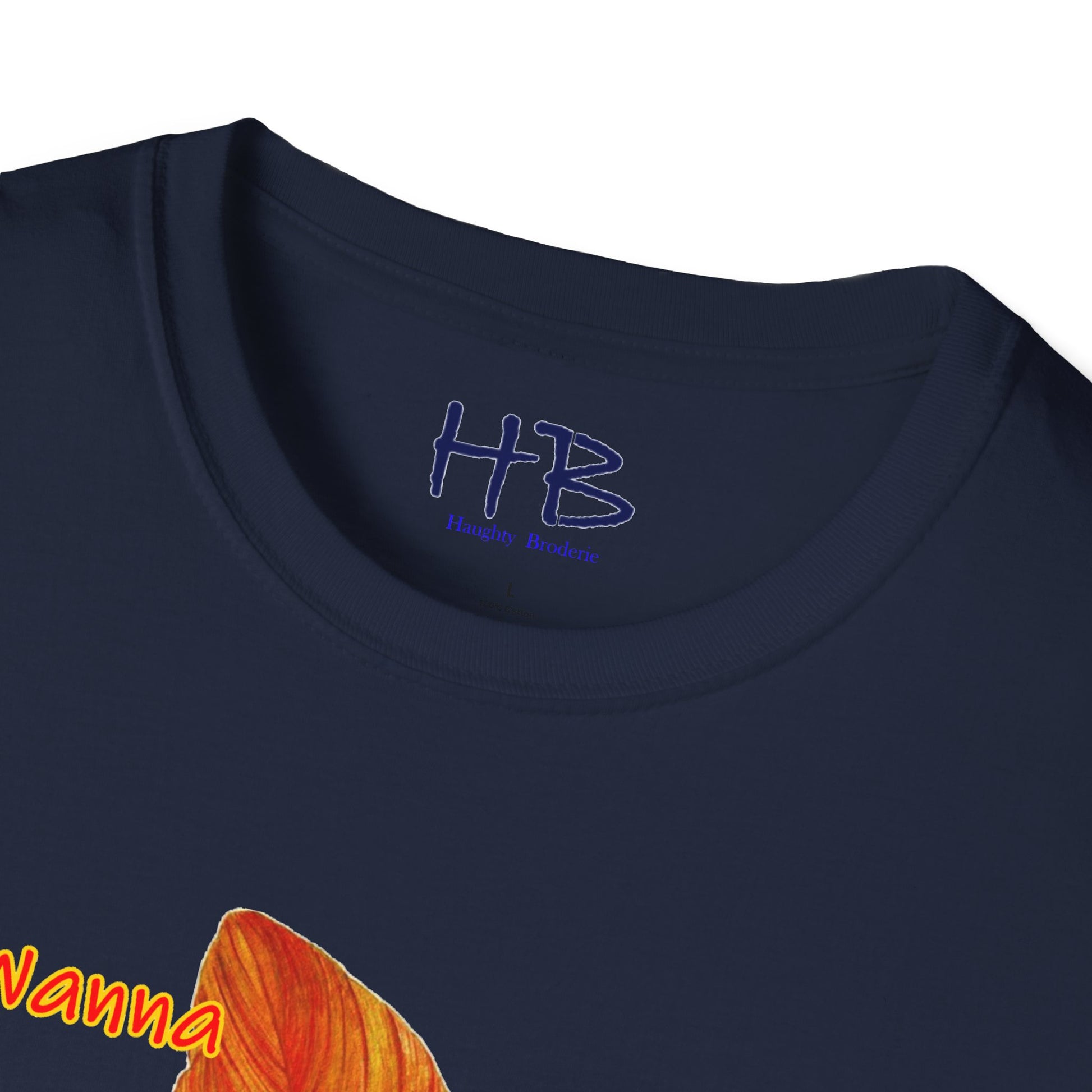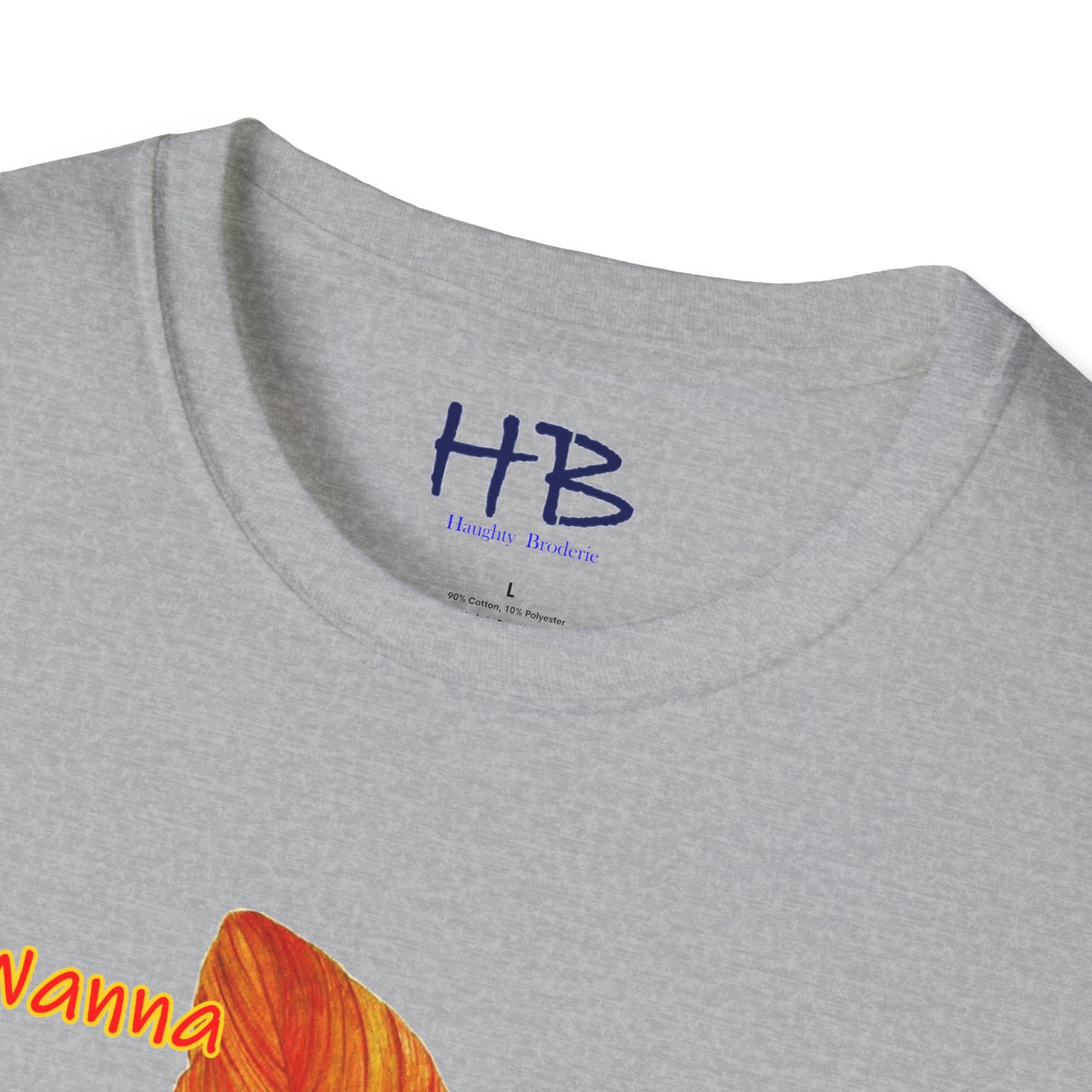 In an era where personal expression is paramount, donning this tee shirt sets you apart from the crowd. The large orange feature dominates the design, representing your inner enthusiasm and vivacity. The message, "I wanna tickle you," adds a touch of whimsy and charm to your appearance, sparking curiosity and smiles in the people you encounter.