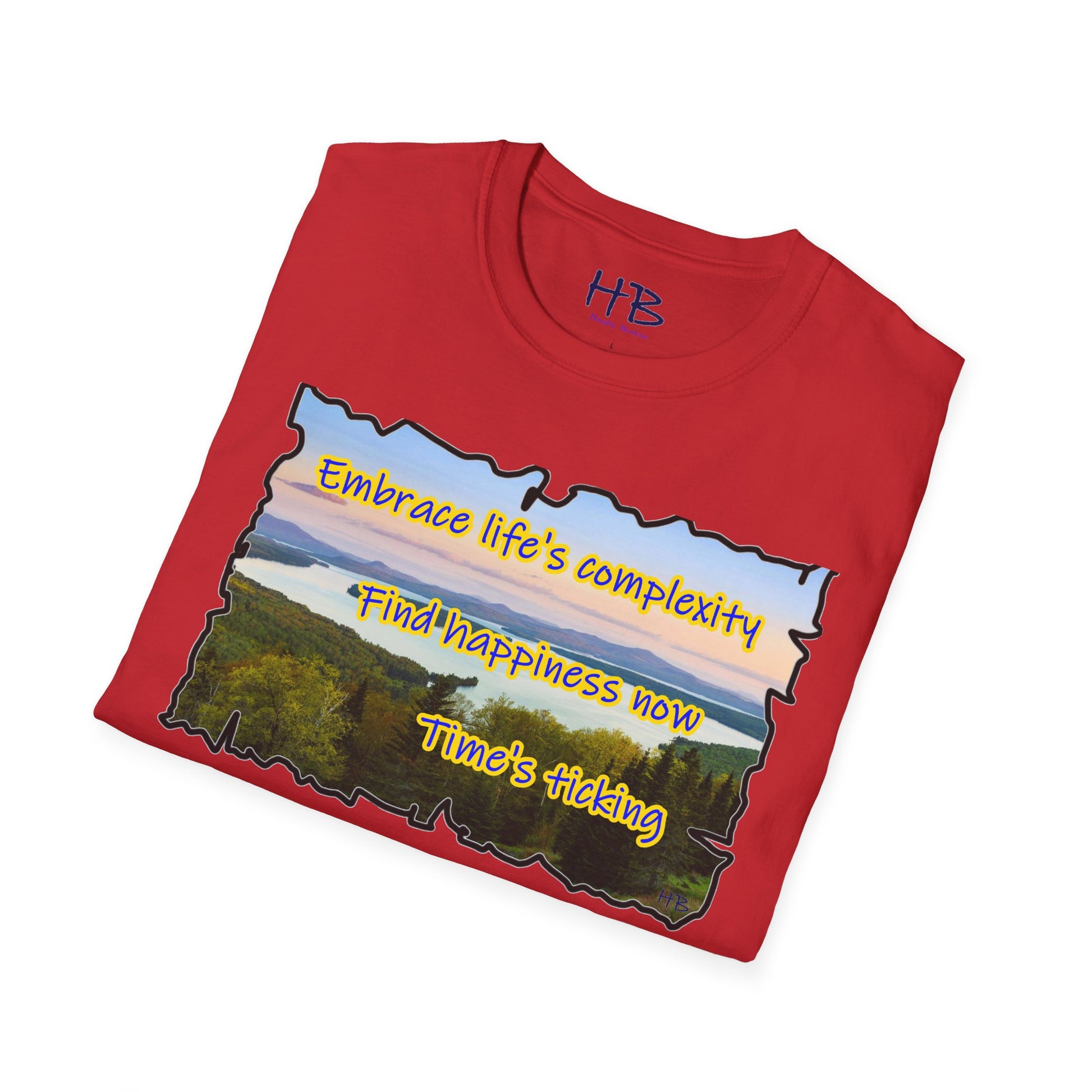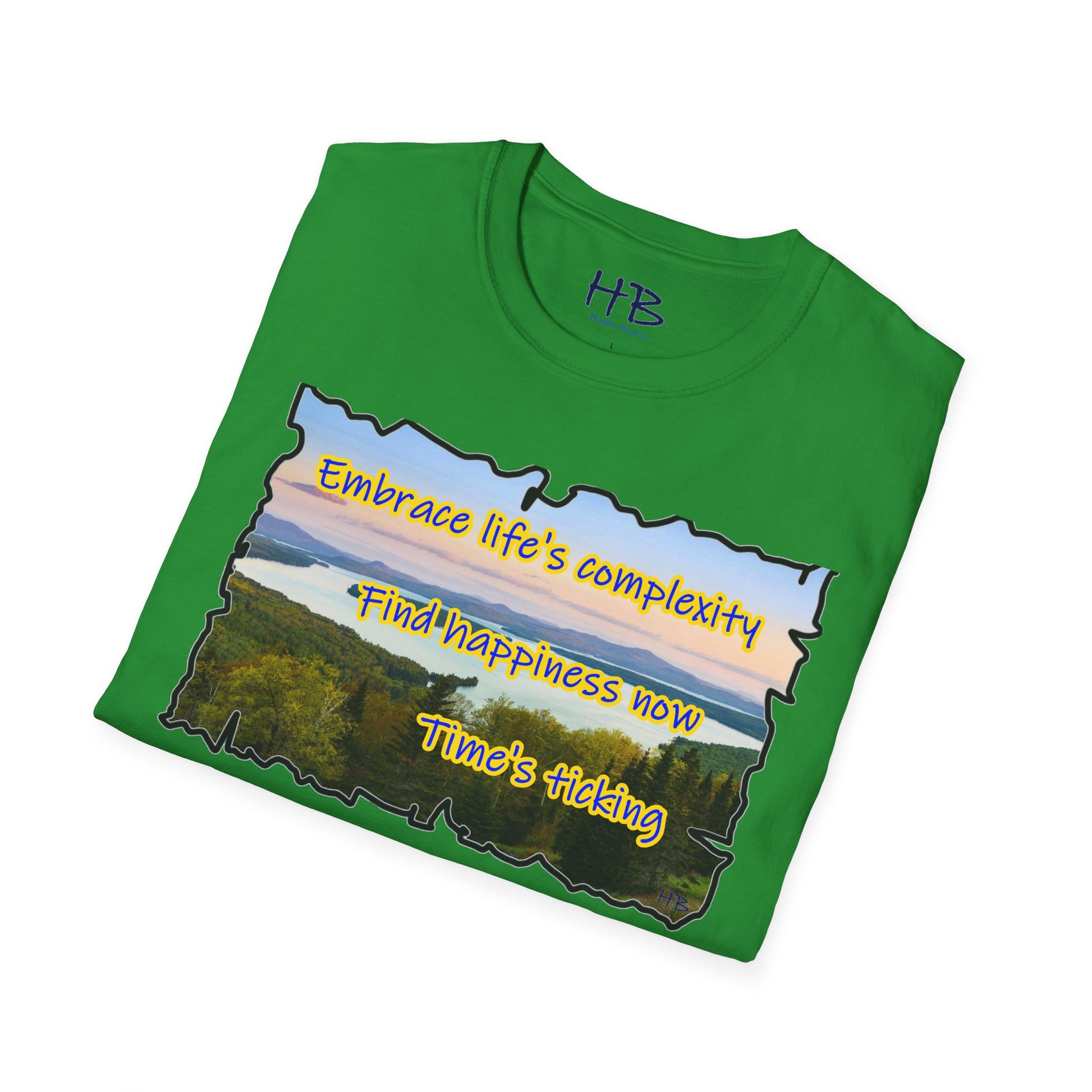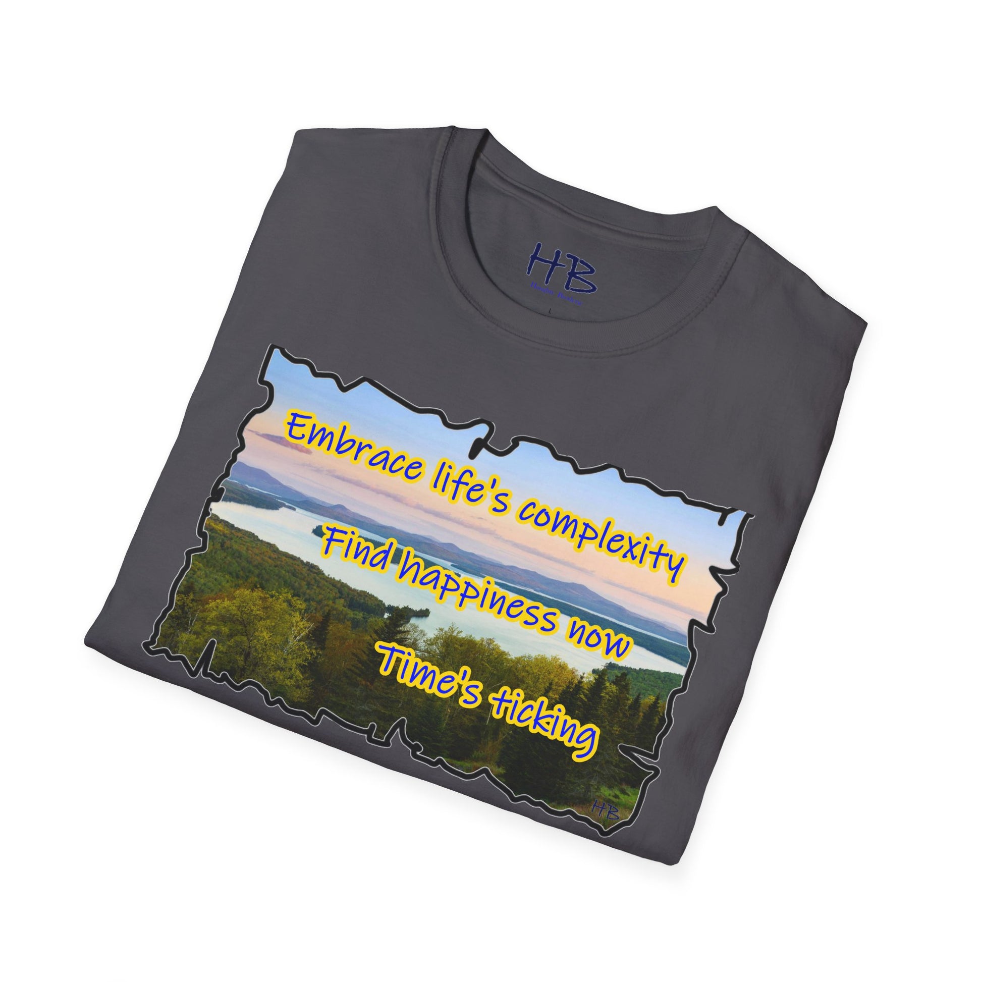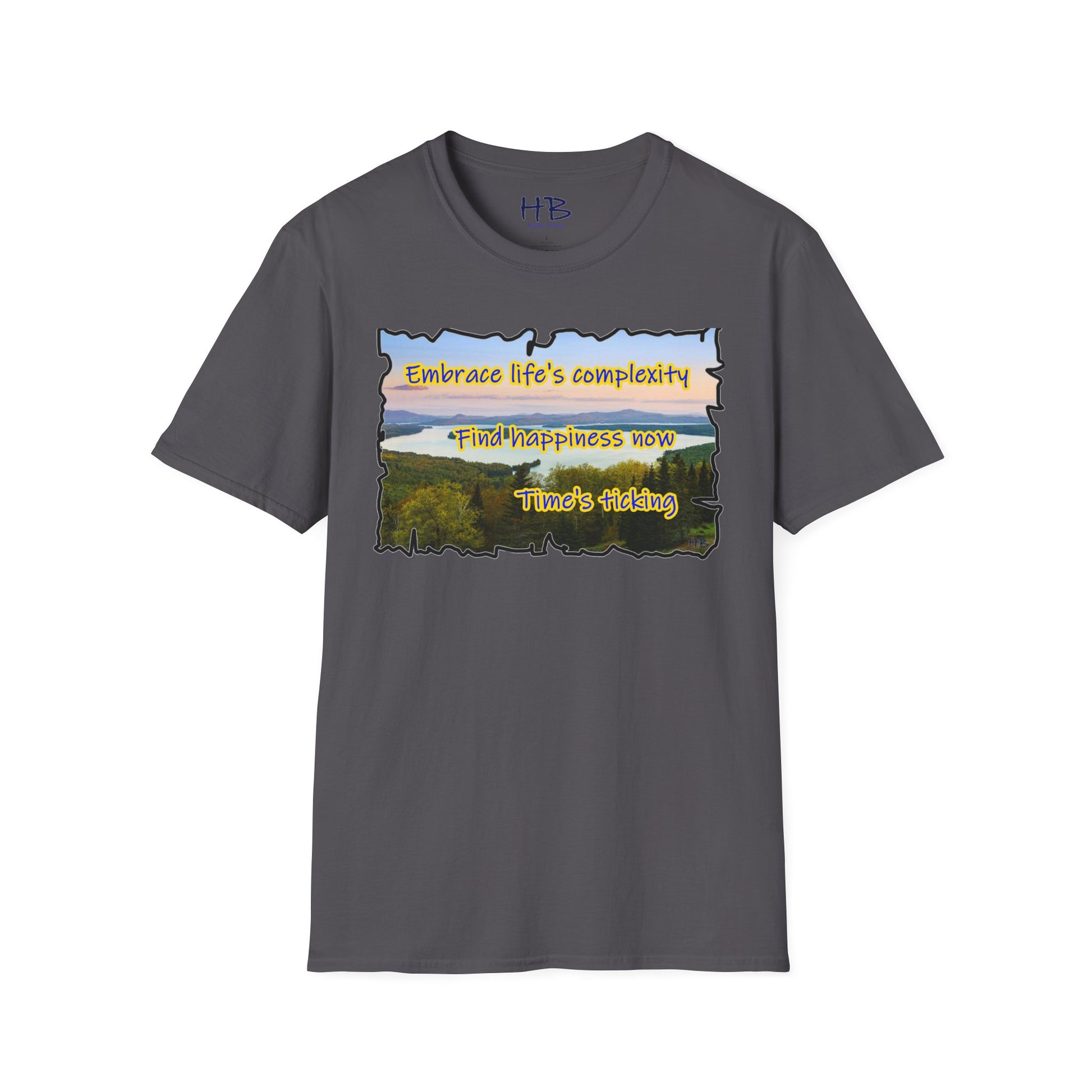 Let your gaze now drift to the carefully scripted words, a timeless mantra echoing through the ages: "Embrace life's complexity, find happiness now, time's ticking." This isn't just a t-shirt; it's a wearable philosophy, a reminder that the beauty of life unfolds in the present moment. It’s a call to embrace the intricacies of existence without waiting for a future that may never come.