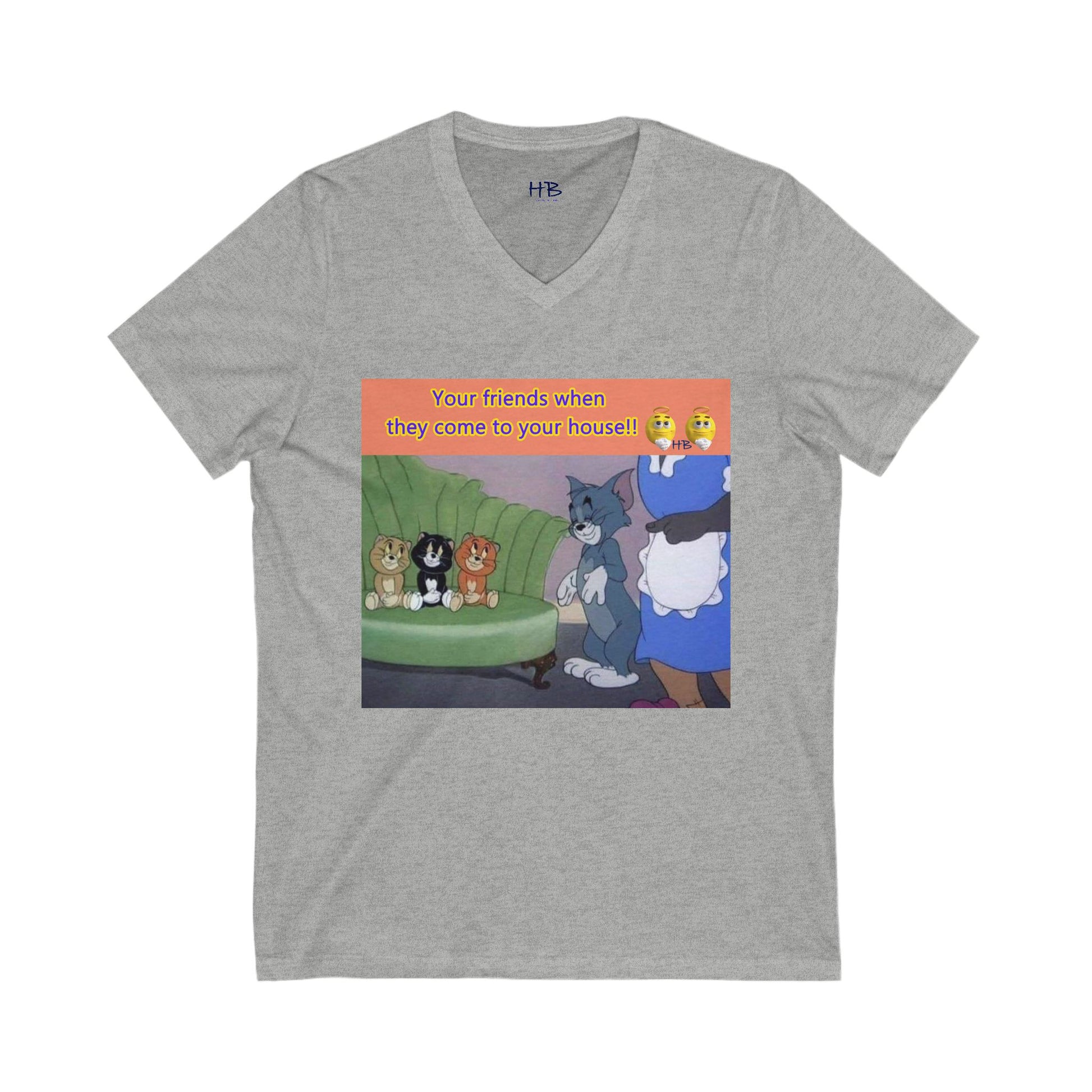 Tom and his innocent looking little friends in front of Mammy (Unisex Jersey Short Sleeve V-neck - Comfortable Everyday Wear)