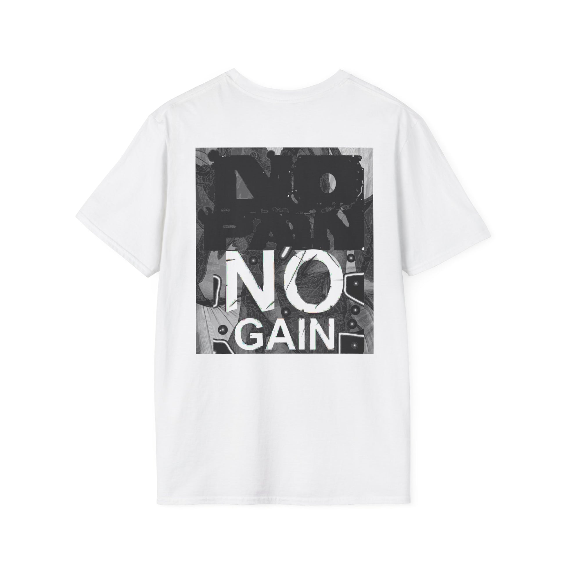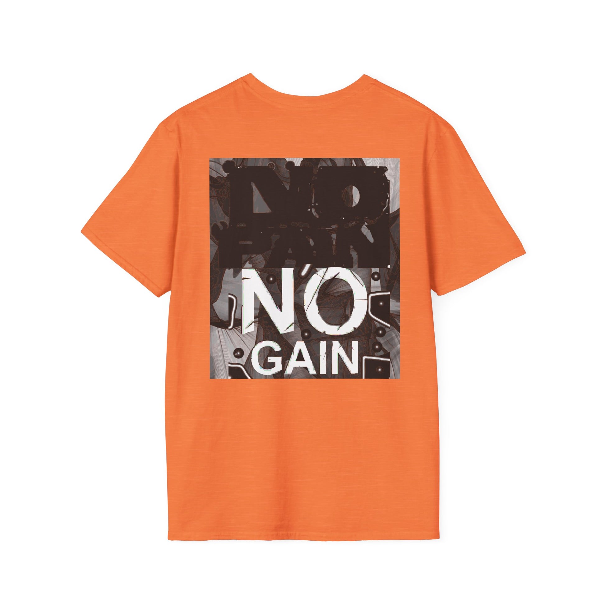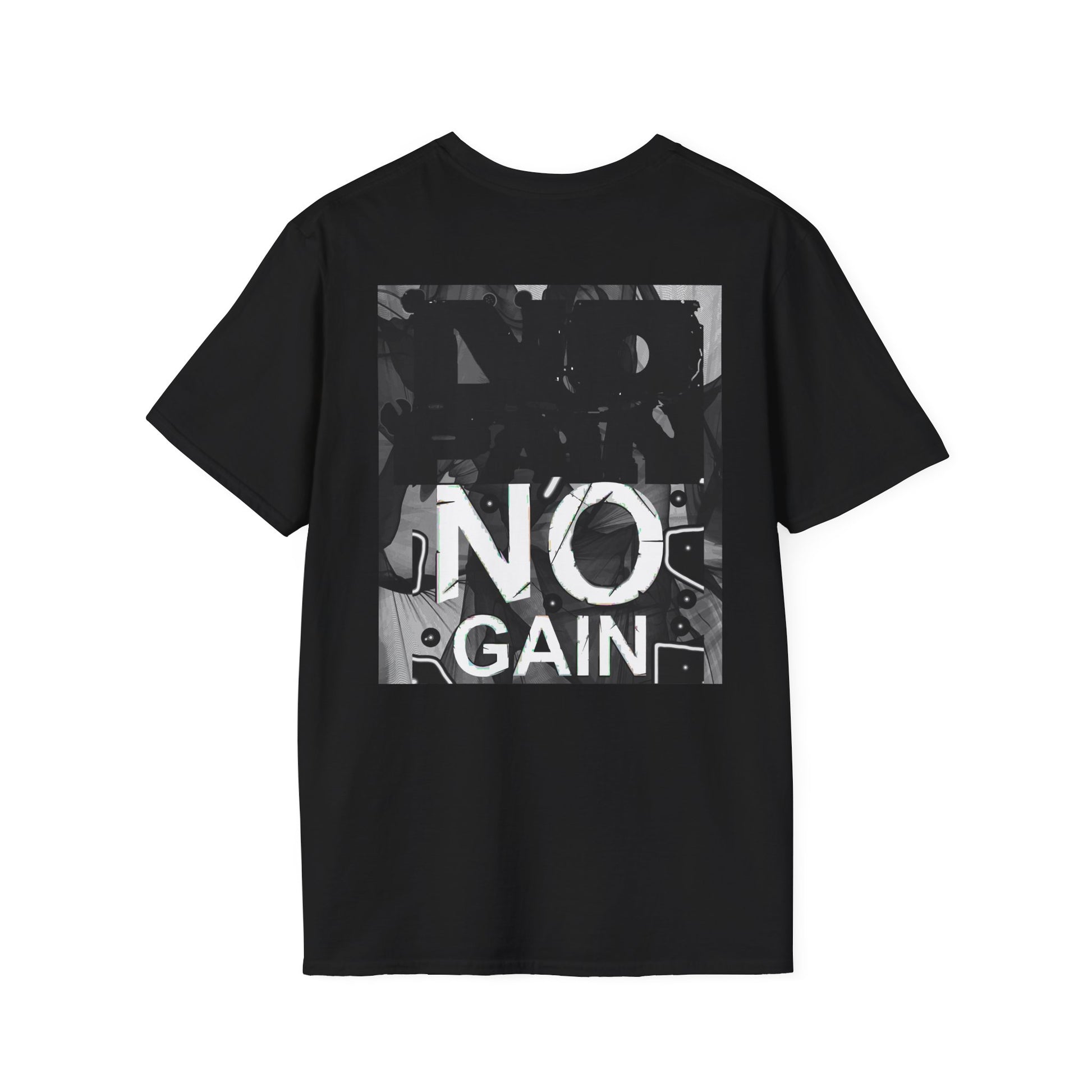 On the back of the tee shirt, the message is loud and clear - "NO PAIN, NO GAIN" is boldly emblazoned in all caps, reminding us that the road to success is not easy, but the rewards are worth the effort.