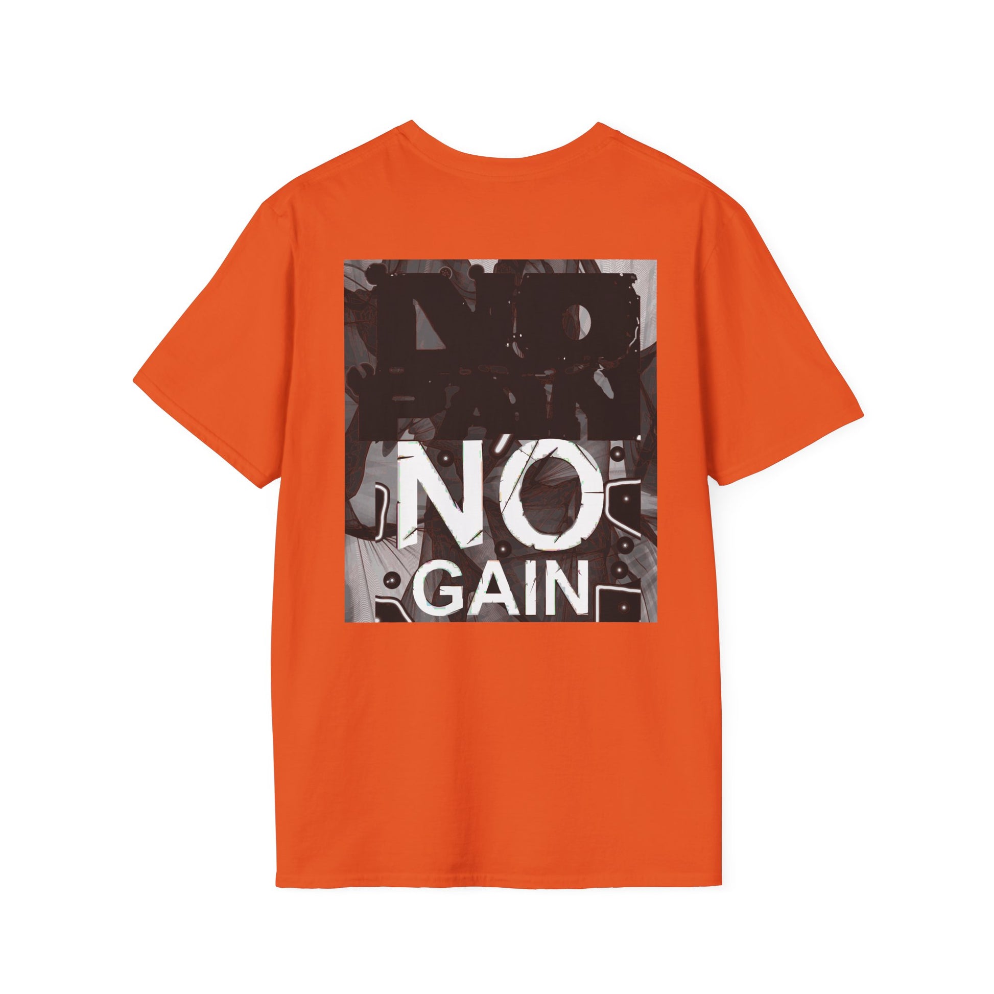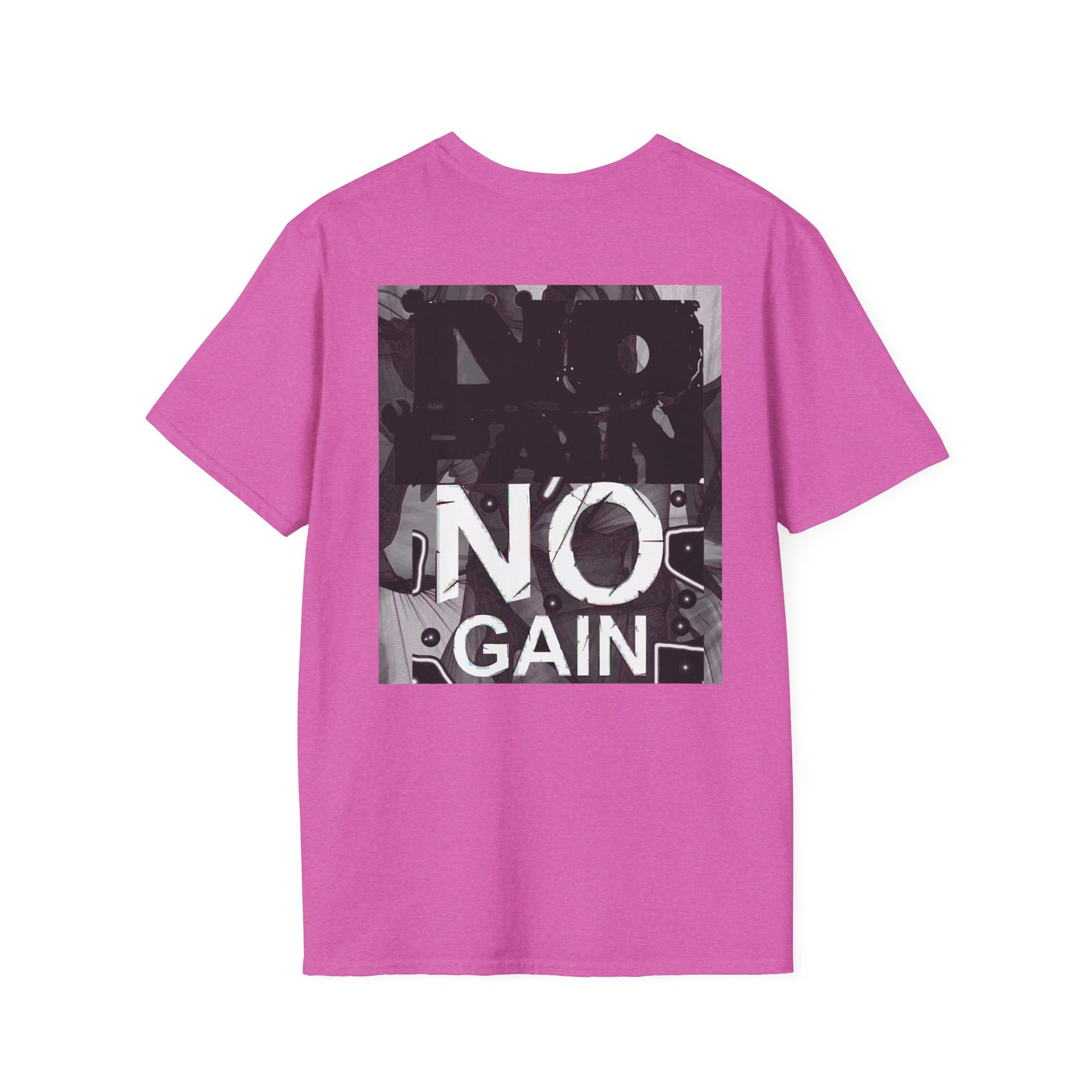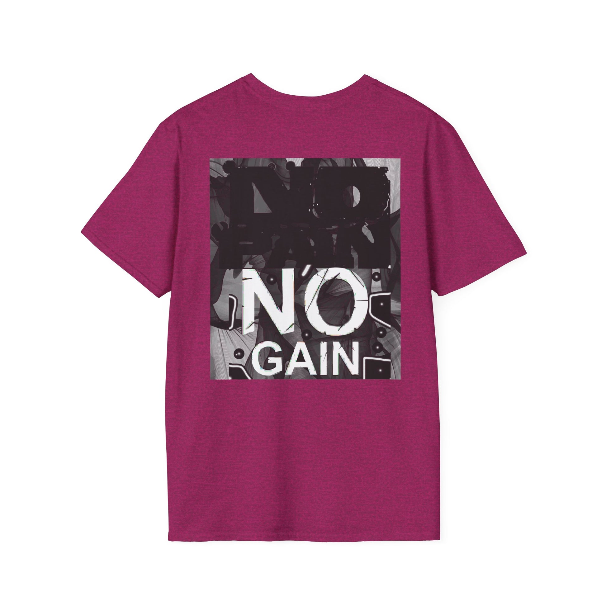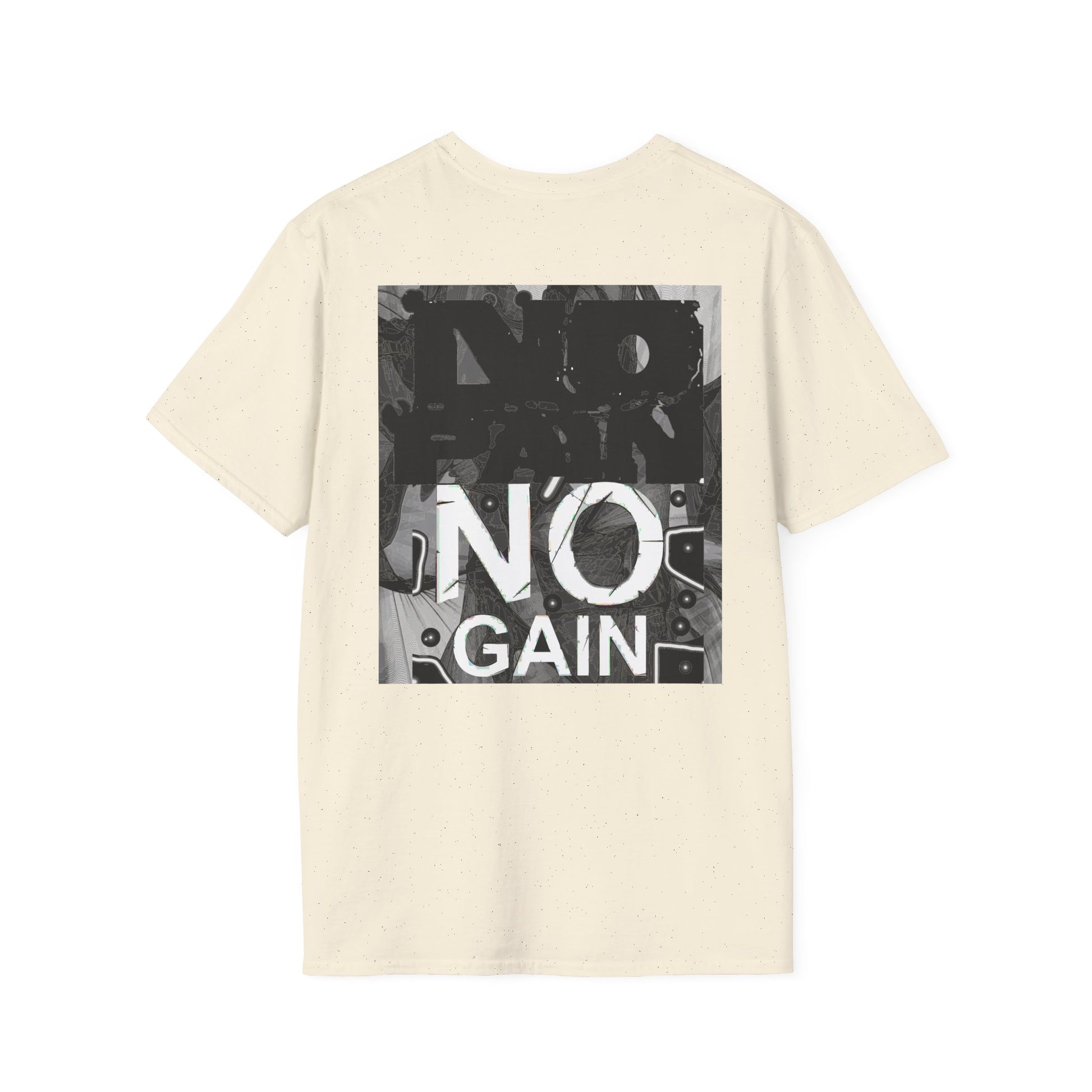 On the back of the tee shirt, the message is loud and clear - "NO PAIN, NO GAIN" is boldly emblazoned in all caps, reminding us that the road to success is not easy, but the rewards are worth the effort.