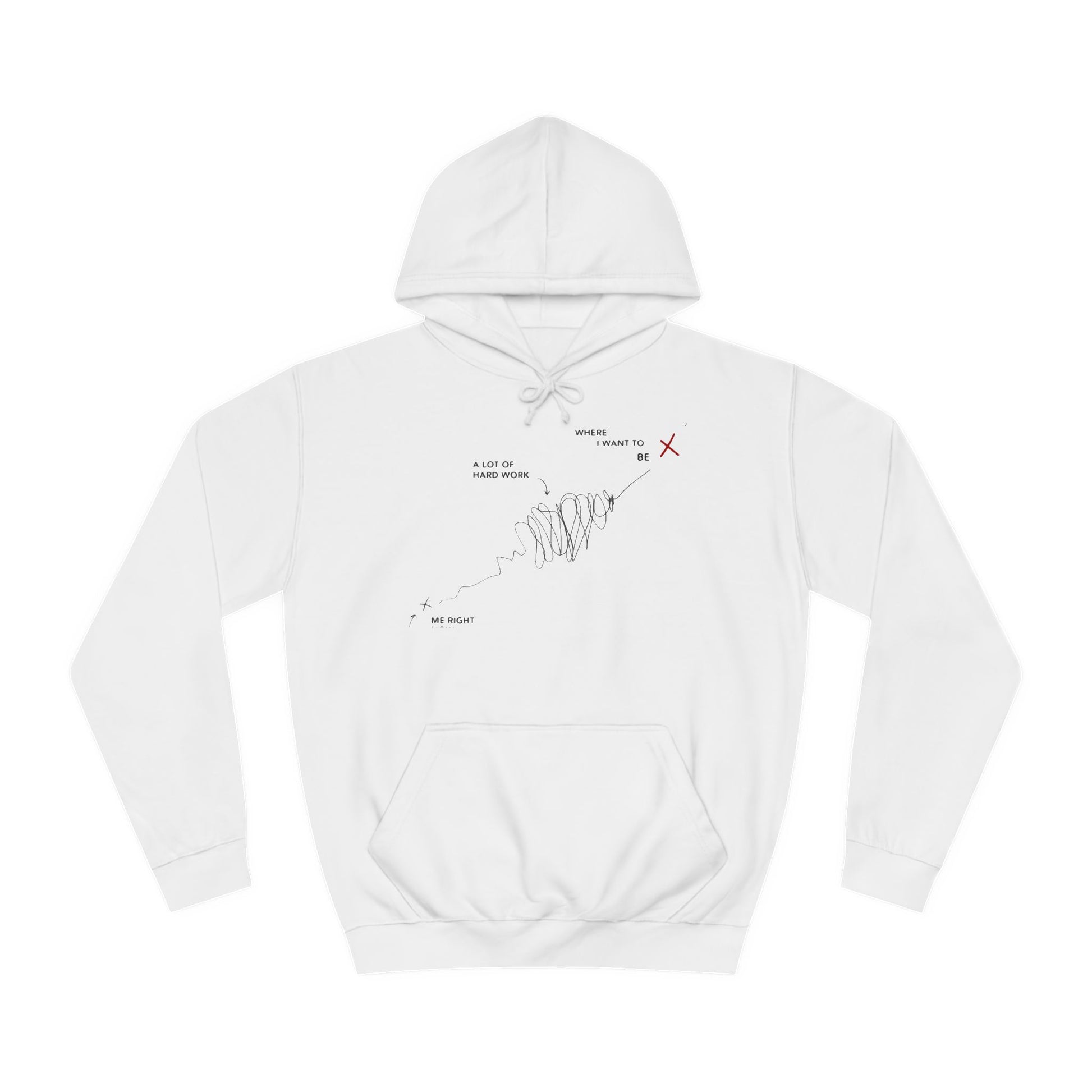 The tee shirt design begins with a scribble line that represents where you are currently at in your journey. This line is followed by a chaotic scribble line that symbolizes the hard work and effort required to reach your desired destination. The straight line that comes next represents the path to success, leading to a final red X that marks where you want to be.