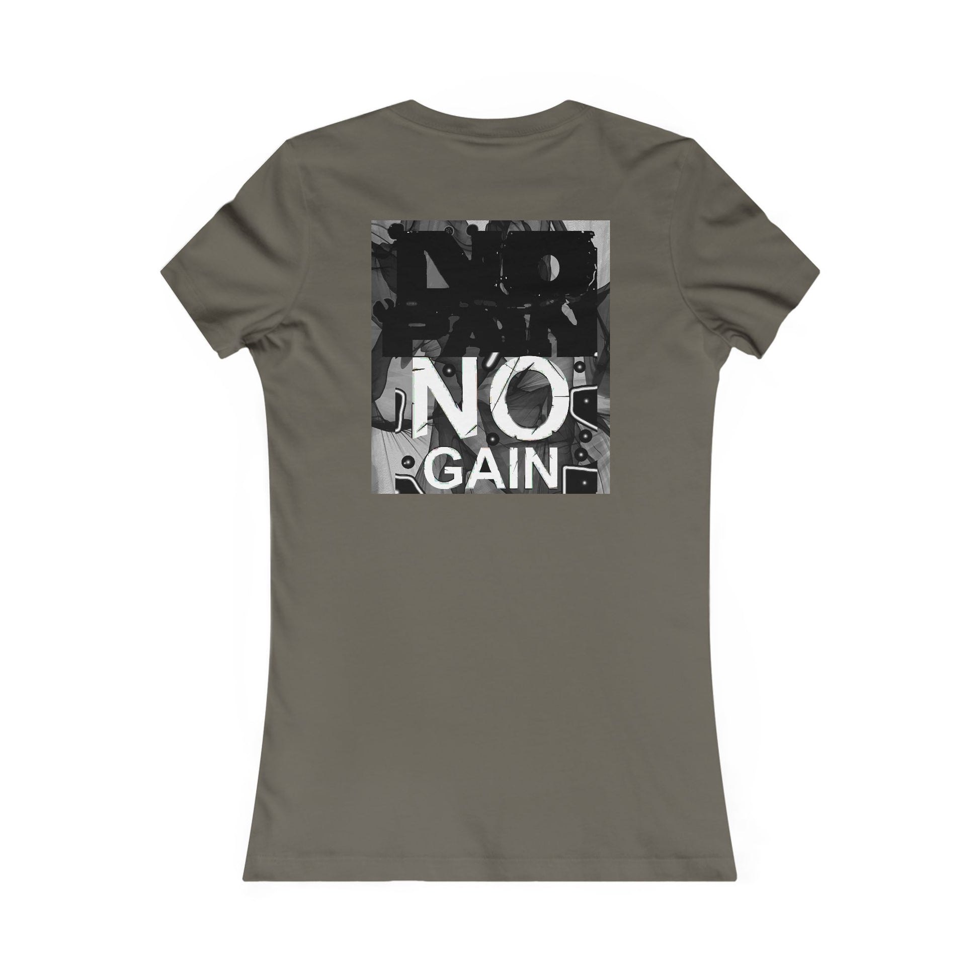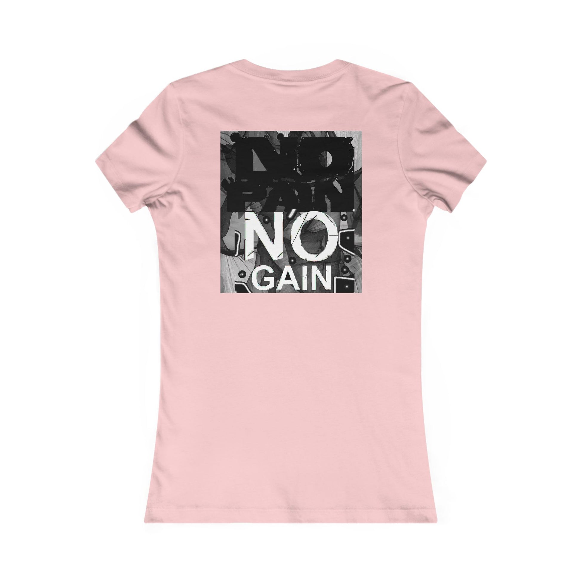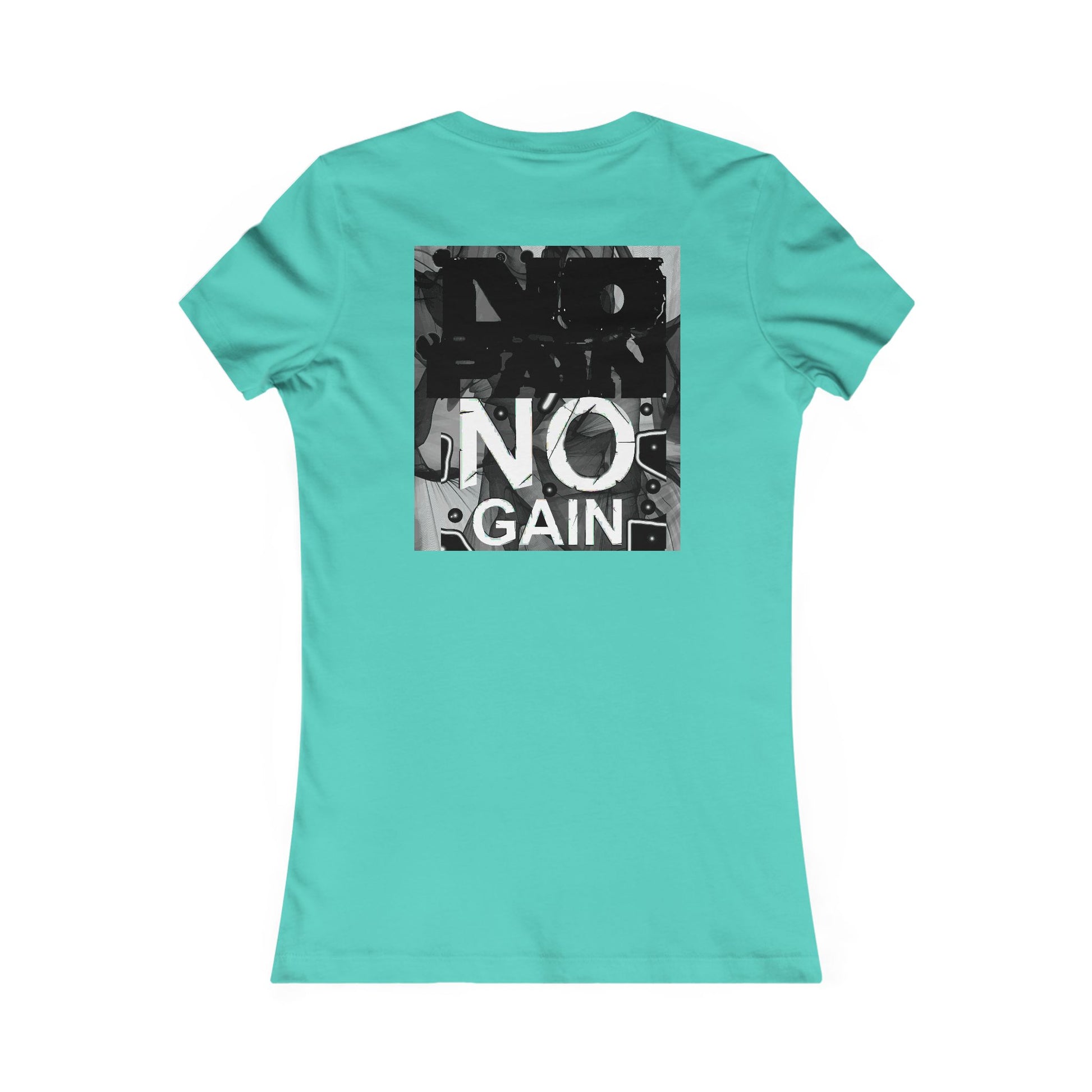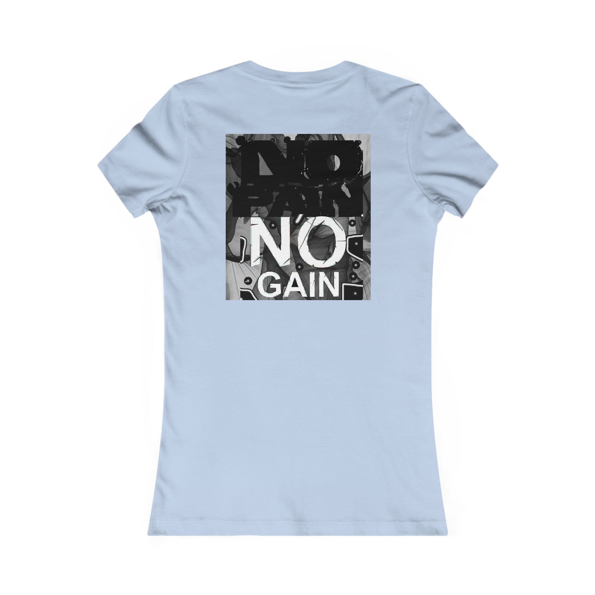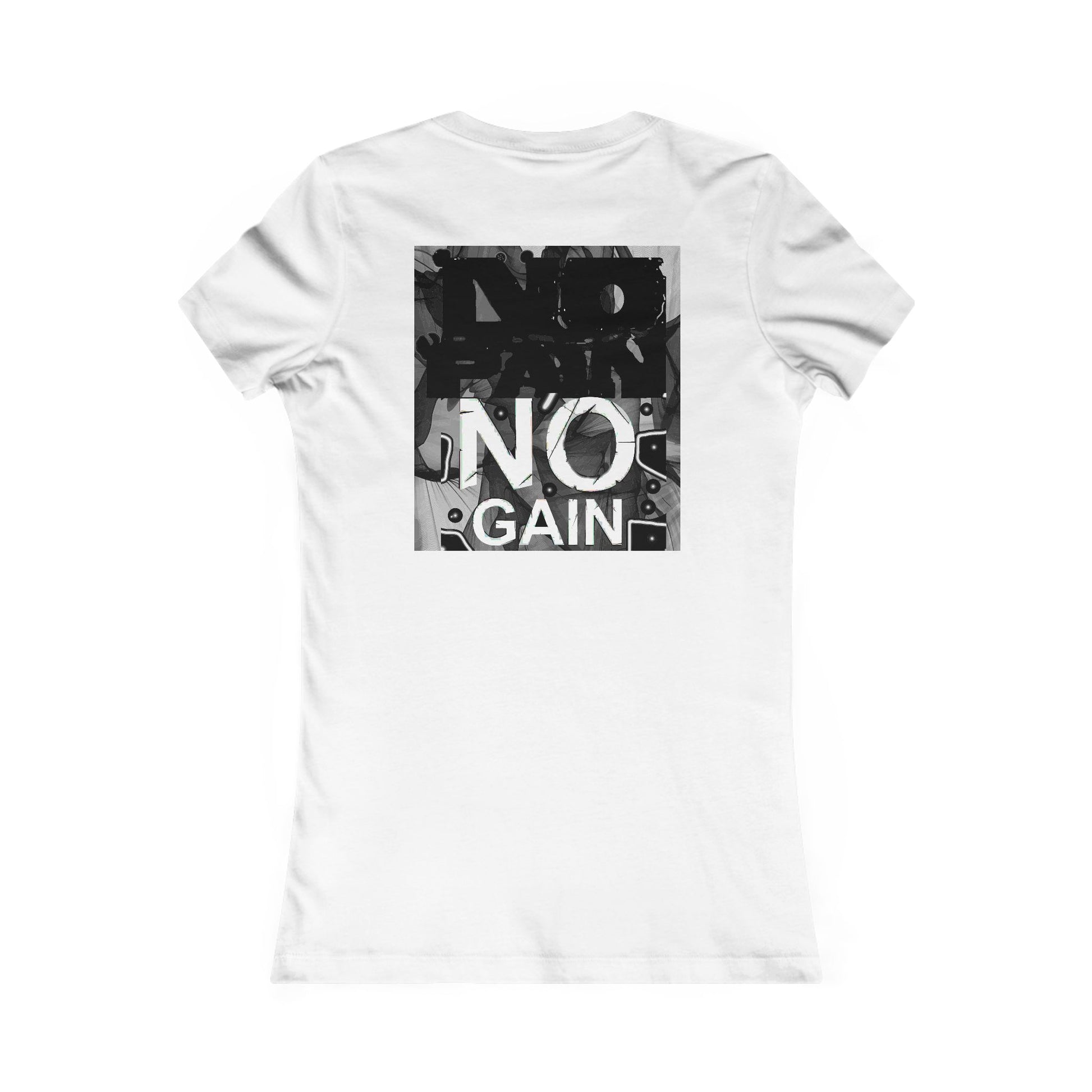 On the back of the tee shirt, the message is loud and clear - "NO PAIN, NO GAIN" is boldly emblazoned in all caps, reminding us that the road to success is not easy, but the rewards are worth the effort.