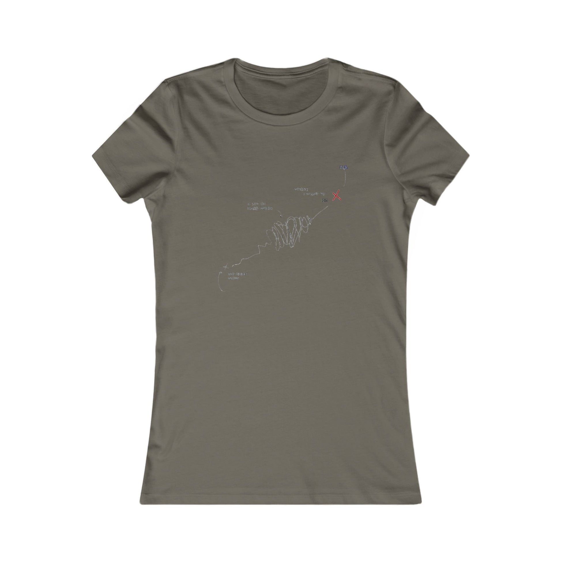 The tee shirt design begins with a scribble line that represents where you are currently at in your journey. This line is followed by a chaotic scribble line that symbolizes the hard work and effort required to reach your desired destination. The straight line that comes next represents the path to success, leading to a final red X that marks where you want to be.