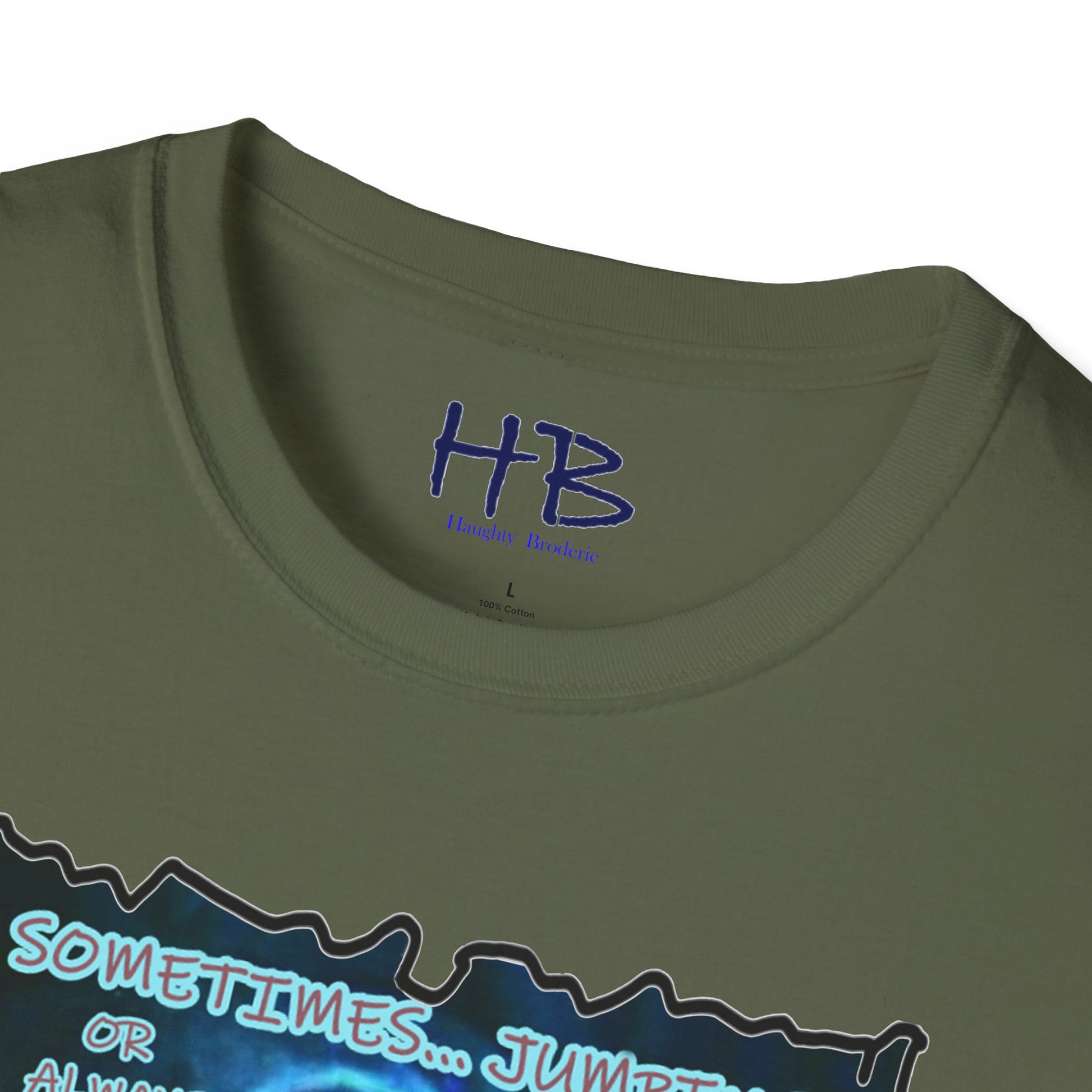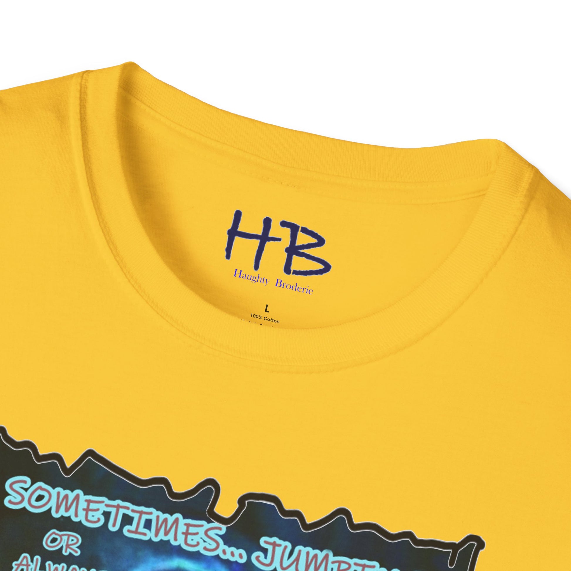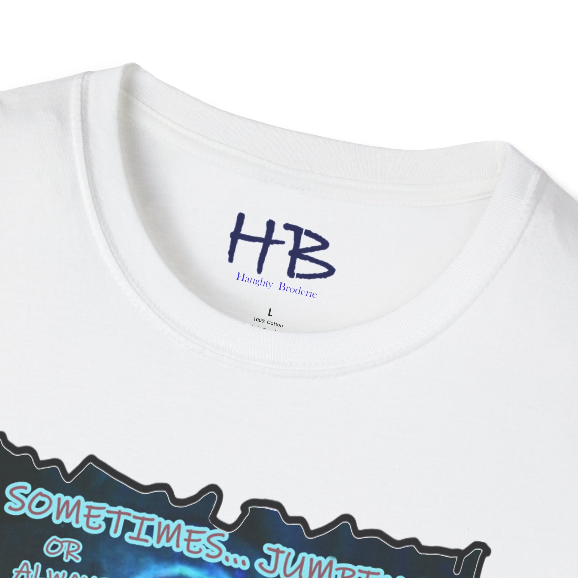 Introducing our extraordinary apparel that captures the essence of life's unpredictable twists and turns. Our mesmerizing creation showcases a captivating scene unfolding in the vast expanse of the sky—an awe-inspiring vortex whirlpool, swirling with a harmonious blend of tranquil blues and pristine whites. Adorned with a profound message, it reads, "Sometimes or Always... Jumping in the Vortex & counting on the Universe is the best thing to do."