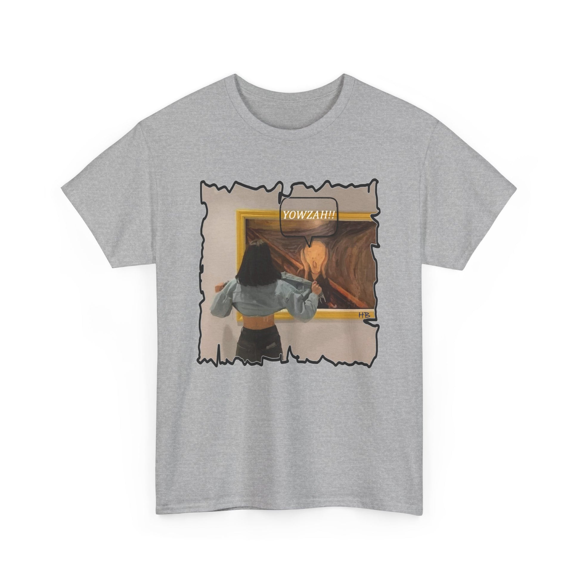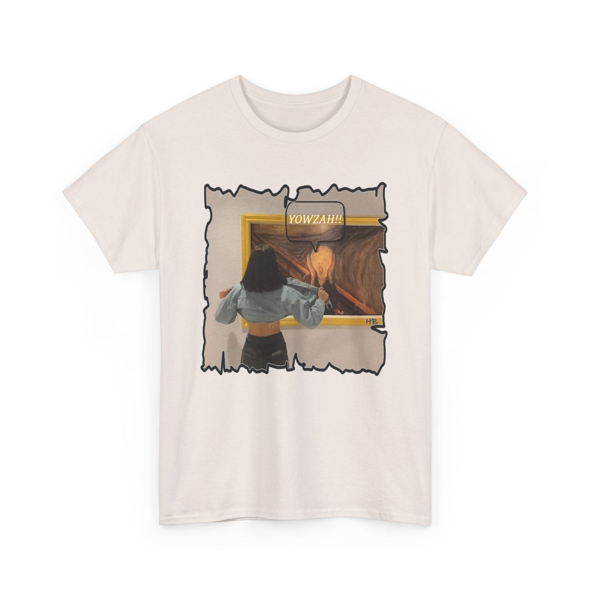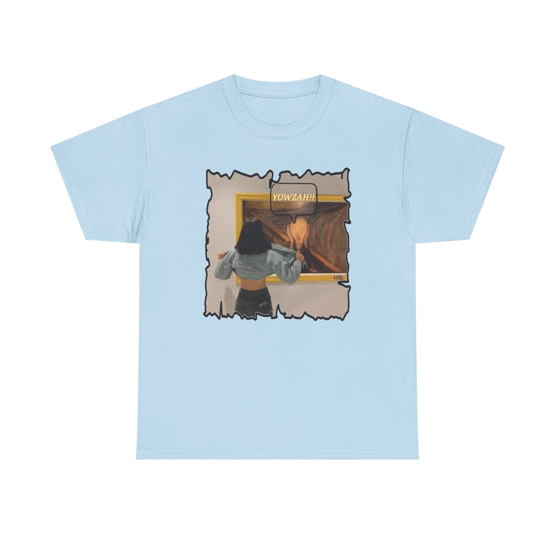 Introducing our exclusive tee shirt, featuring a provocative image that channels the intense reaction inspired by Edvard Munch's iconic painting, The Scream. The design showcases a woman with her back to us, pulling up her shirt, revealing the beautifully round shapes that many men find irresistible.