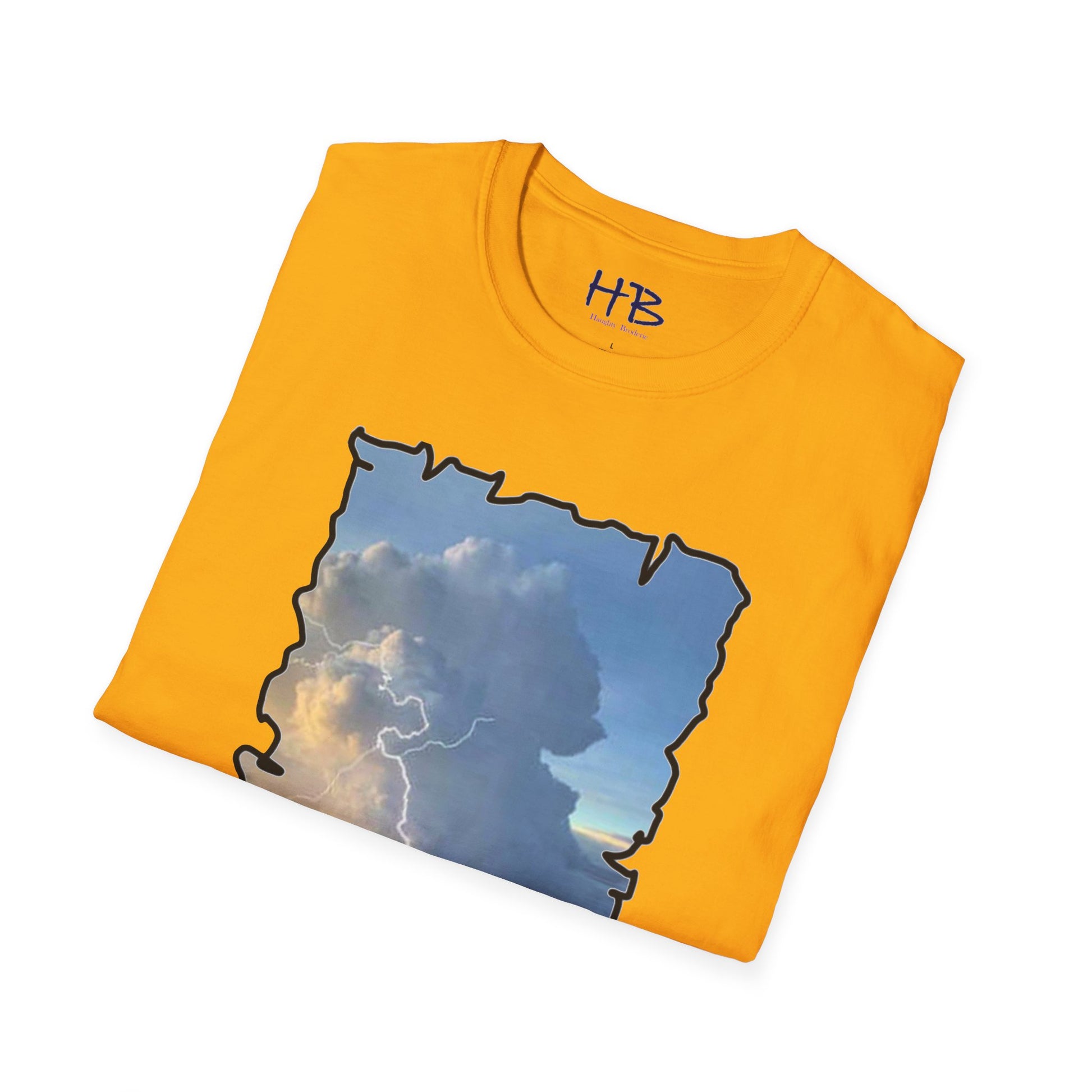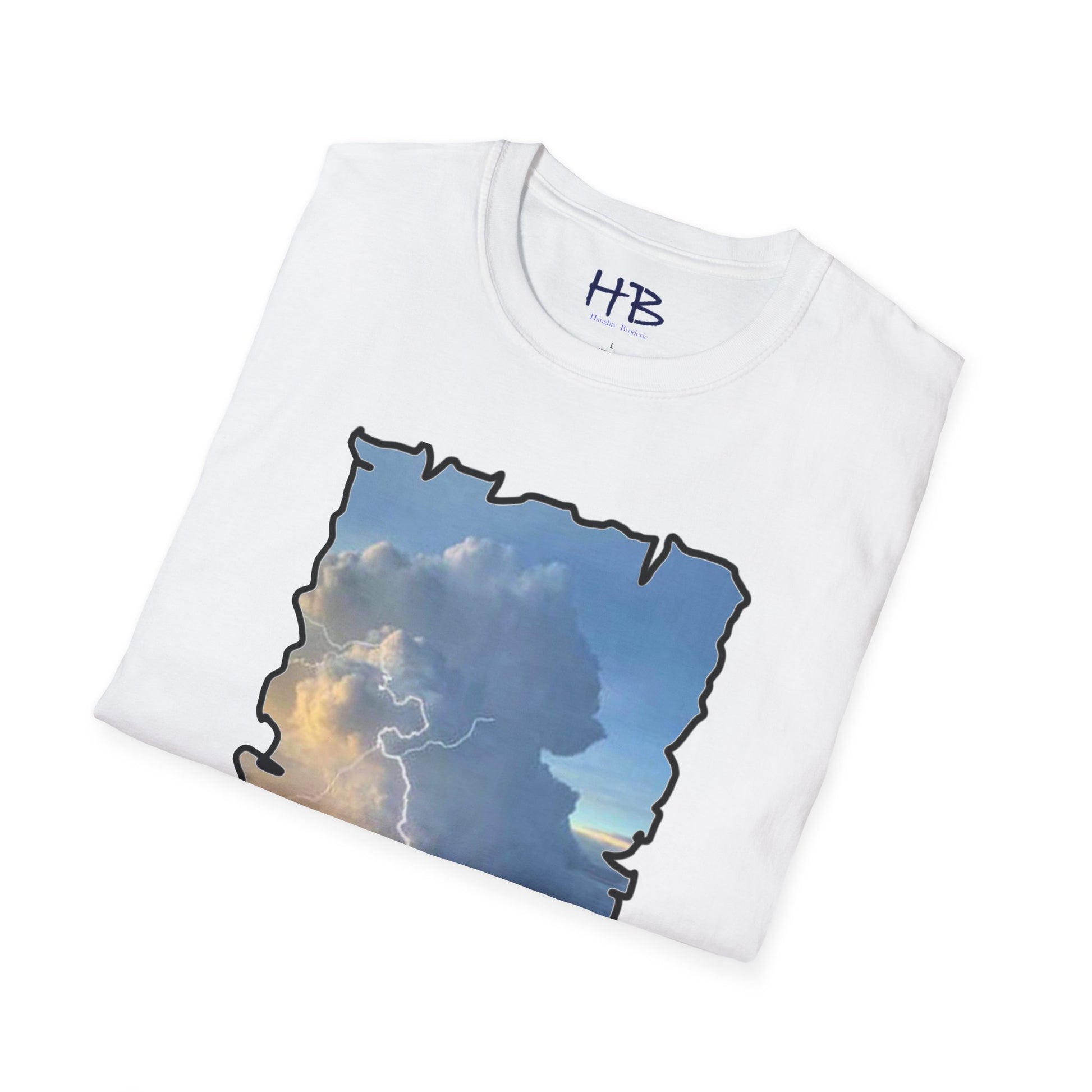 Introducing our latest creation, a masterpiece of artistic expression and elemental awe! Behold this extraordinary tee shirt adorned with an image that captures the mesmerizing spectacle of two majestic clouds colliding, giving birth to the ethereal dance of lightning bolts!