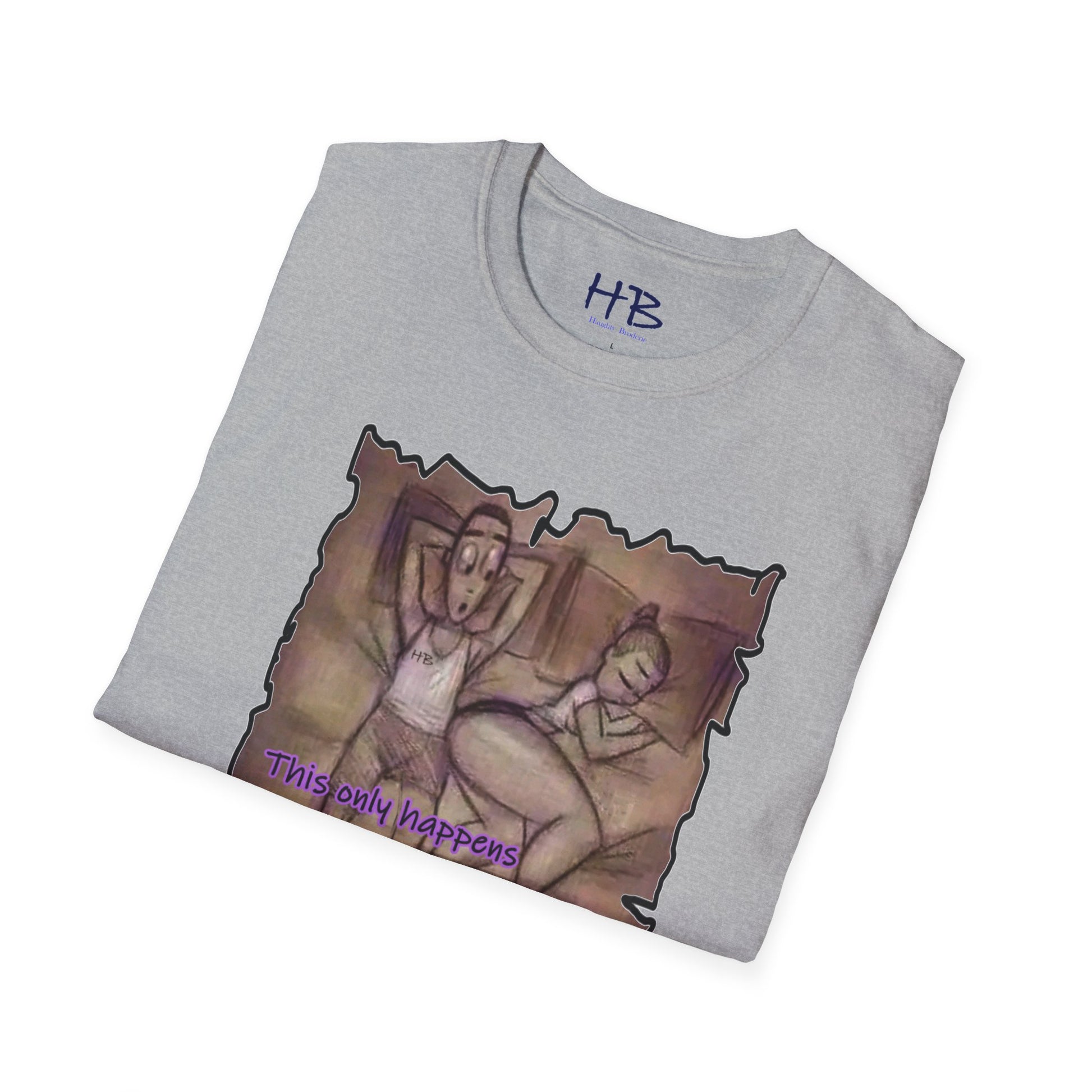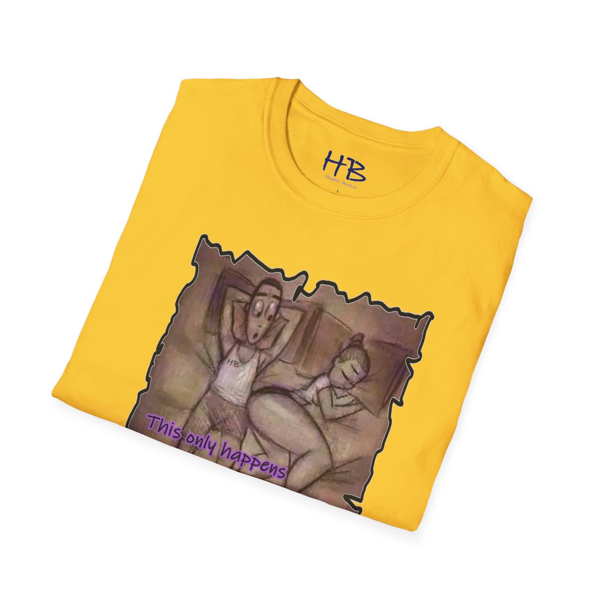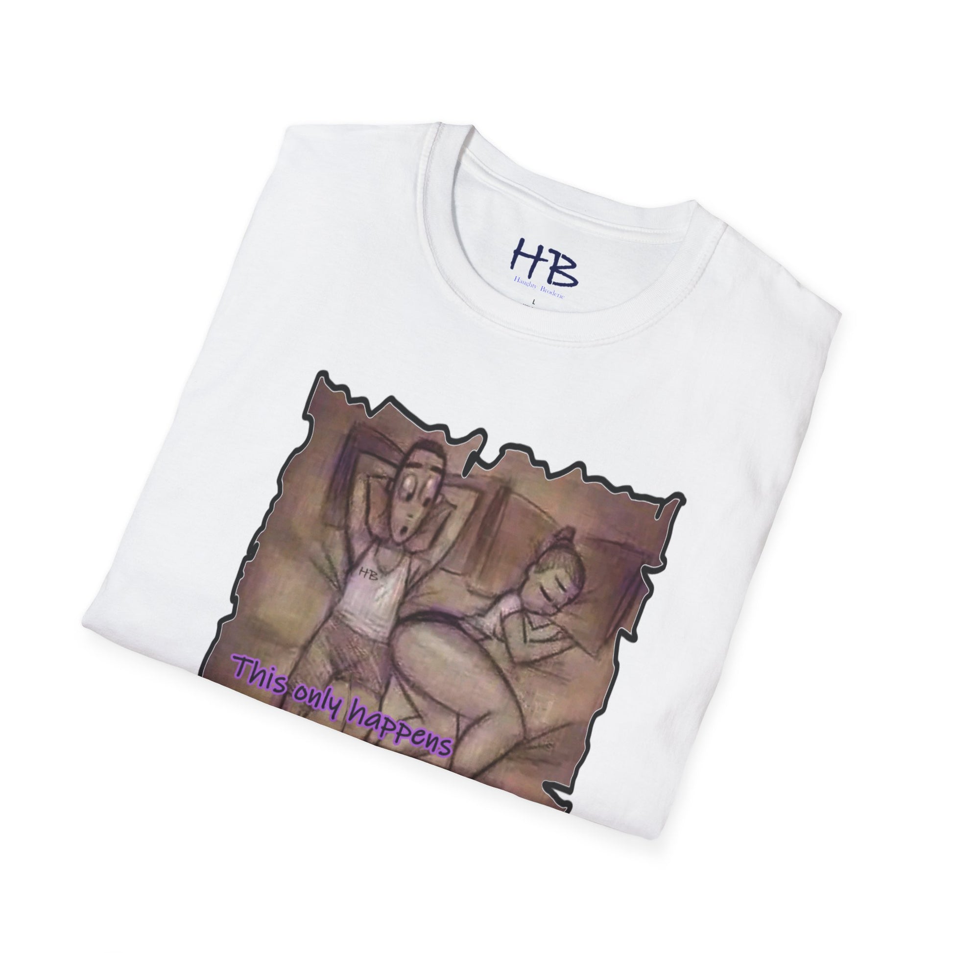 The image is embellished with the words, "This only happens when she is VERY MAD at you!!" – a cheeky revelation of the playful dynamics between partners. This unique tee shirt encapsulates a moment of mischief and connection, inviting wearers to embrace the unpredictable dance of emotions within relationships.