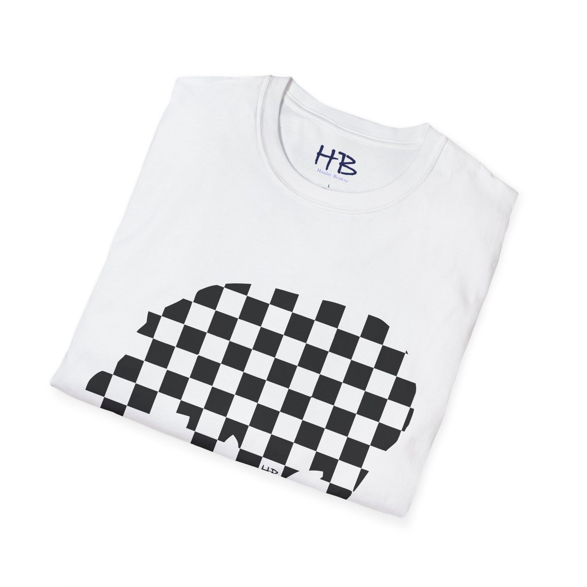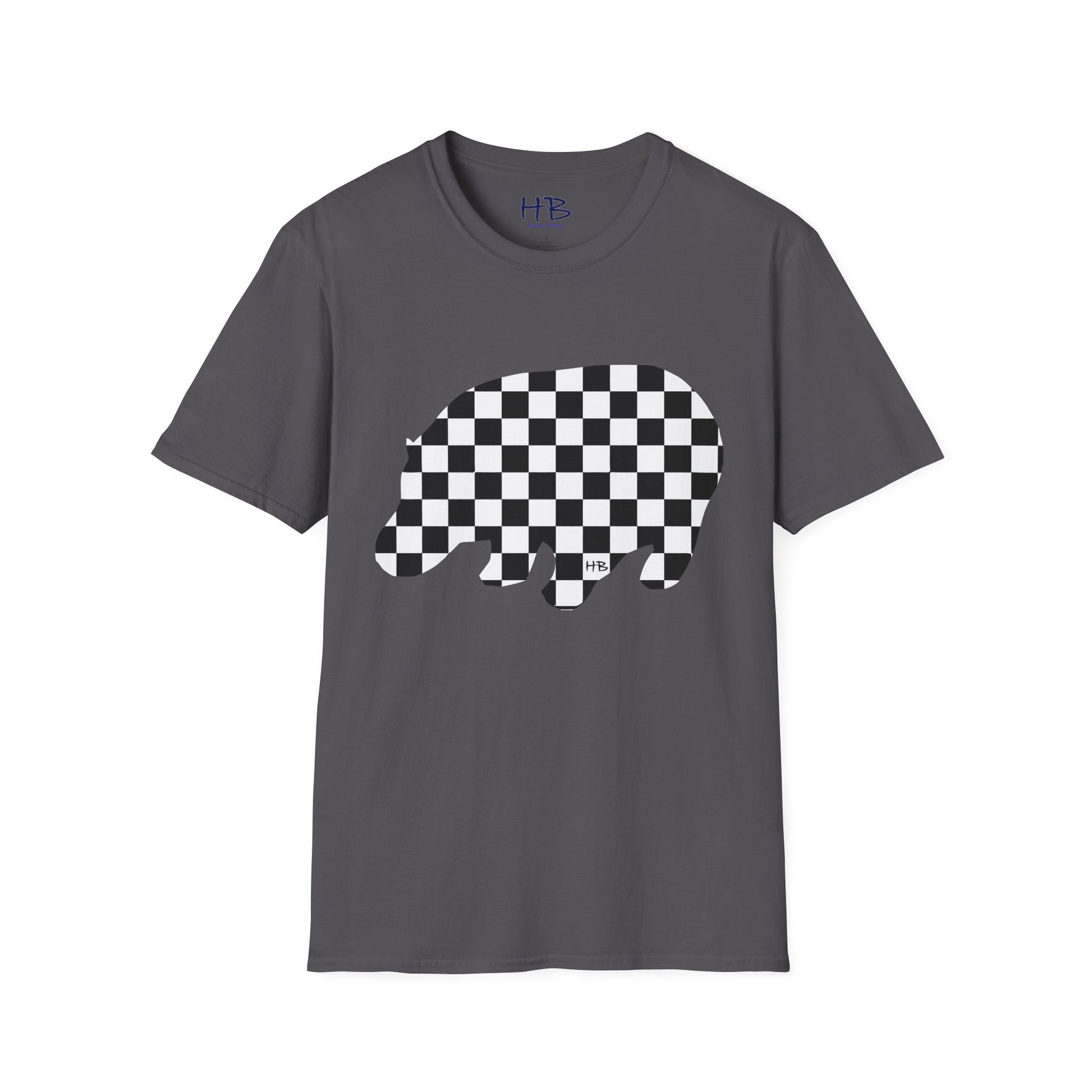 Introducing our latest creation, the epitome of style and elegance - the striking tee shirt featuring a captivating shaded drawing of a bear in a mesmerizing black and white checkered module, adorning its entire body. This tee shirt is a masterpiece that seamlessly blends artistry and fashion, making it a must-have for anyone who appreciates timeless beauty.