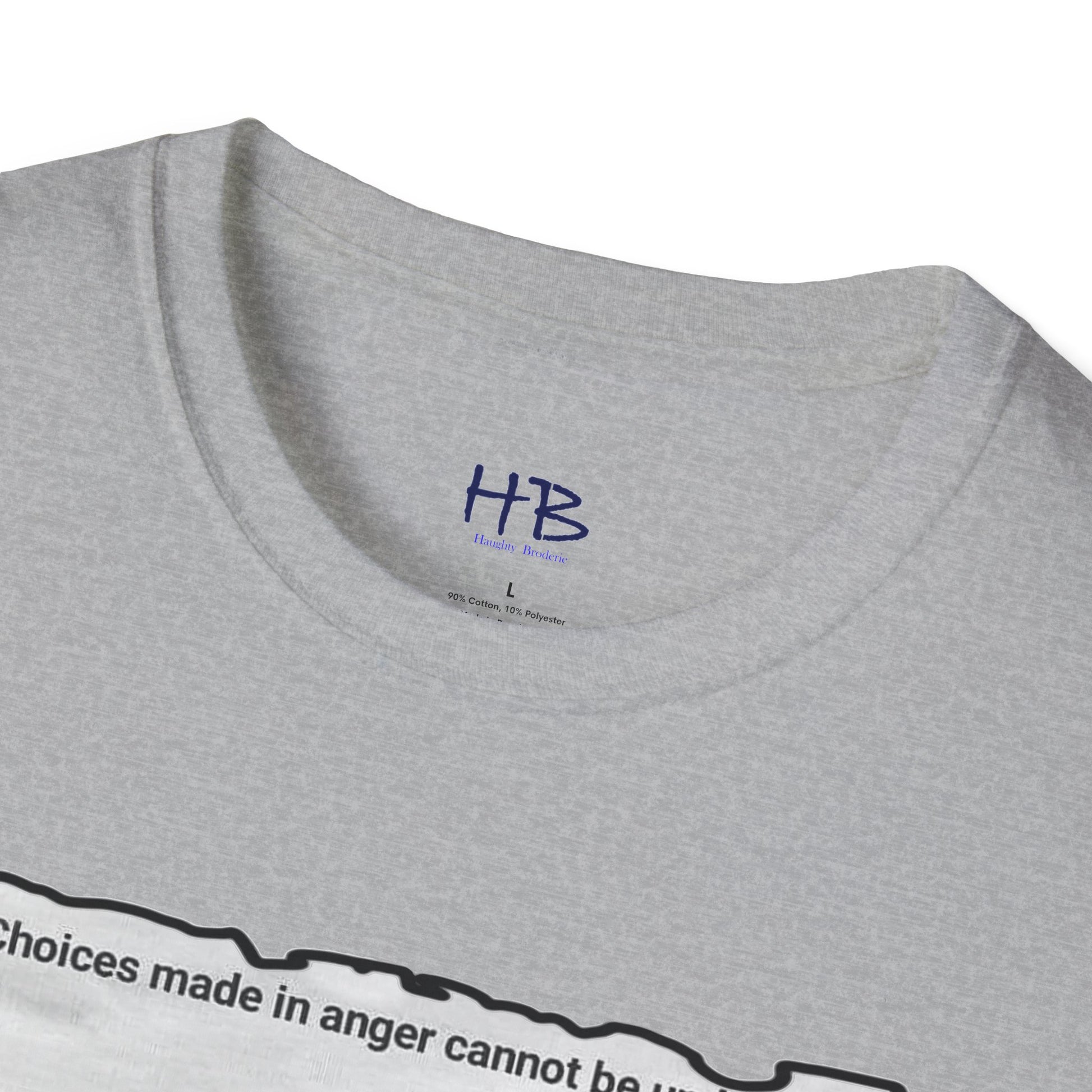 These titles aim to capture the essence of the tee shirt design, which serves as a reminder to carefully consider the consequences of impulsive decisions. They emphasize the importance of reflection and mindfulness in decision-making processes.