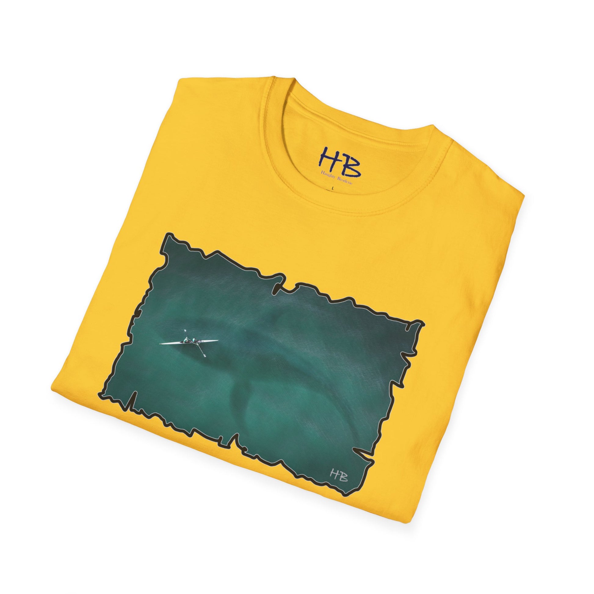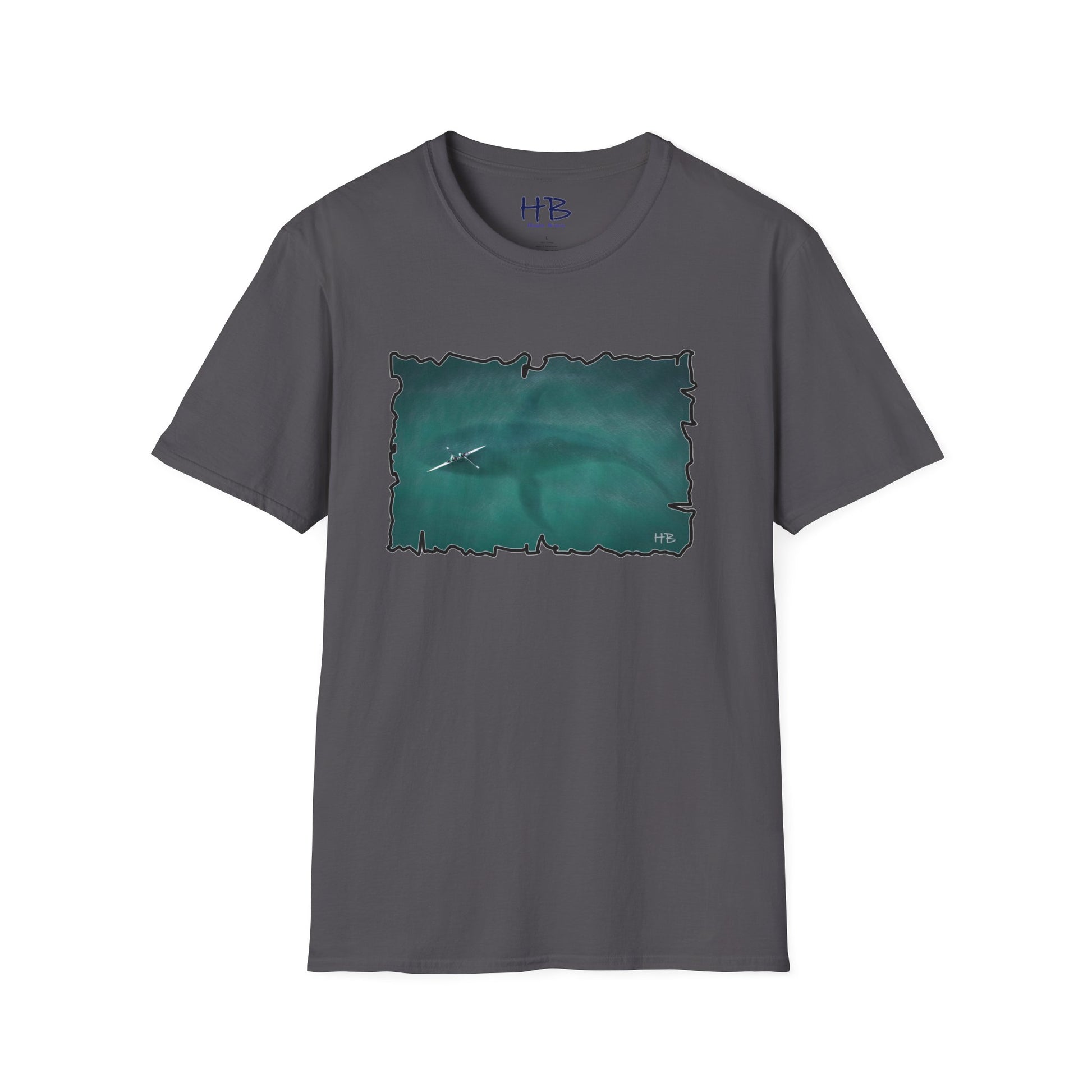 Introducing our awe-inspiring tee shirt that brings together the grandeur of the ocean and the humble presence of humans, reminding us of our place in the vastness of nature. Picture this: Below the tranquil surface of the water, the shadow of a majestic whale looms, symbolizing the immense beauty and power of these incredible creatures.