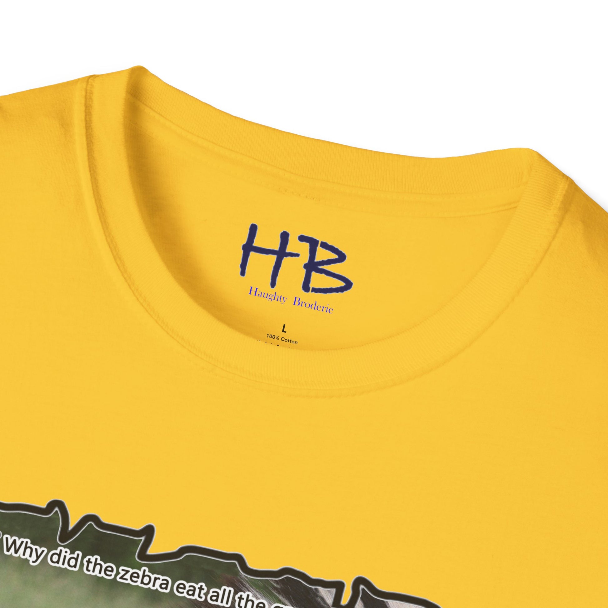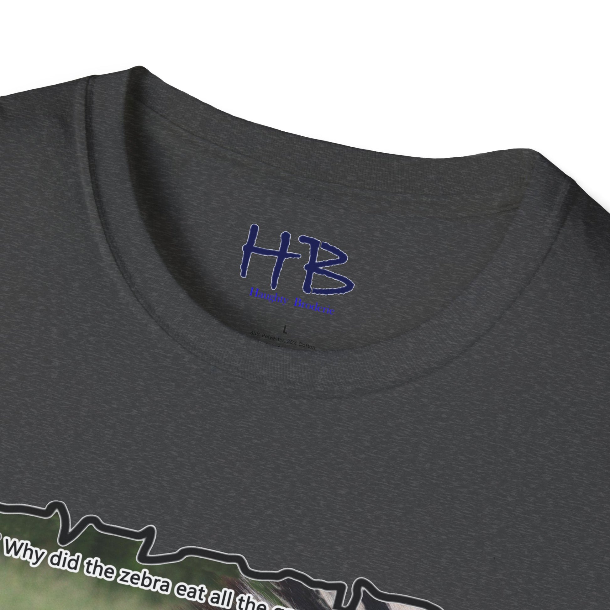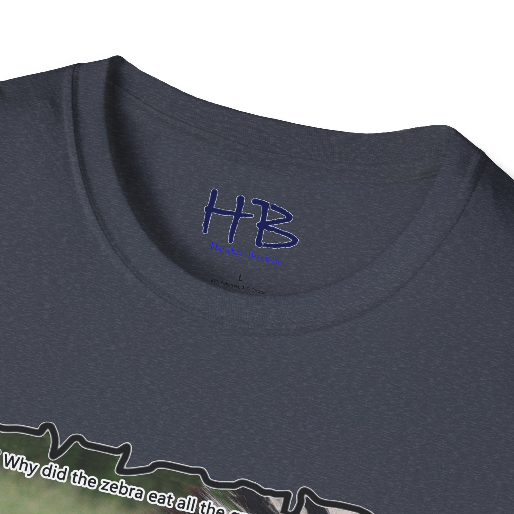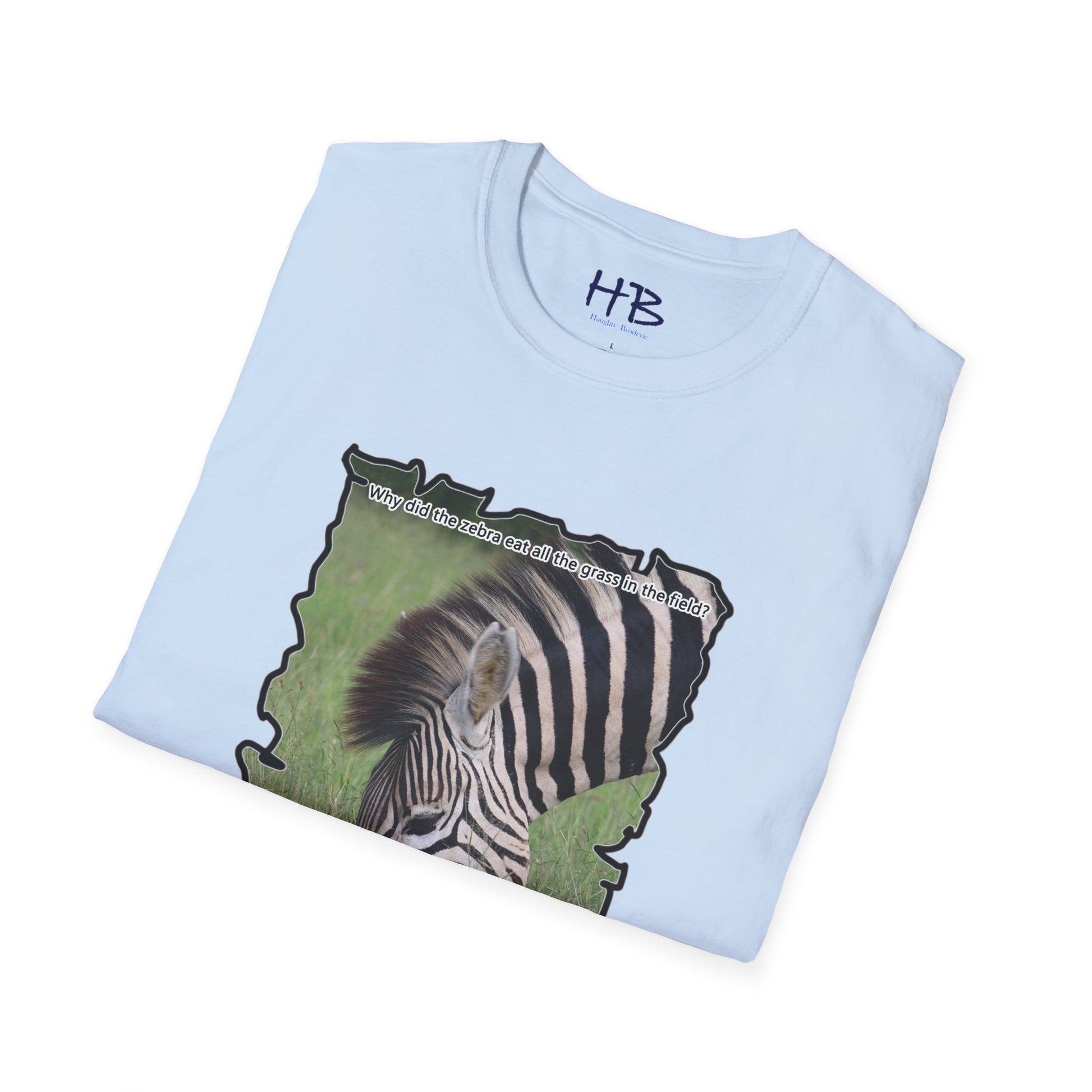 But that's not all - we've added a touch of humor to this tee shirt with the text "Why did the Zebra eat all the grass in the field? - Because he was a strip-aholic". This little joke adds a lighthearted touch to the already eye-catching design, making it the perfect addition to your wardrobe.