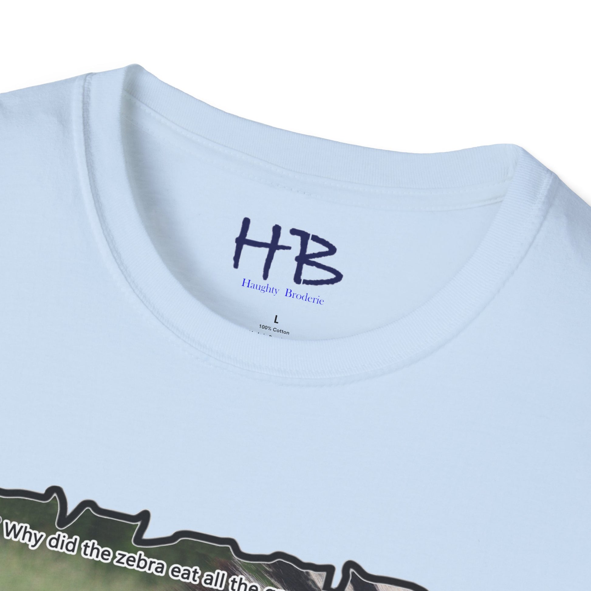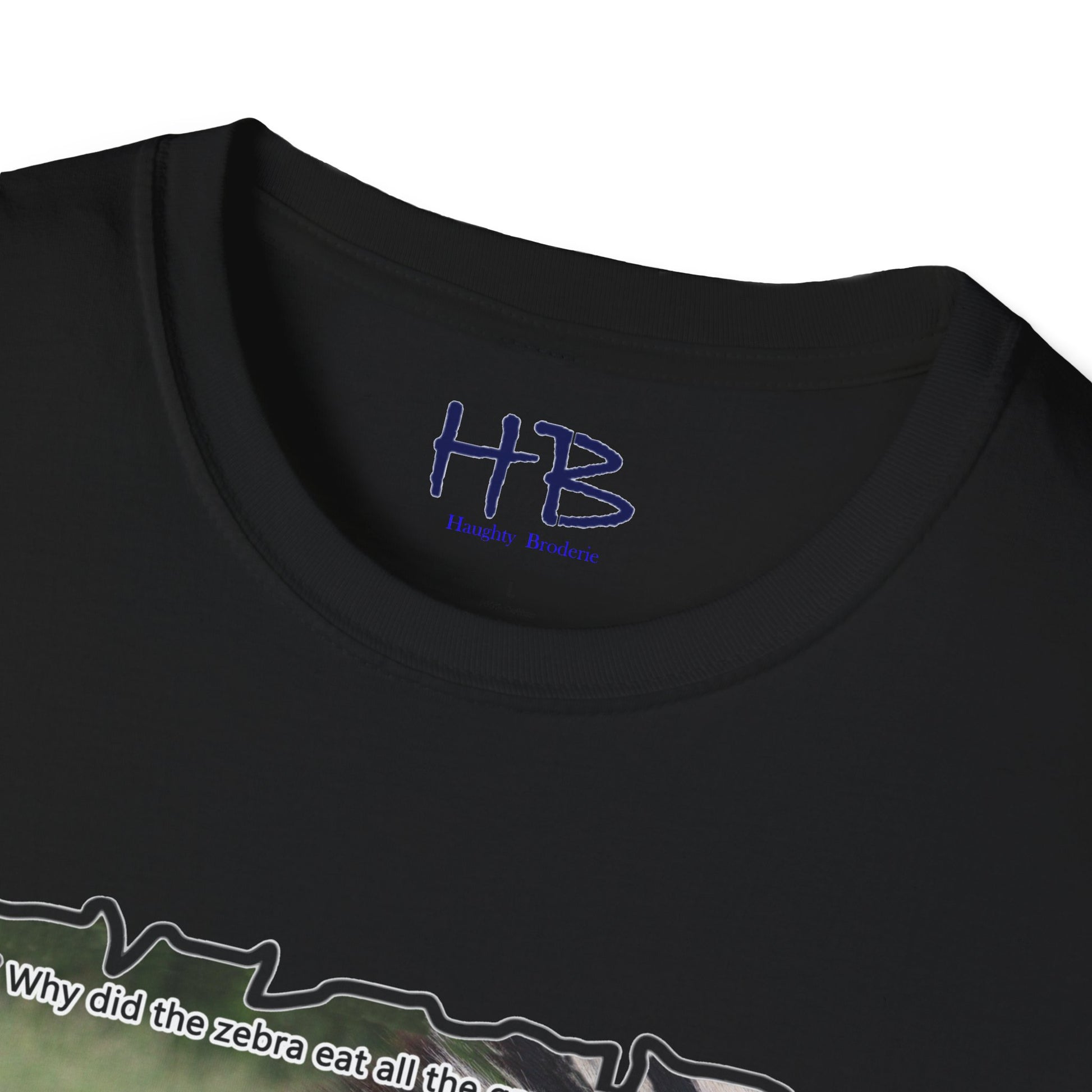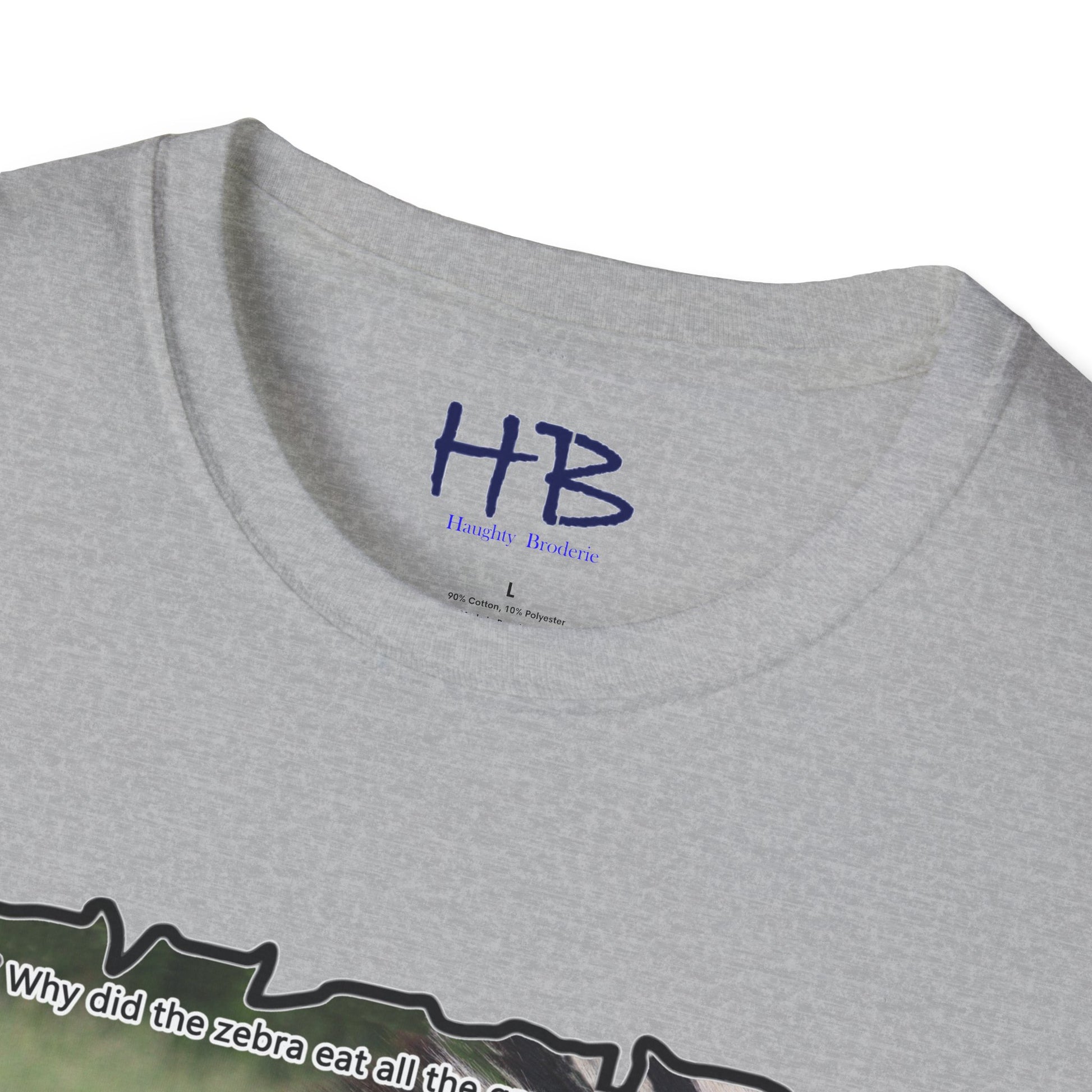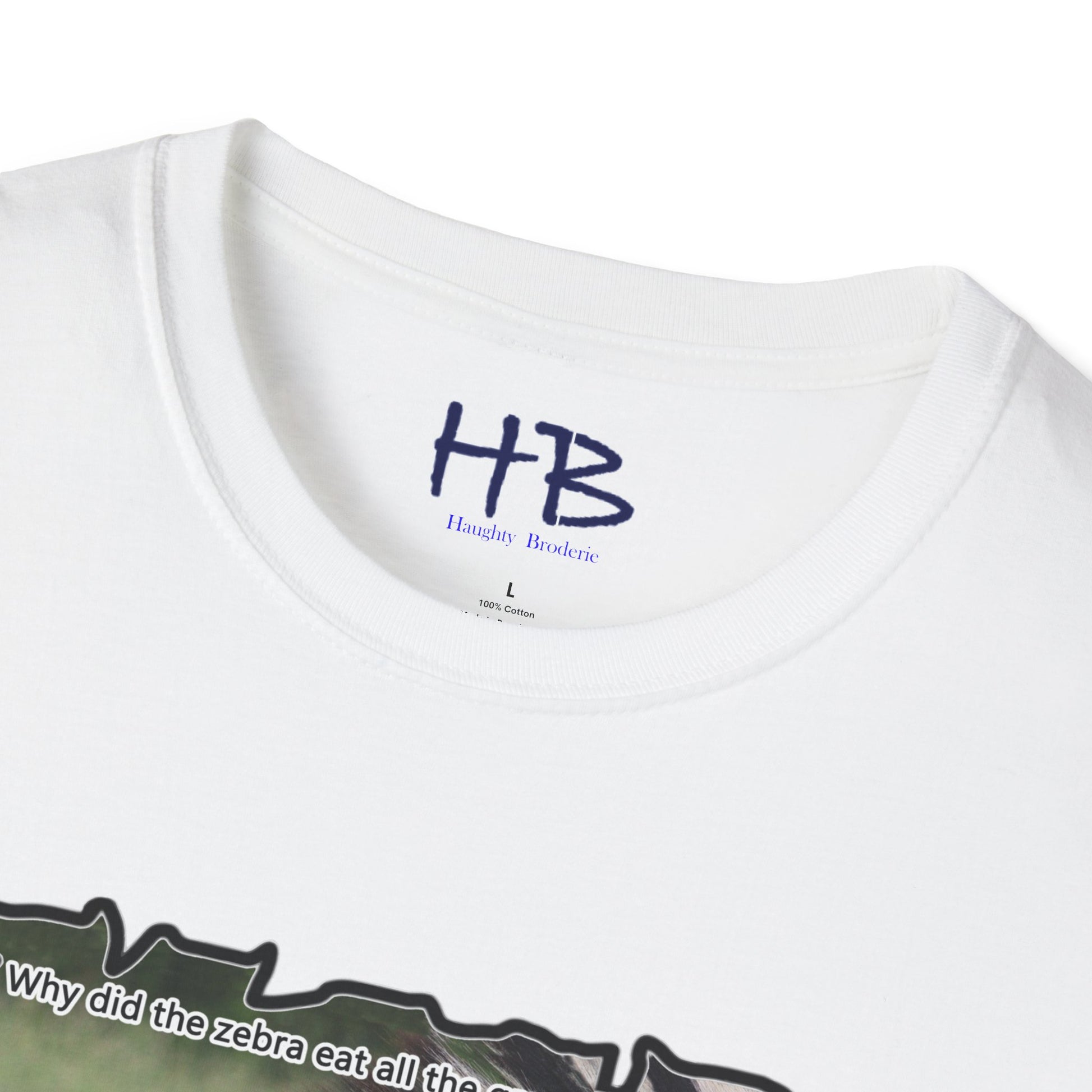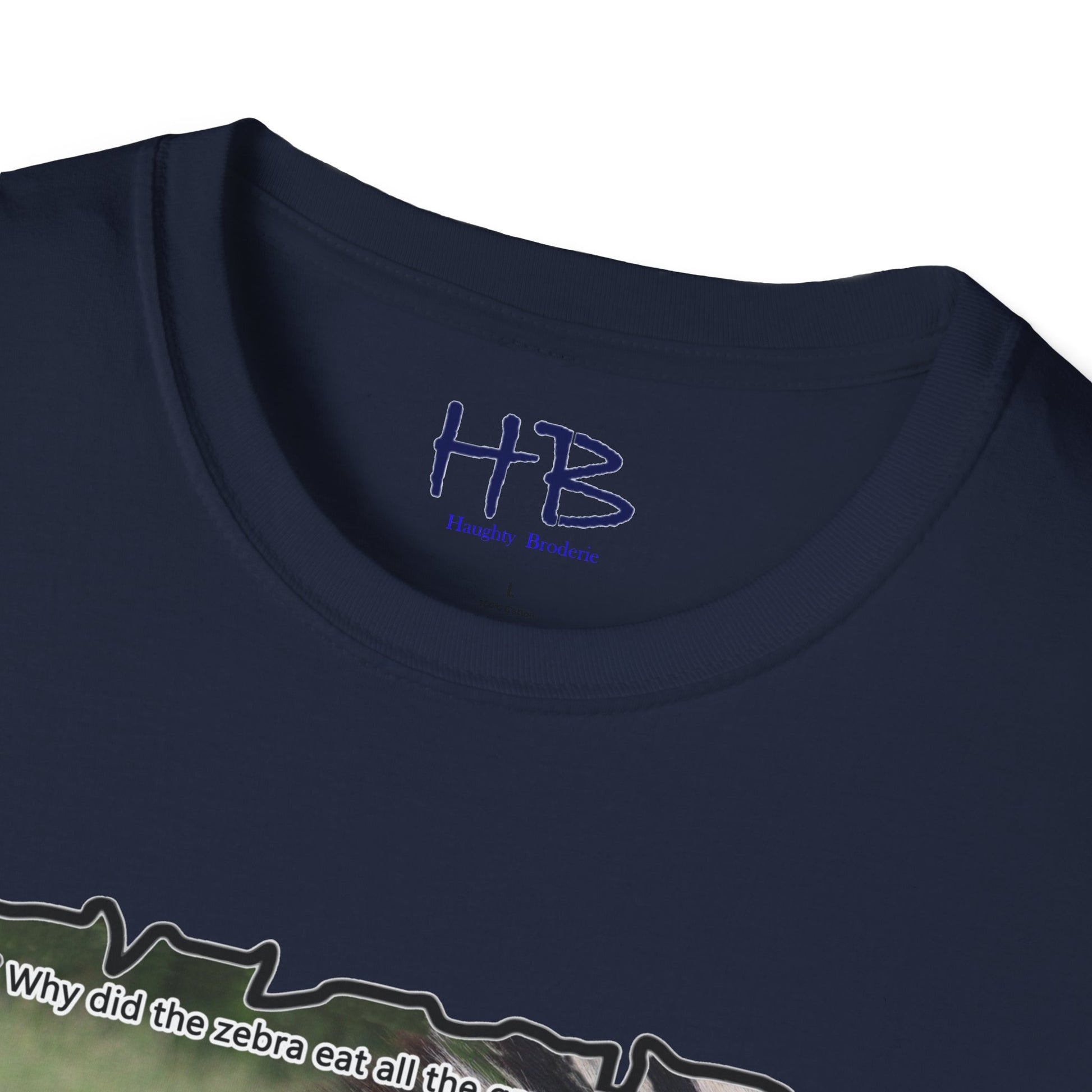 But that's not all - we've added a touch of humor to this tee shirt with the text "Why did the Zebra eat all the grass in the field? - Because he was a strip-aholic". This little joke adds a lighthearted touch to the already eye-catching design, making it the perfect addition to your wardrobe.